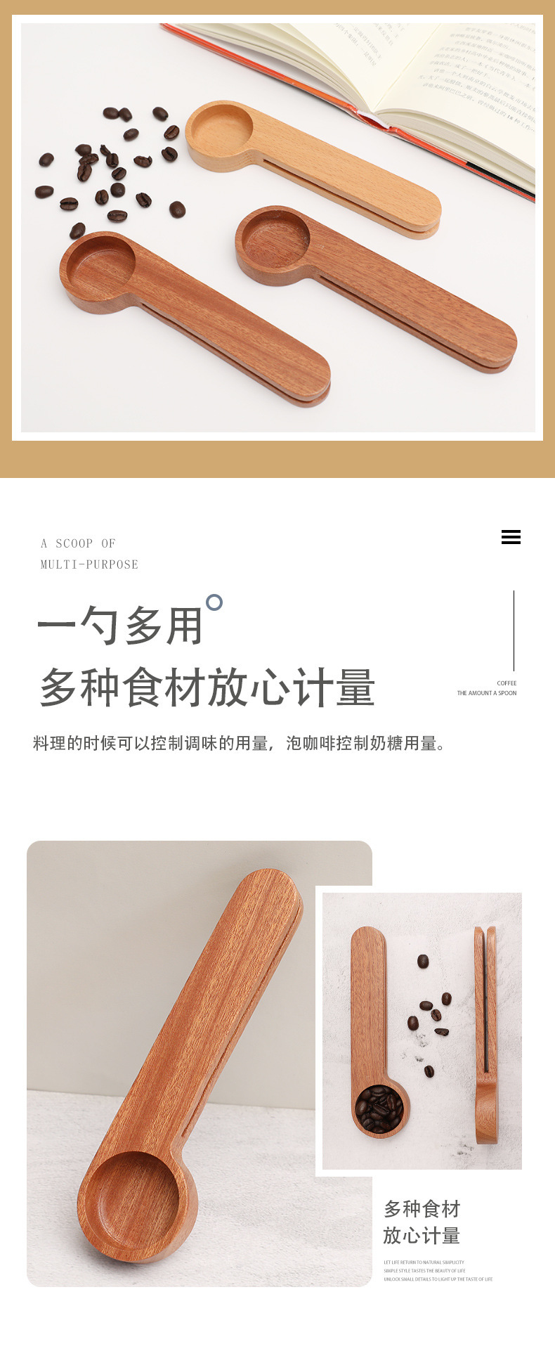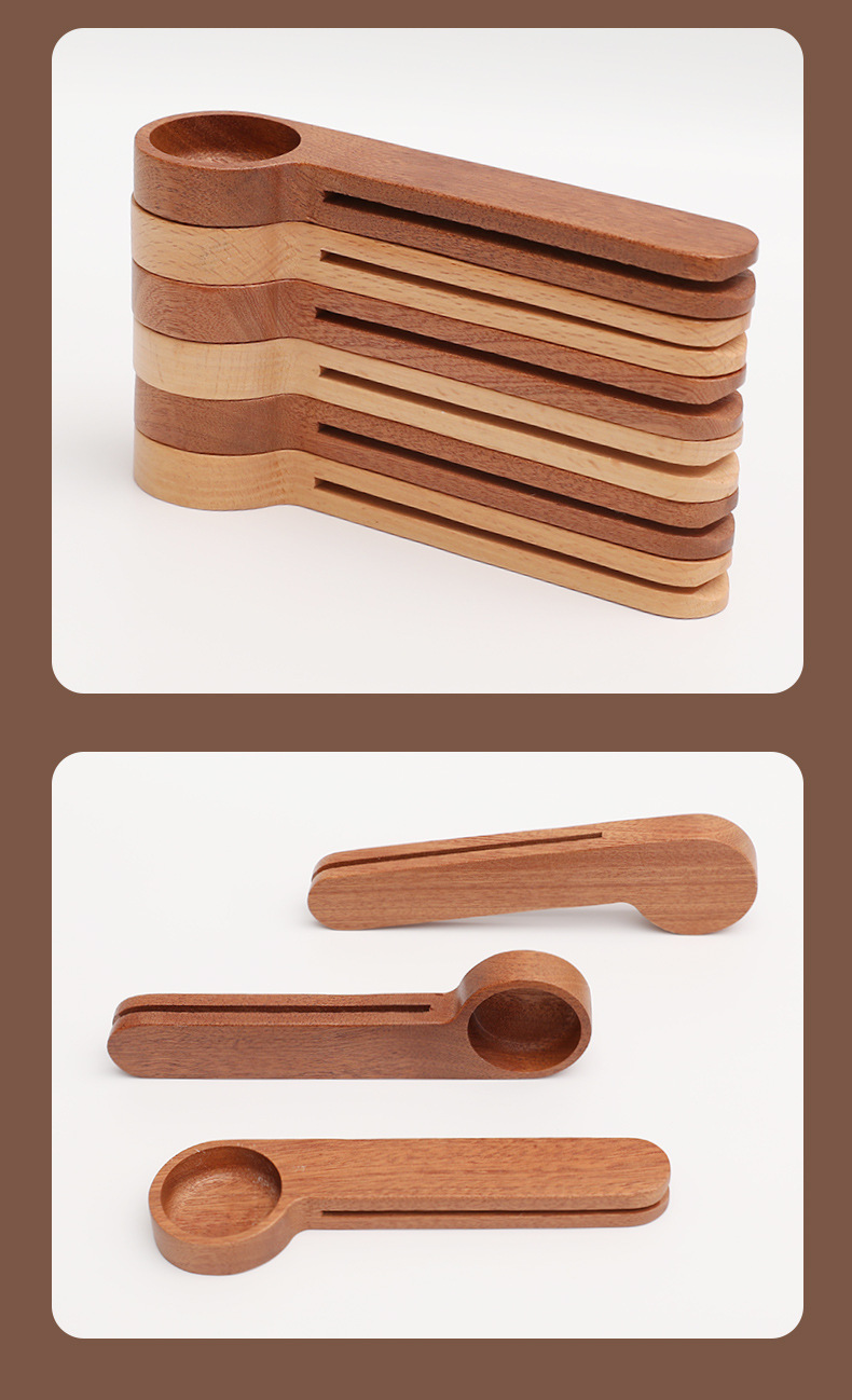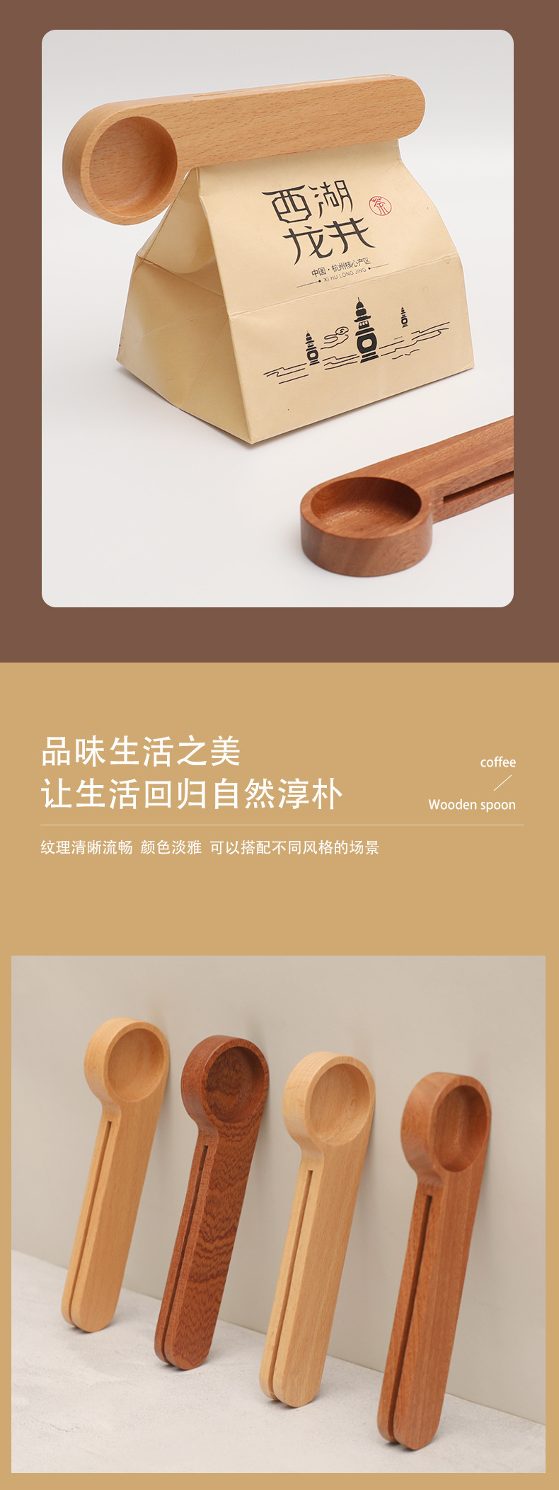 사브리 커피 콩 측정 숟가락 베이킹 측정 숟가락 이중 사용 식품 가방 밀봉 클립 너도밤 작은 나무 숟가락