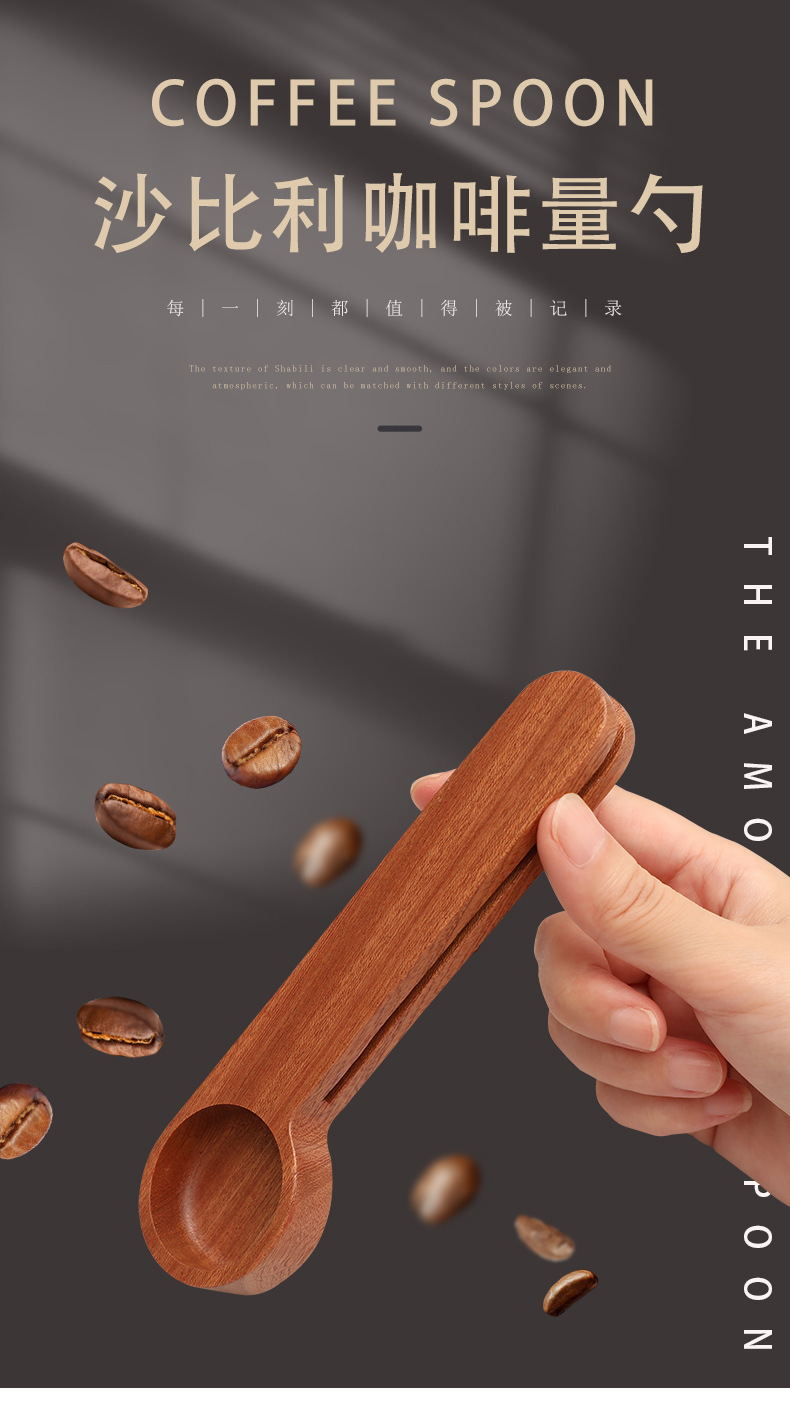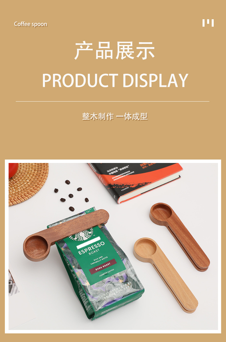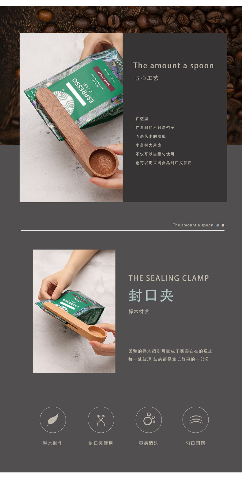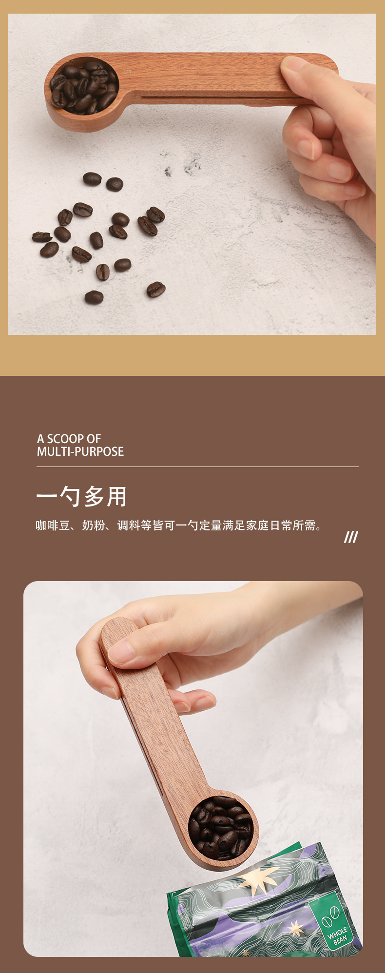 사브리 커피 콩 측정 숟가락 베이킹 측정 숟가락 이중 사용 식품 가방 밀봉 클립 너도밤 작은 나무 숟가락