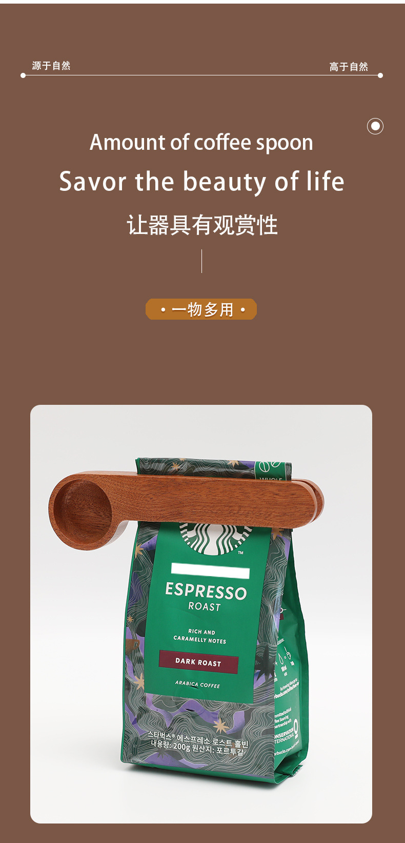 사브리 커피 콩 측정 숟가락 베이킹 측정 숟가락 이중 사용 식품 가방 밀봉 클립 너도밤 작은 나무 숟가락스토어 가기