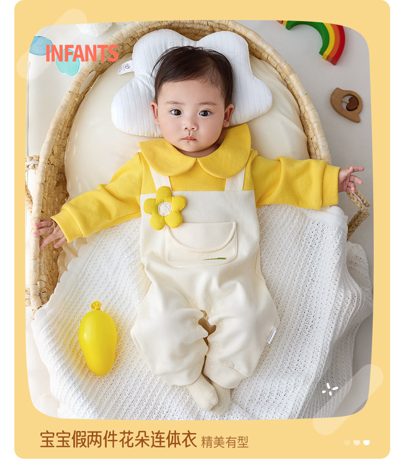 아기 면화 점프 수트 2024 봄 새로운 여성 아기 가짜 투피스 카이 신생아 봄과 가을 긴 소매 등반 3276스토어 가기