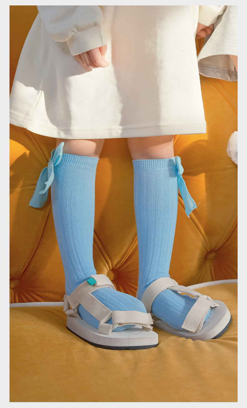 어린이 양말 봄과 가을 새 소녀의 귀여운 활 중간 종아리 길이 양말 아기 캔디 컬러면 스타킹