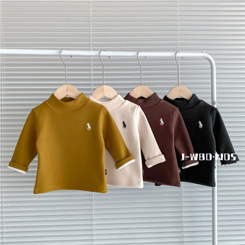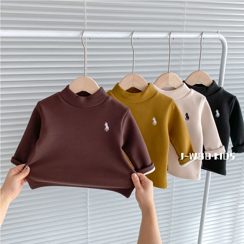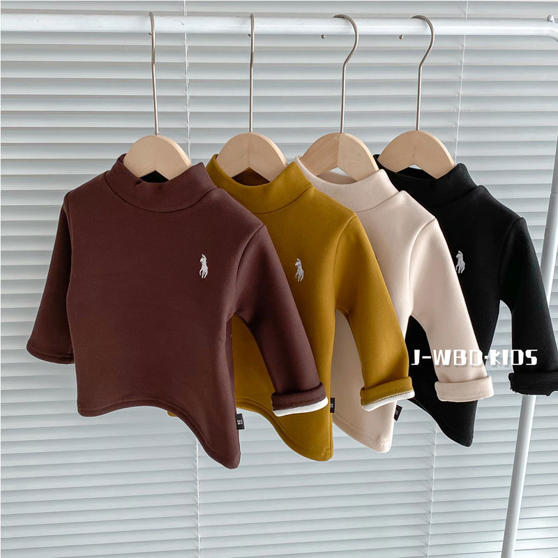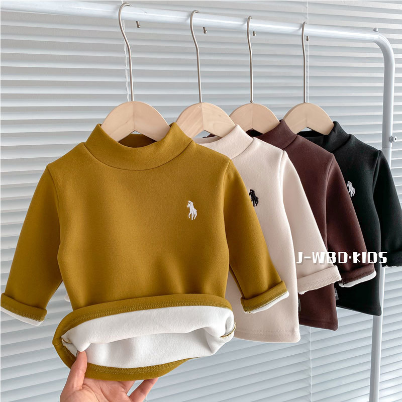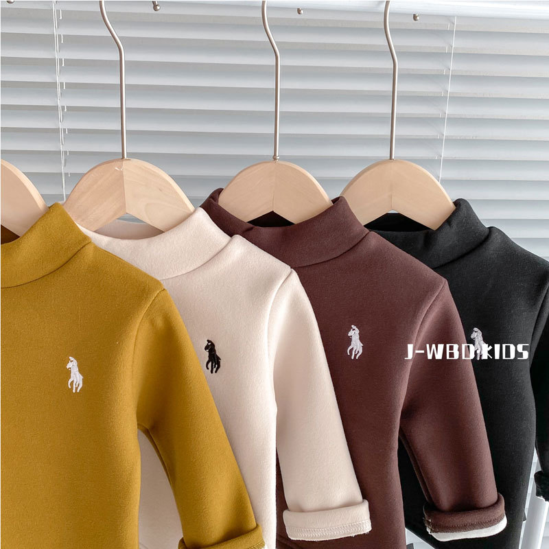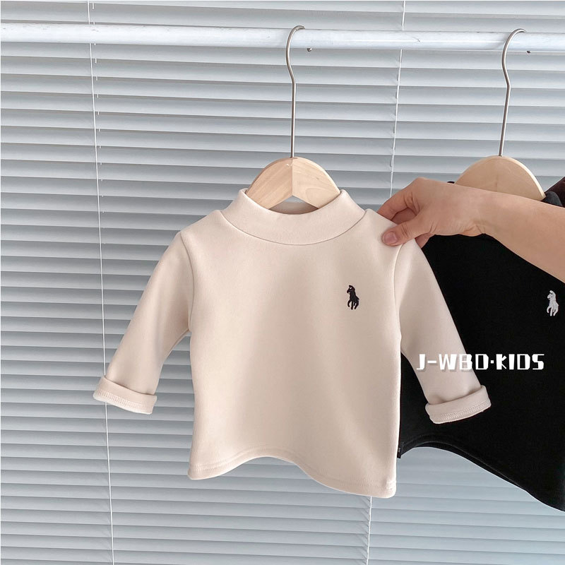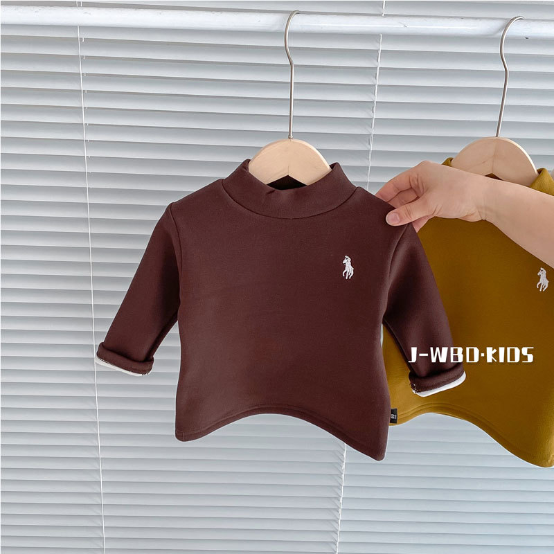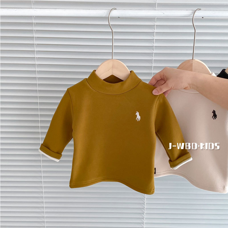 어린이 바닥 셔츠 원피스 벨벳 겨울 한국 스타일 소녀 반 터틀넥 탑 티셔츠 남학생 두꺼운 긴 소매 의류 패션스토어 가기