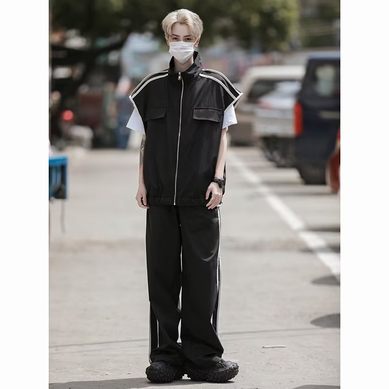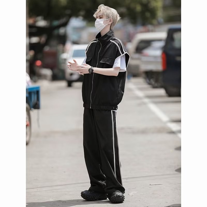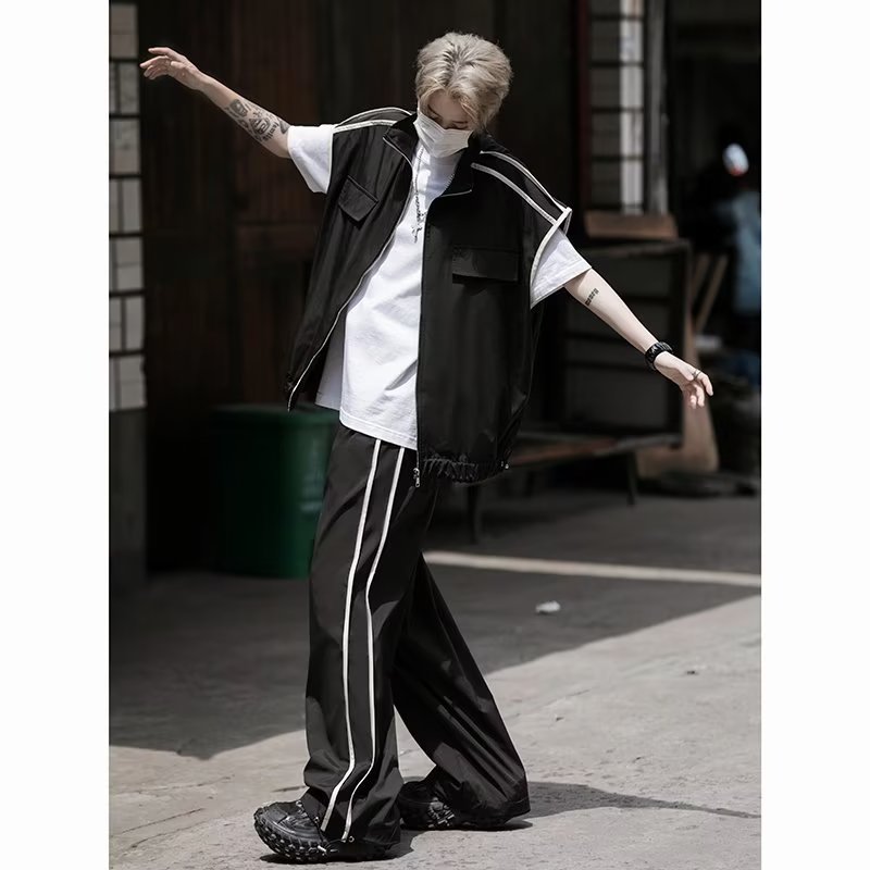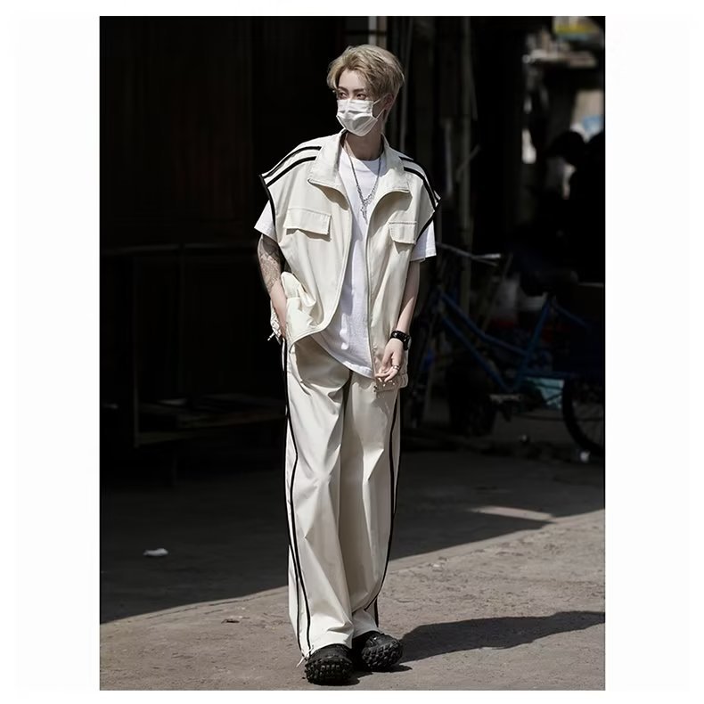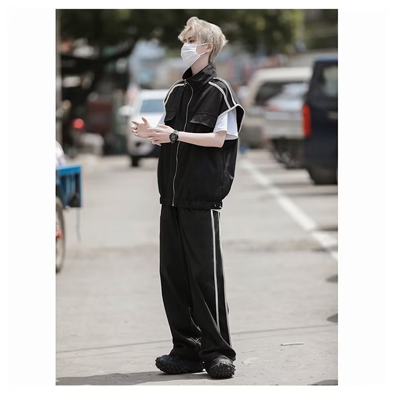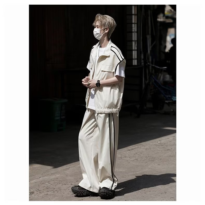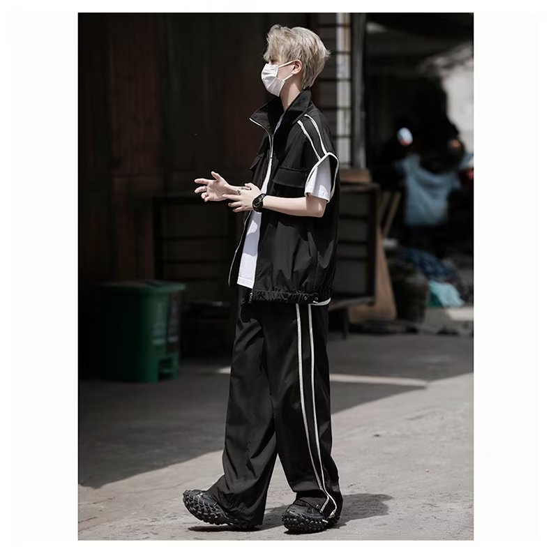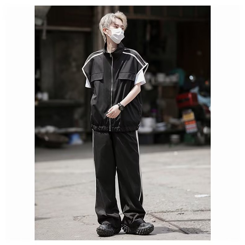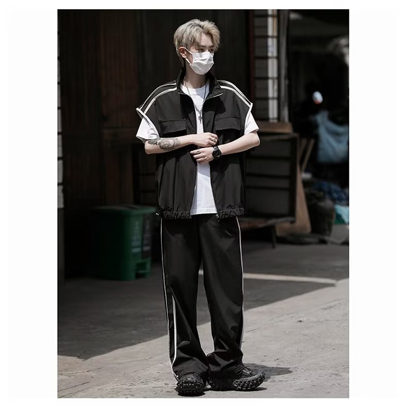 세트 남자 여름 얇은 통기성 민소매 재킷 조끼 캐주얼 바지 캐주얼 스포츠 루안 잘 생긴 투피스 세트스토어 가기