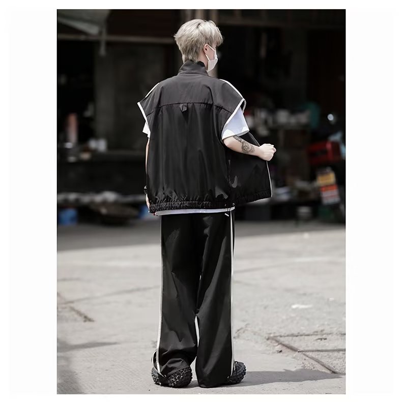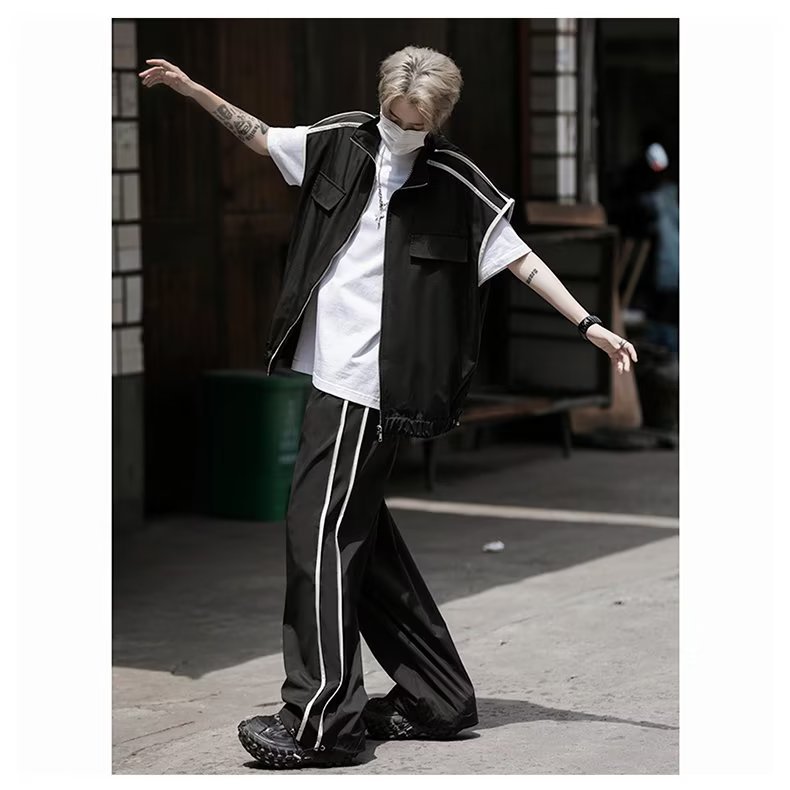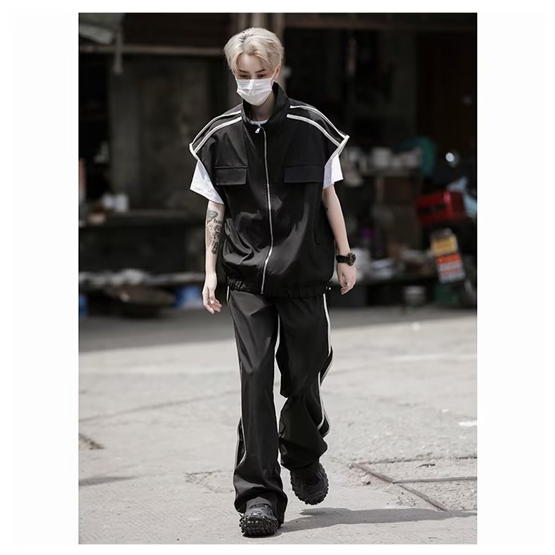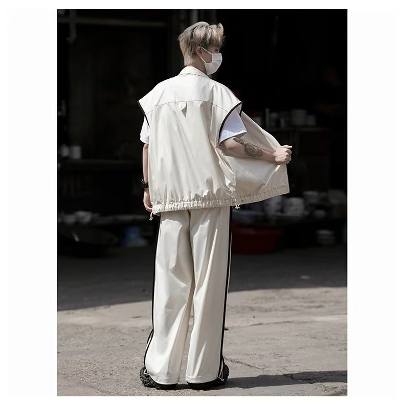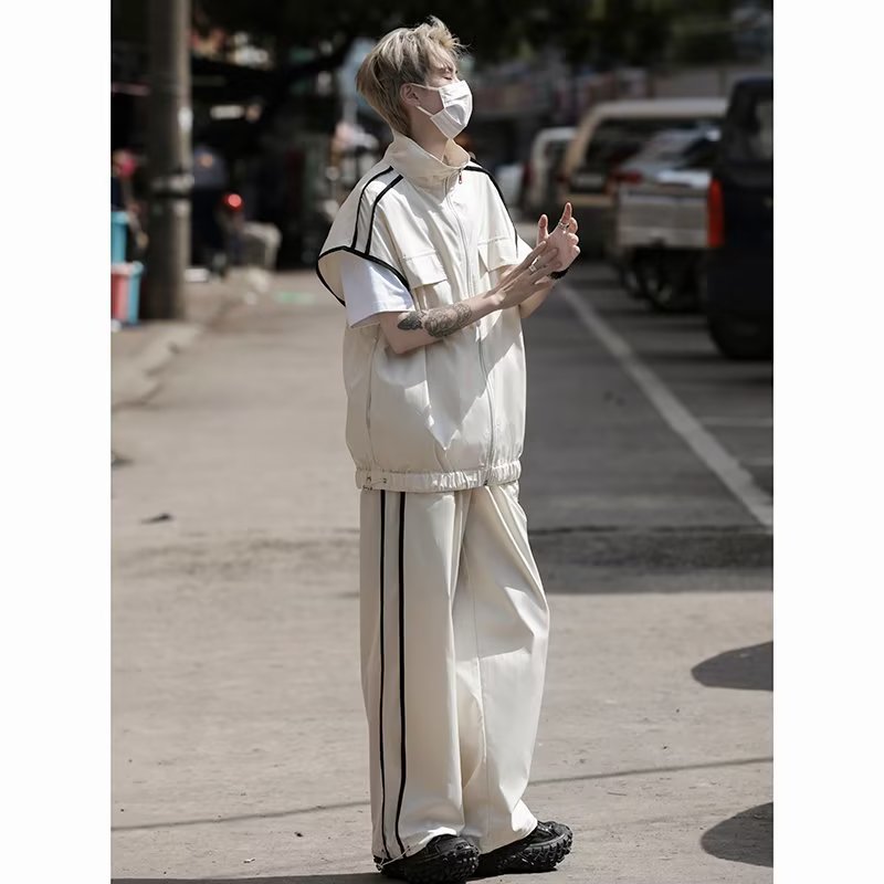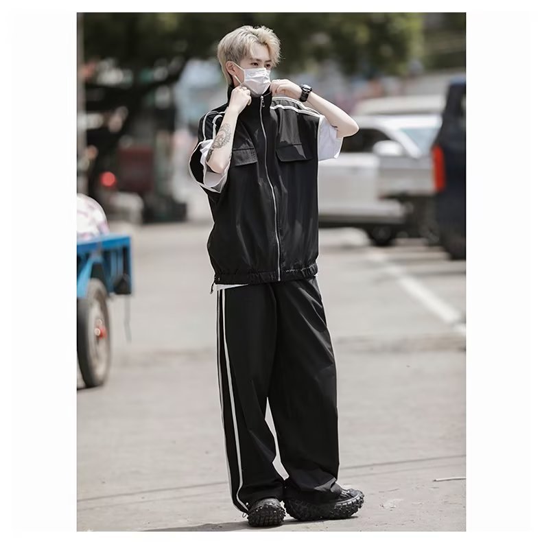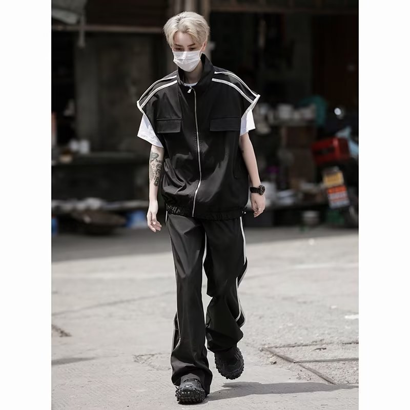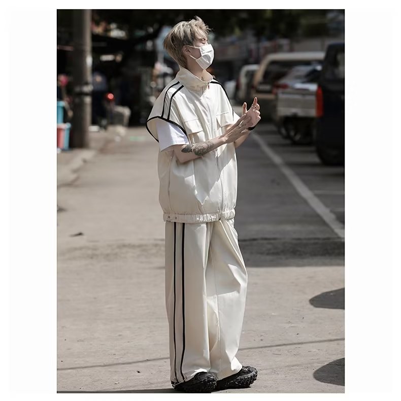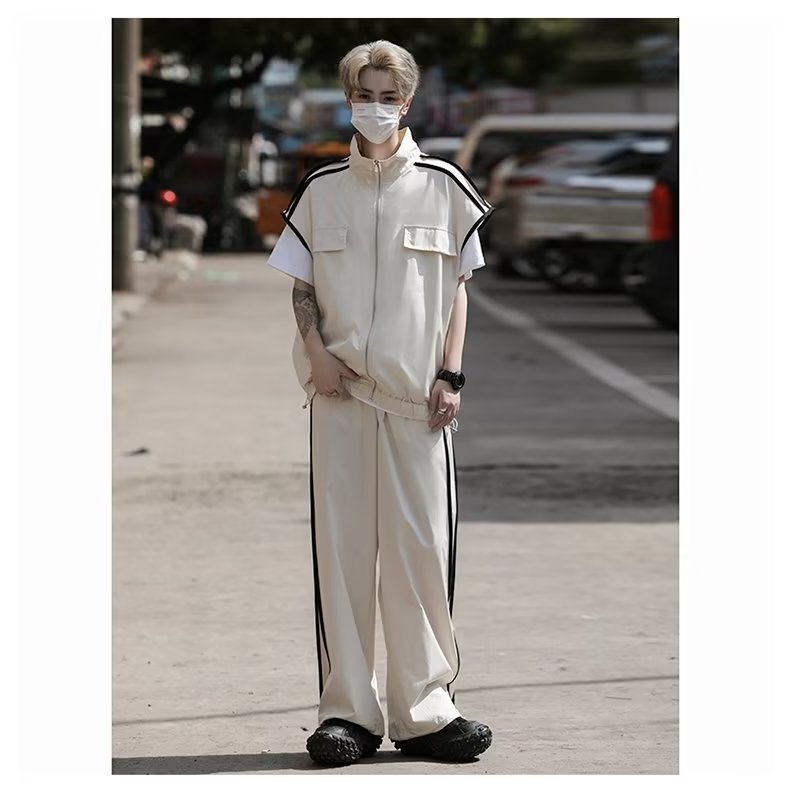 세트 남자 여름 얇은 통기성 민소매 재킷 조끼 캐주얼 바지 캐주얼 스포츠 루안 잘 생긴 투피스 세트스토어 가기
