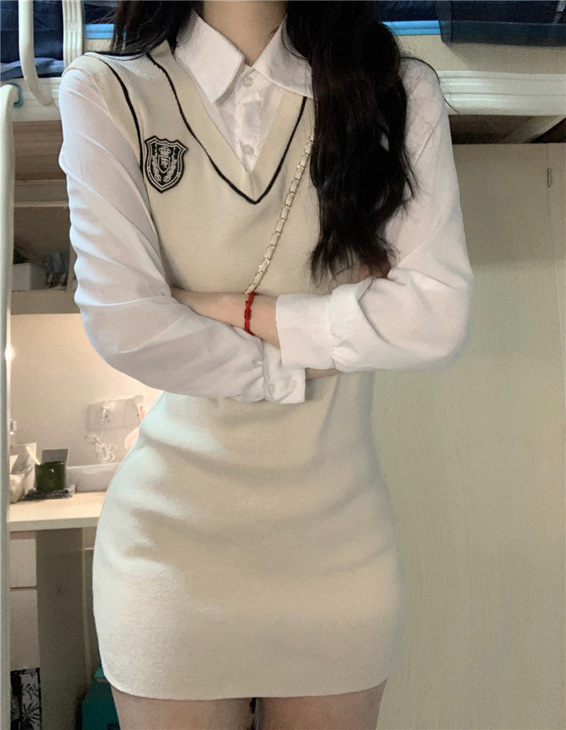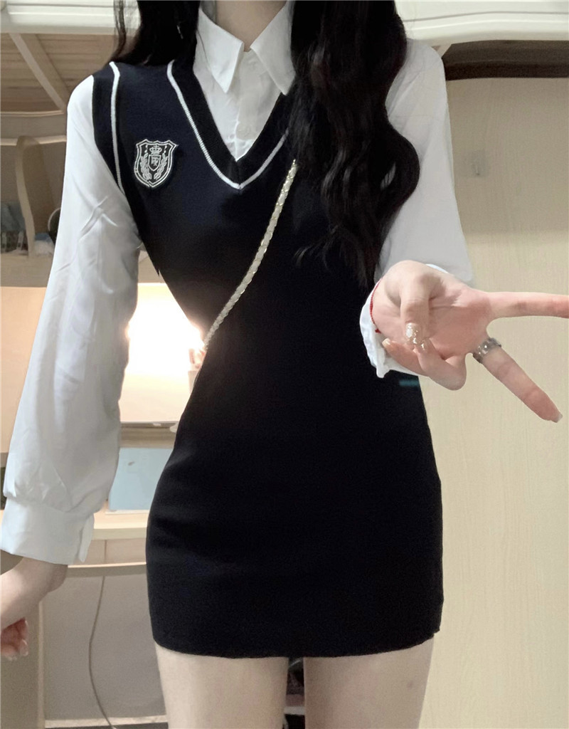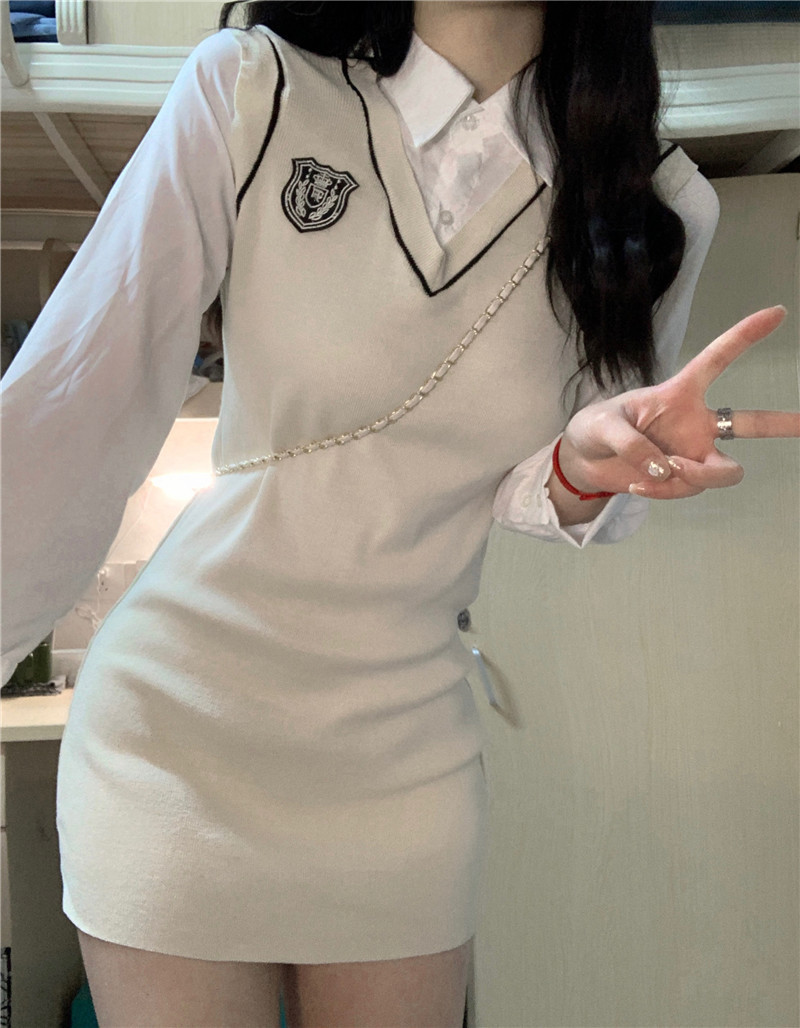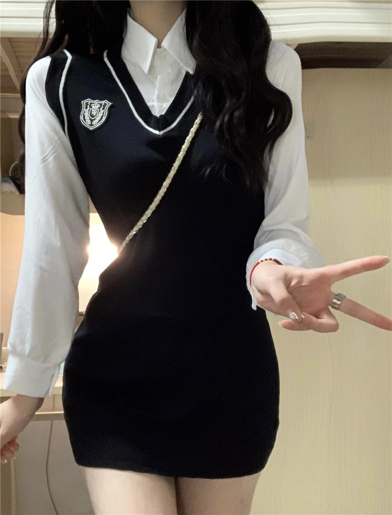 2025 봄 가을 신상품 컬리지 스타일 JK 원피스 여성 슬림핏 퓨어 섹시 이너웨어 베이스 스커트 아메리칸 스타일 힙허깅 스커트