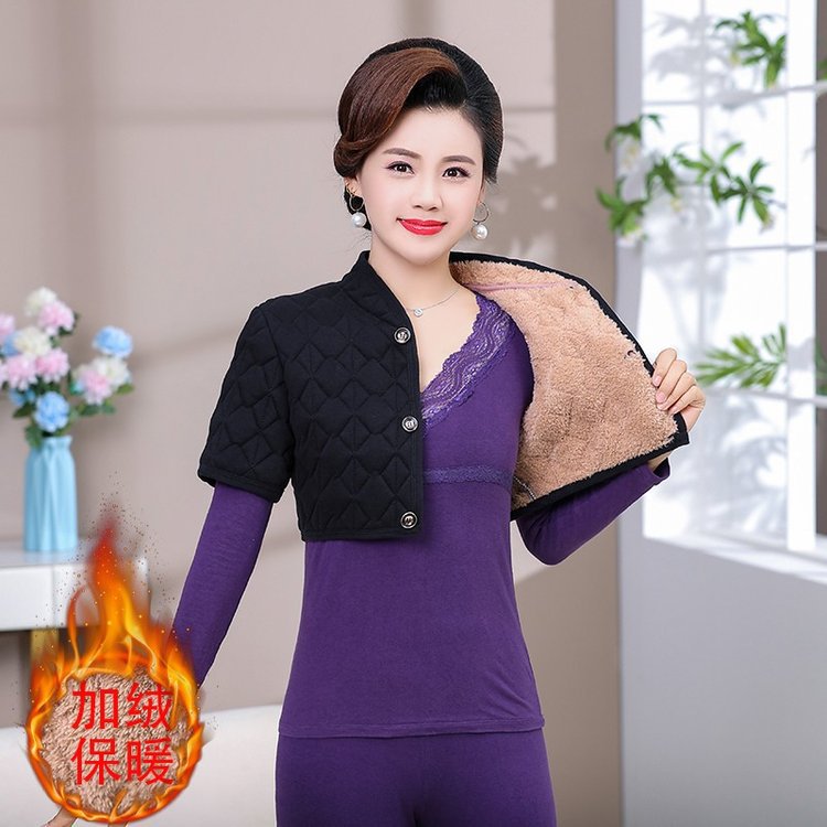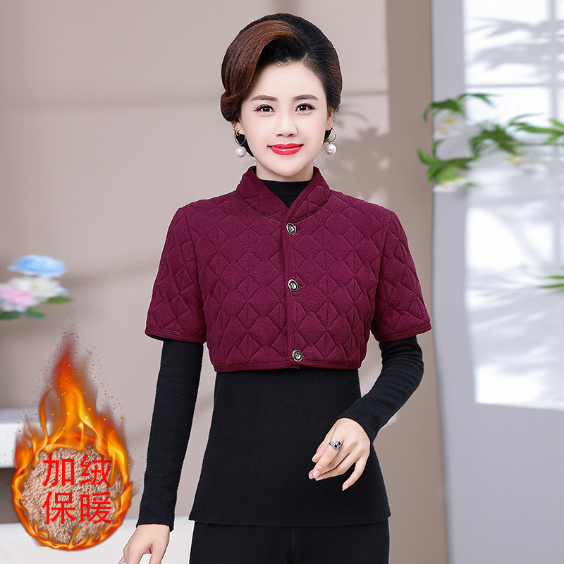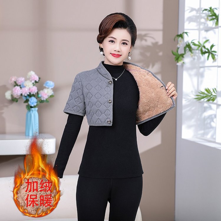 겨울 기모 두껍게 한 면화 조끼 여성의 느슨한 따뜻한 어깨 패드 자궁 경부 지원 양복 조끼 중년 및 노인을위한 감기 방지 조끼