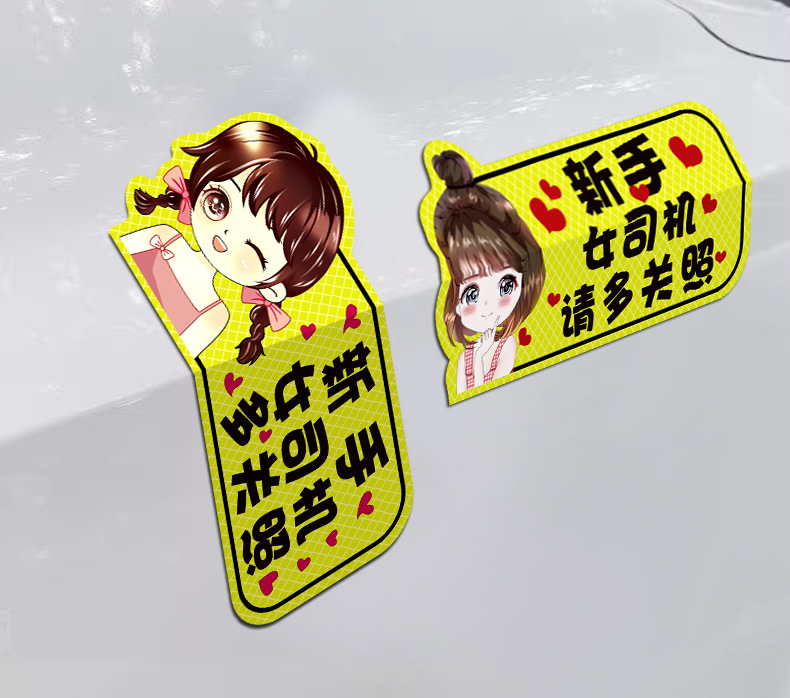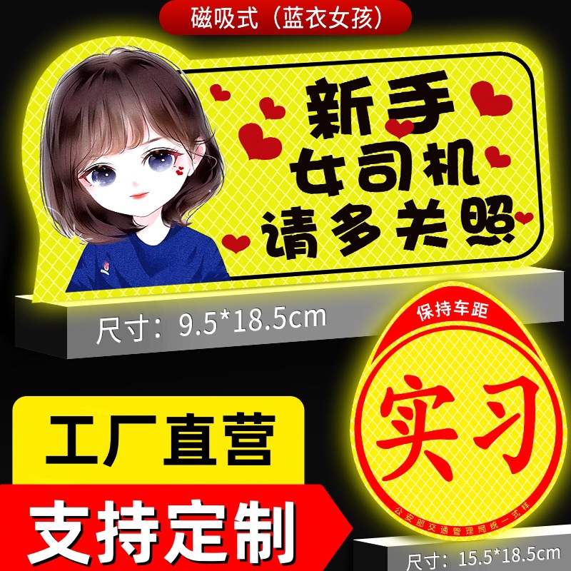 인턴쉽 자동차 스티커 도로에 초보 여성 드라이버 마그네틱 흡입 자동차 인턴쉽 스티커 반사 만화 자기 스티커 로고스토어 가기