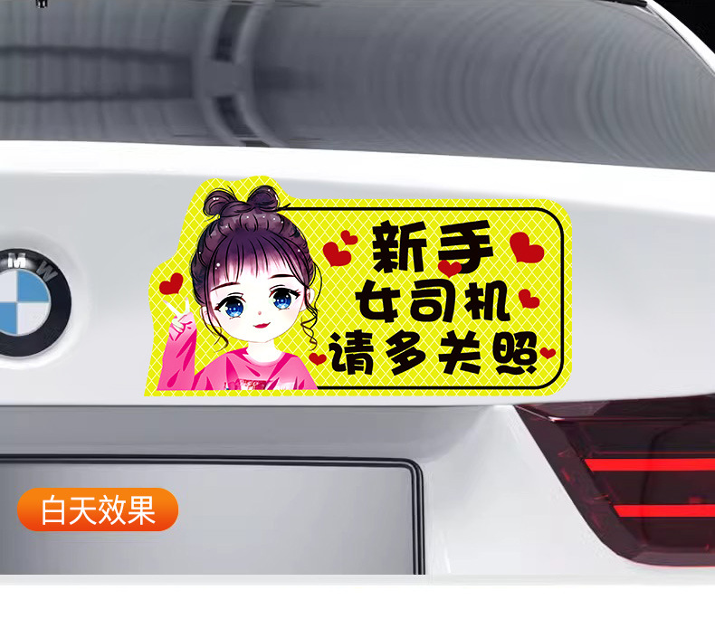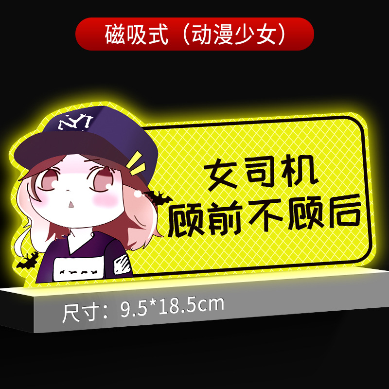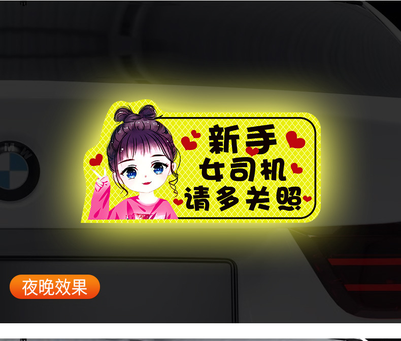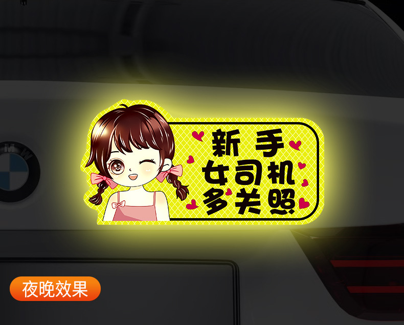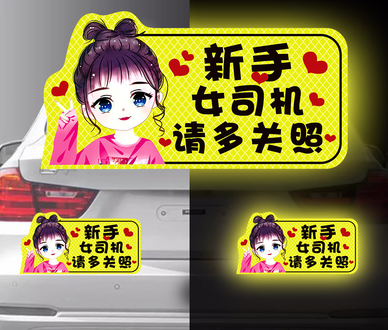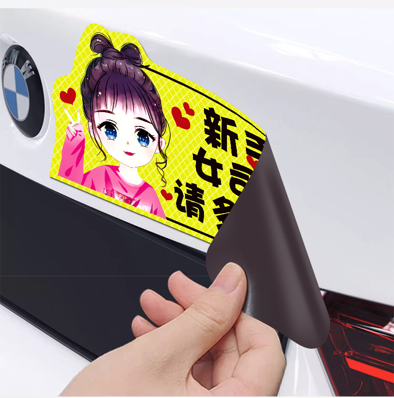 인턴쉽 자동차 스티커 도로에 초보 여성 드라이버 마그네틱 흡입 자동차 인턴쉽 스티커 반사 만화 자기 스티커 로고