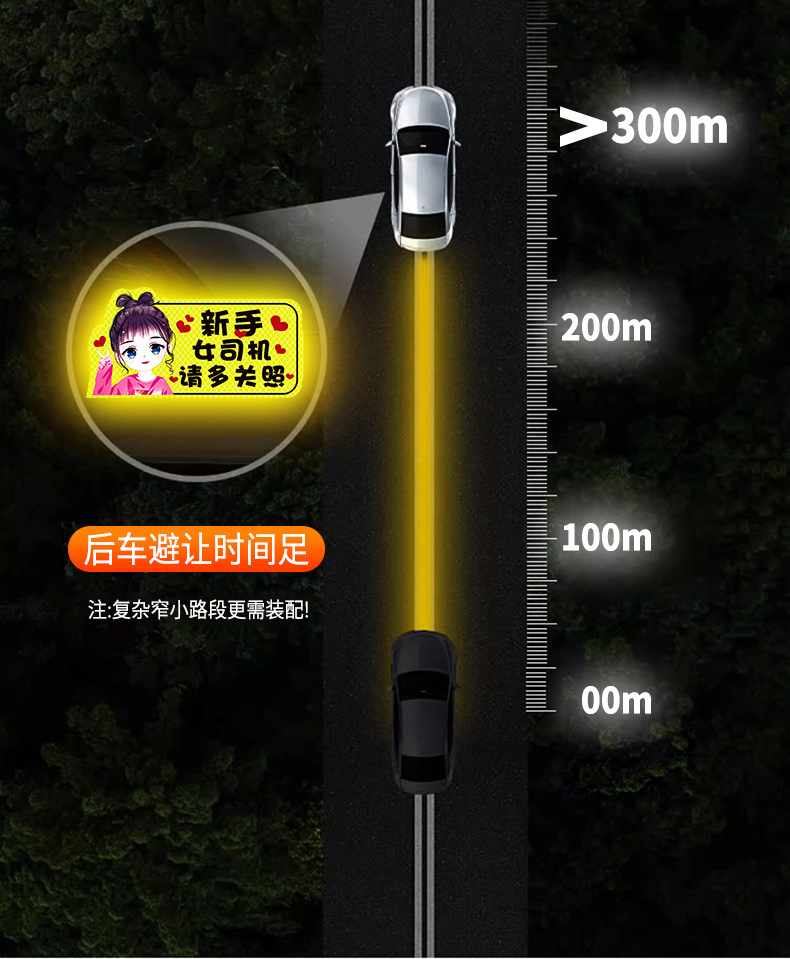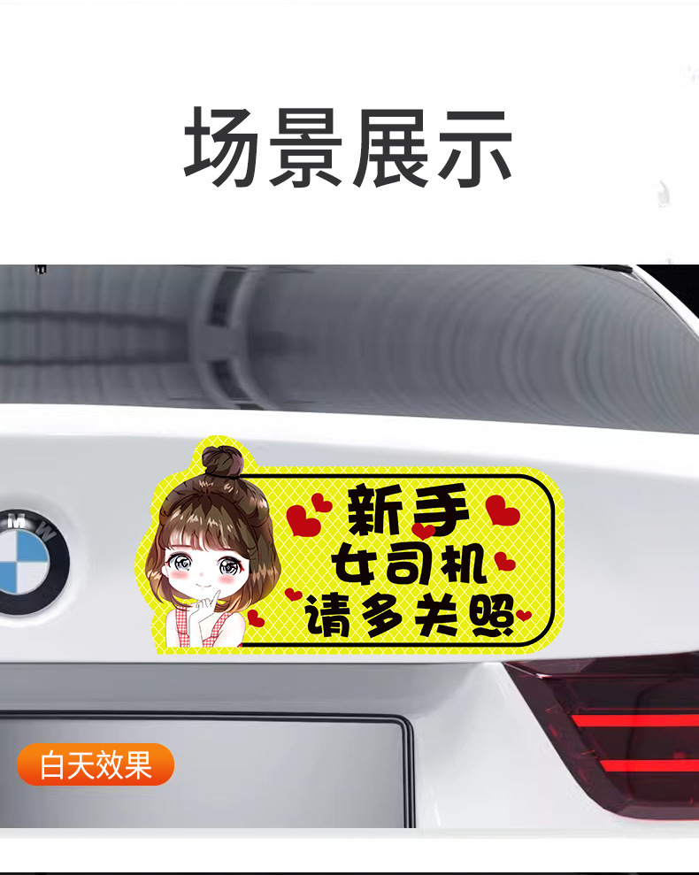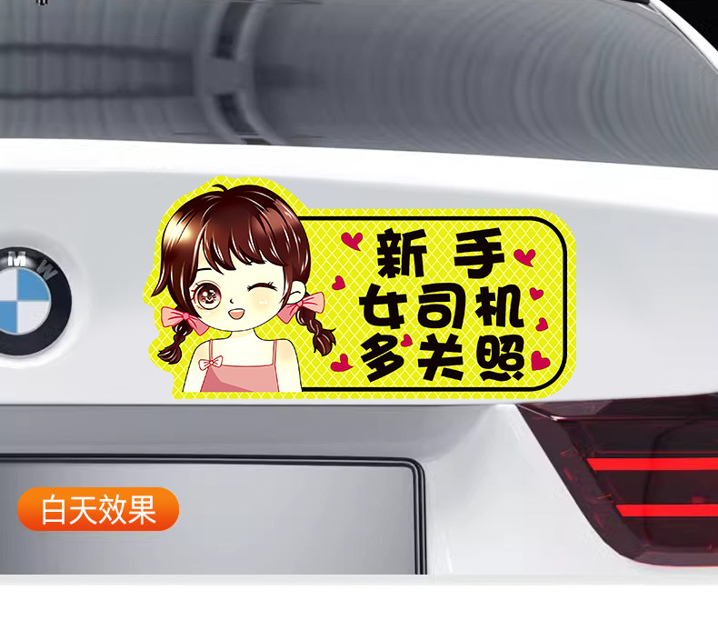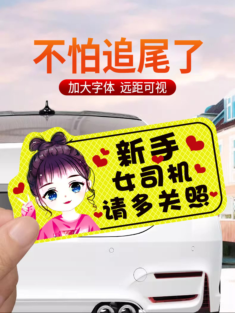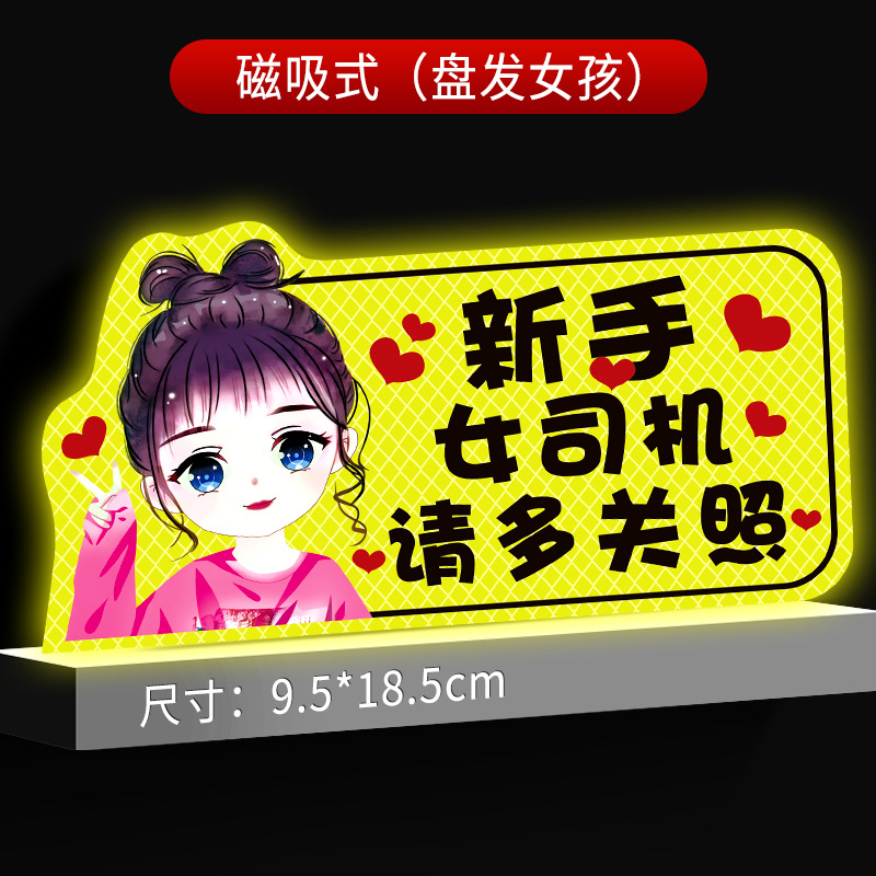 인턴쉽 자동차 스티커 도로에 초보 여성 드라이버 마그네틱 흡입 자동차 인턴쉽 스티커 반사 만화 자기 스티커 로고