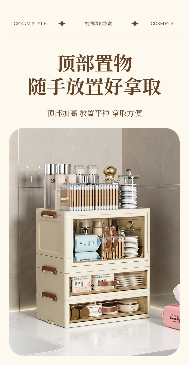 데스크탑 더블 도어 화장품 저장 상자 서랍 형 쌓을 수있는 다층 저장 캐비닛 두꺼운 대용량 저장 상자