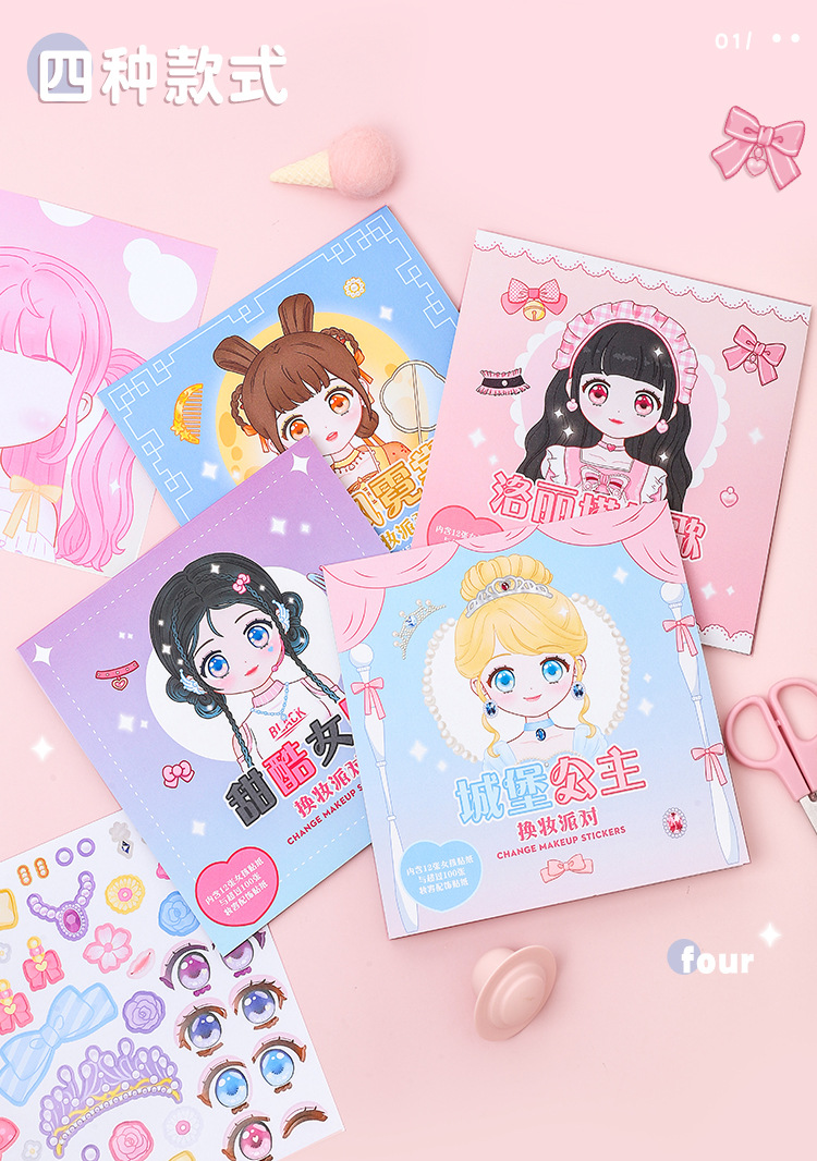 활발한 공주 변경 스티커 어린 소녀 아기 어린이 스티커 놀이 집 만화 스티커
