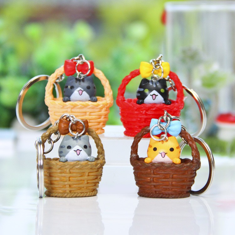활 바구니 고양이 DIY 만화 금속 키 체인 액세서리 가방 체인 펜던트 키 링 선물스토어 가기