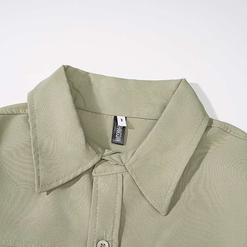 港风复古军绿色工装衬衫男士长袖春秋季潮牌宽松百搭高档衬衣外套