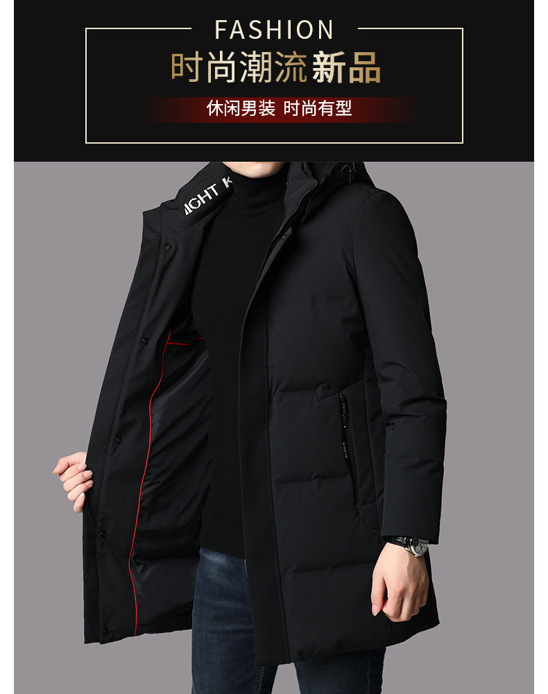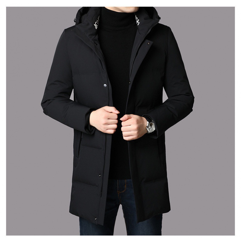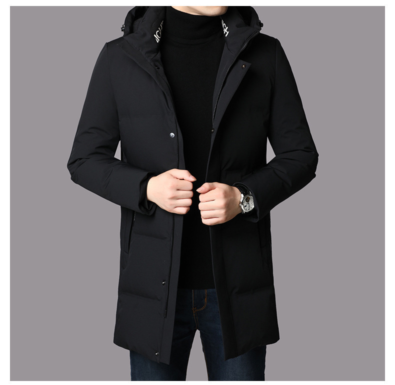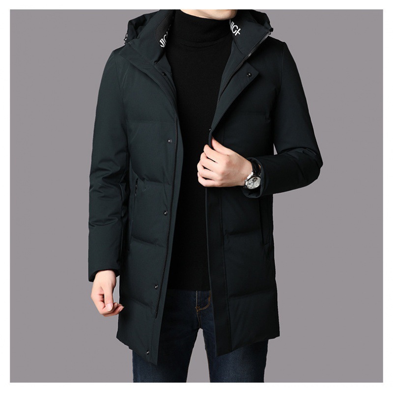 중간 길이 다운 재킷 남자 2023 가을과 겨울 새로운 한국 스타일 유행 캐주얼 젊은 남성 흰 오리 다운 따뜻한 재킷스토어 가기