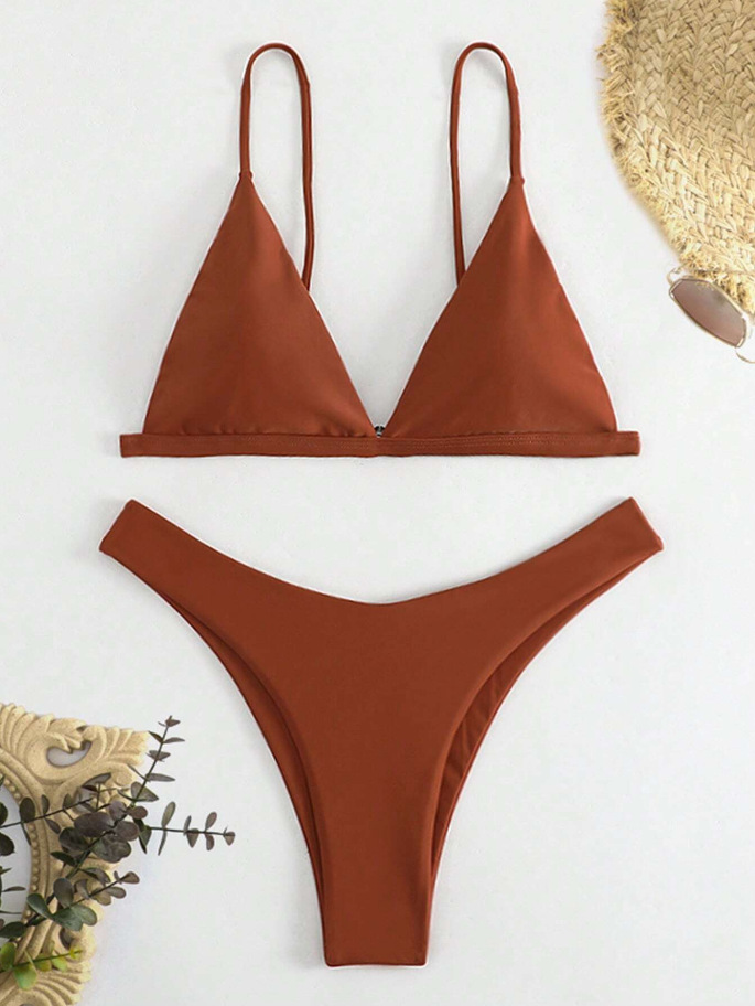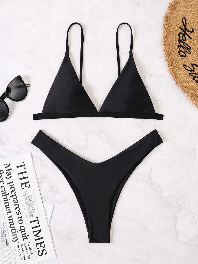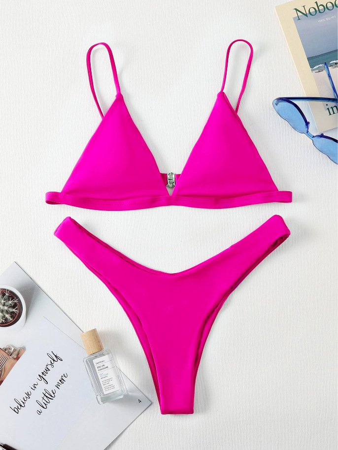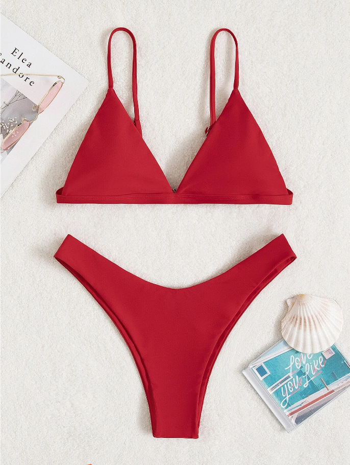2024 유럽과 미국의 단색 분할 3 점 비키니 섹시한 국경 간 아마존 해변 휴가 비키니 여성