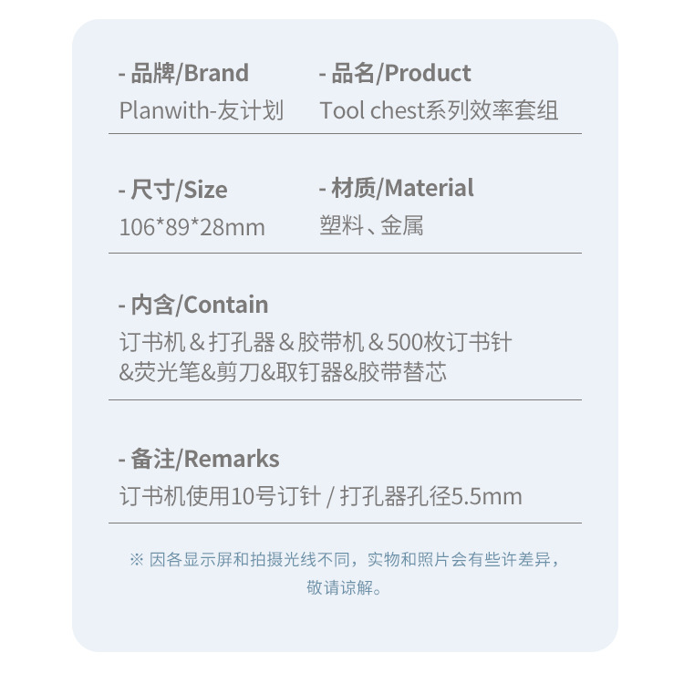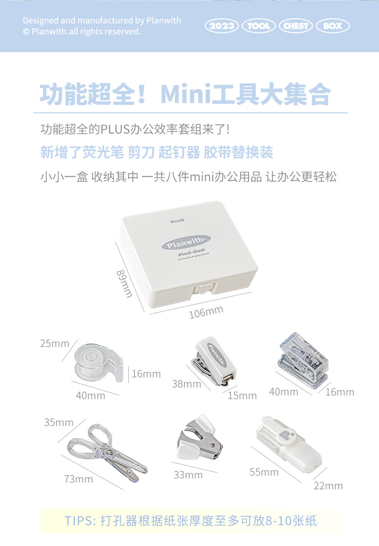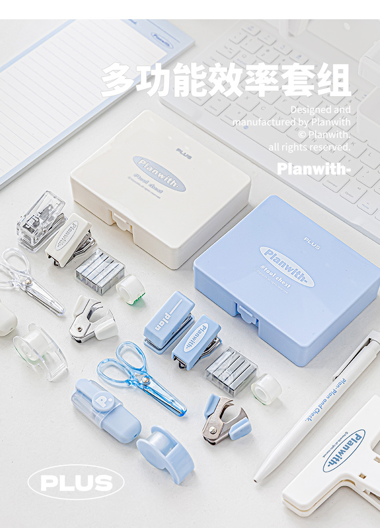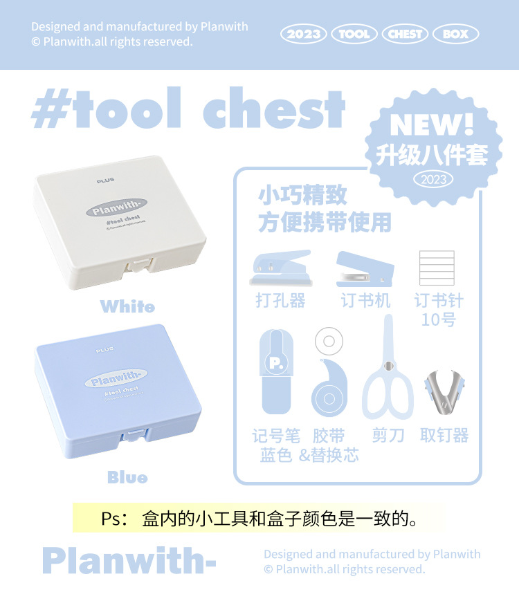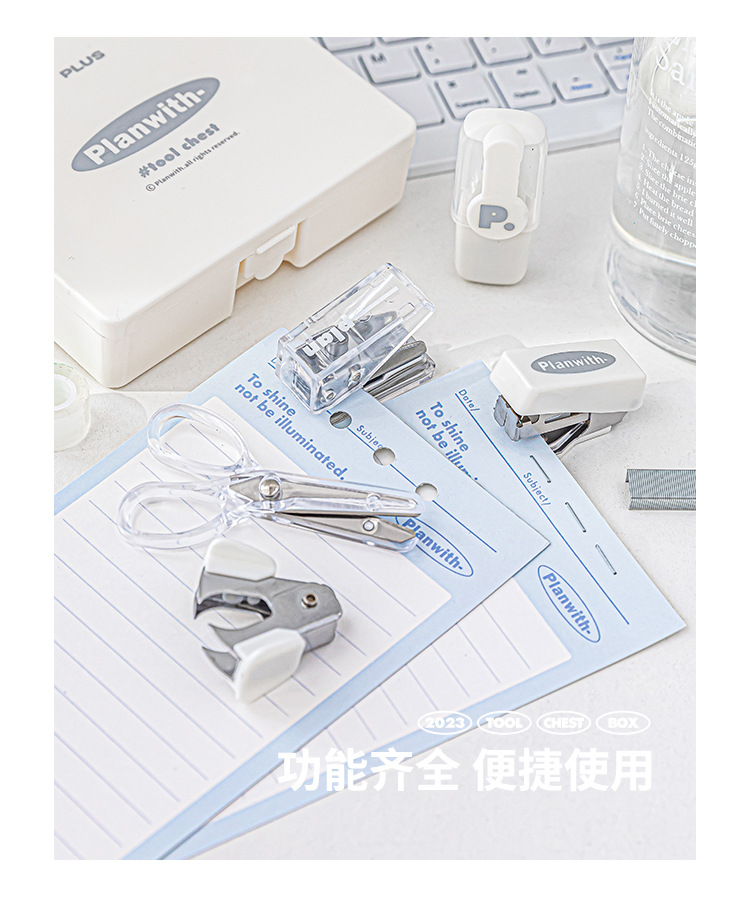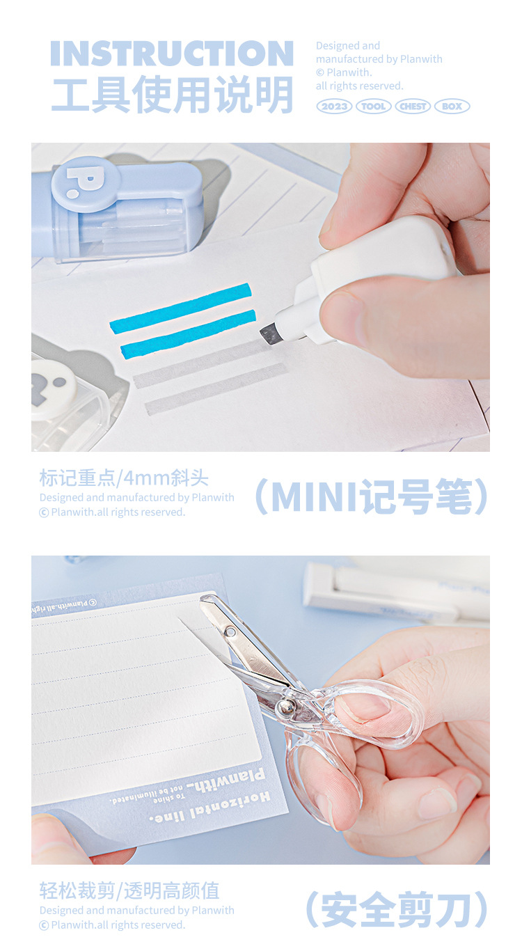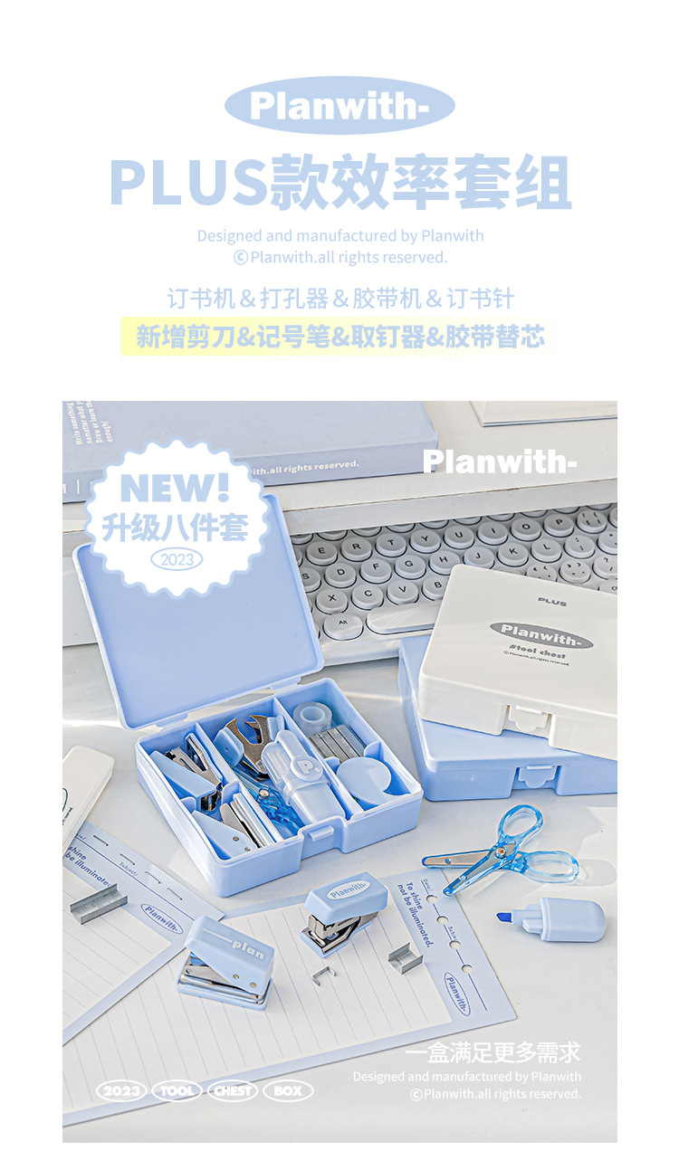 Planwith 업그레이드 도구 효율성 세트 세트 가위 마크 펜 구멍 펀치 네일 패커 휴대용 도구 상자