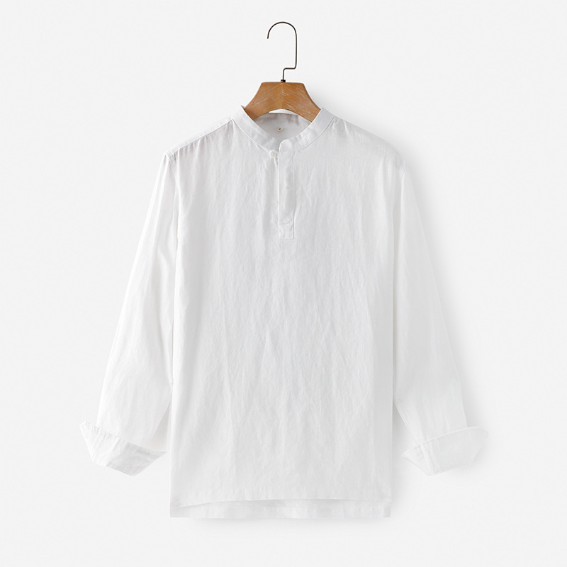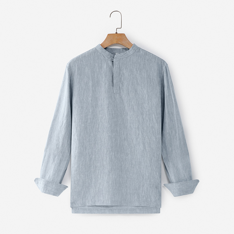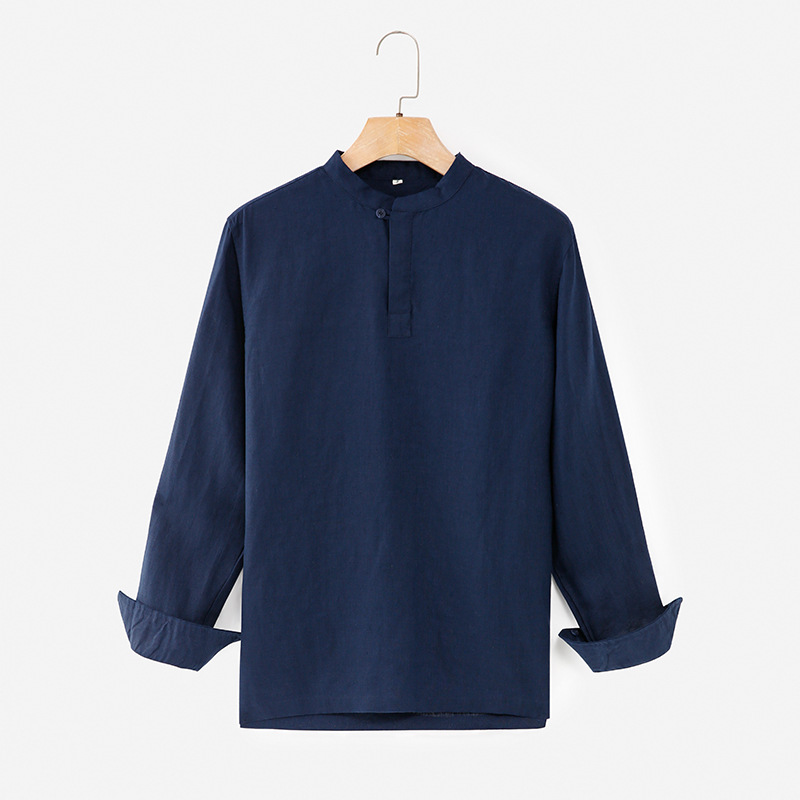 2024 새로운 린넨 셔츠 스탠드 칼라 긴팔 린넨 셔츠 느슨한 통기성 린넨 탑 캐주얼 남성 G005