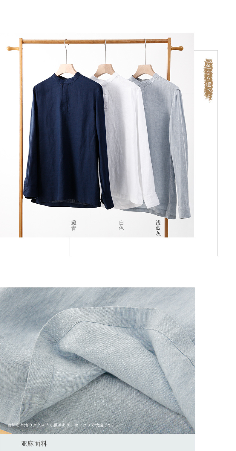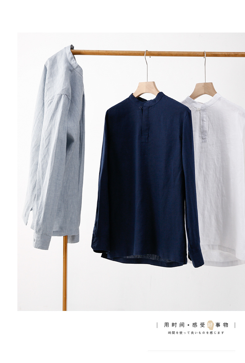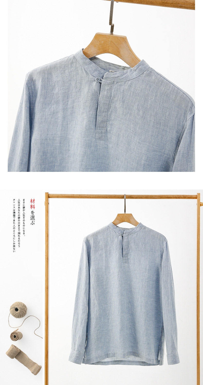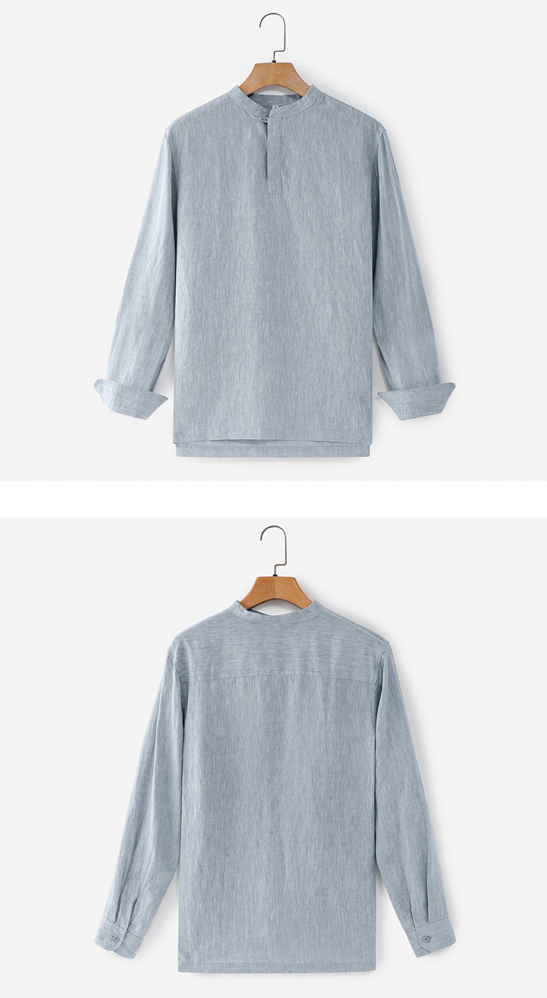 2024 새로운 린넨 셔츠 스탠드 칼라 긴팔 린넨 셔츠 느슨한 통기성 린넨 탑 캐주얼 남성 G005스토어 가기