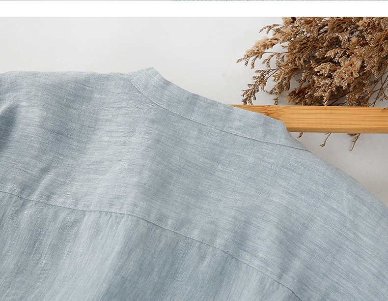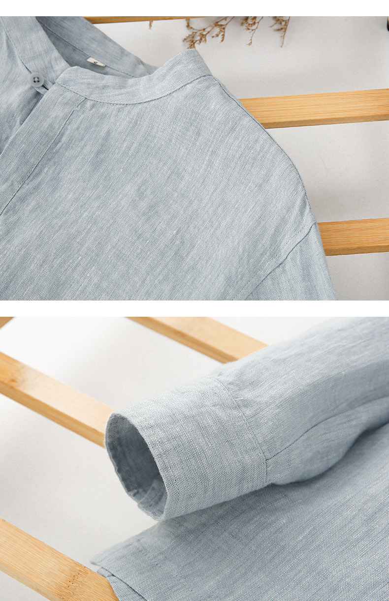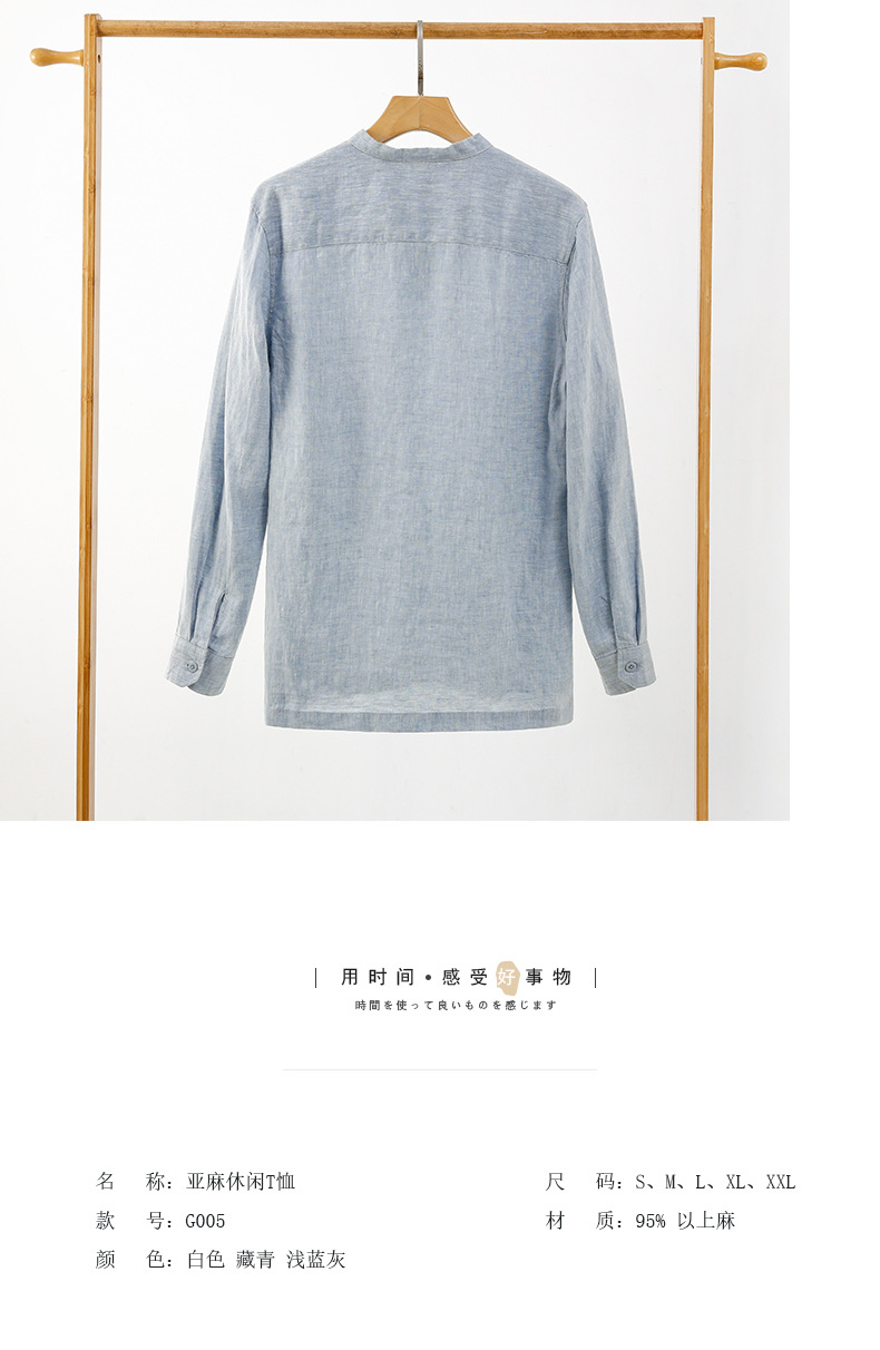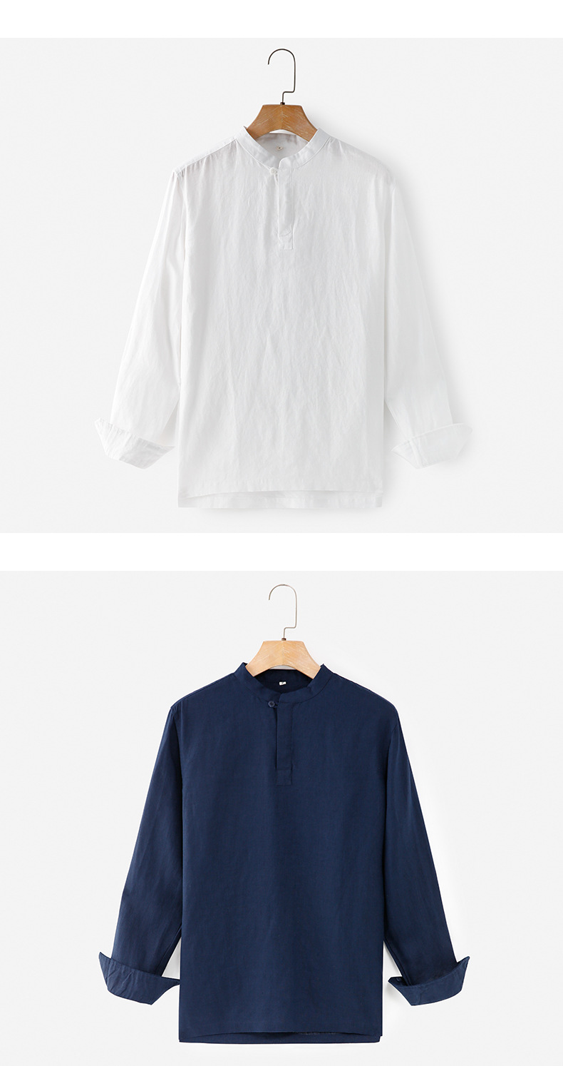 2024 새로운 린넨 셔츠 스탠드 칼라 긴팔 린넨 셔츠 느슨한 통기성 린넨 탑 캐주얼 남성 G005스토어 가기