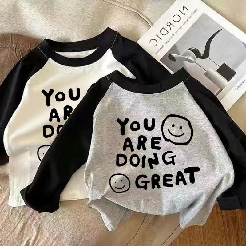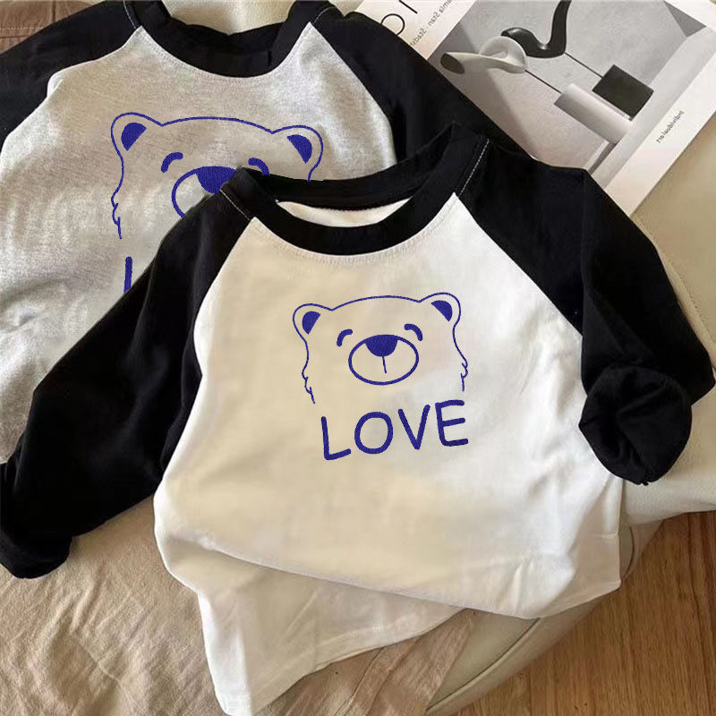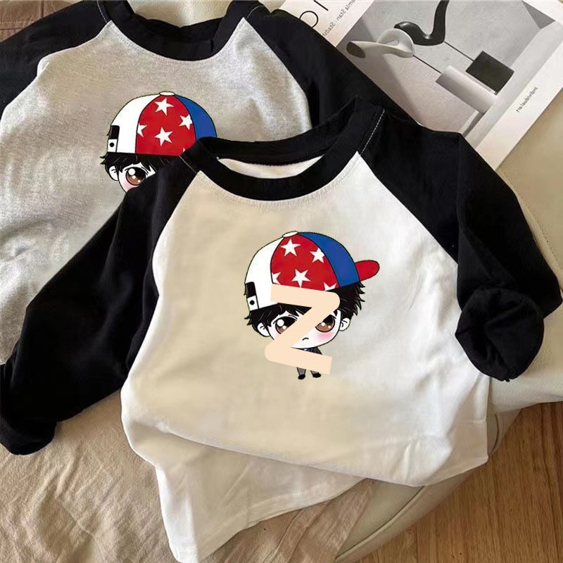 코튼 어린이 긴팔 티셔츠 남학생과 여학생 한국식 가을베이스 셔츠 어린이 아기 한국식 봄과 가을 탑 바느질스토어 가기