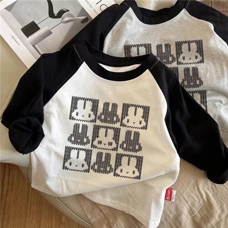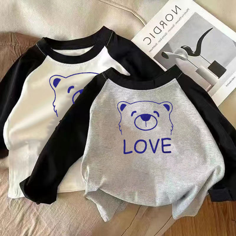 코튼 어린이 긴팔 티셔츠 남학생과 여학생 한국식 가을베이스 셔츠 어린이 아기 한국식 봄과 가을 탑 바느질