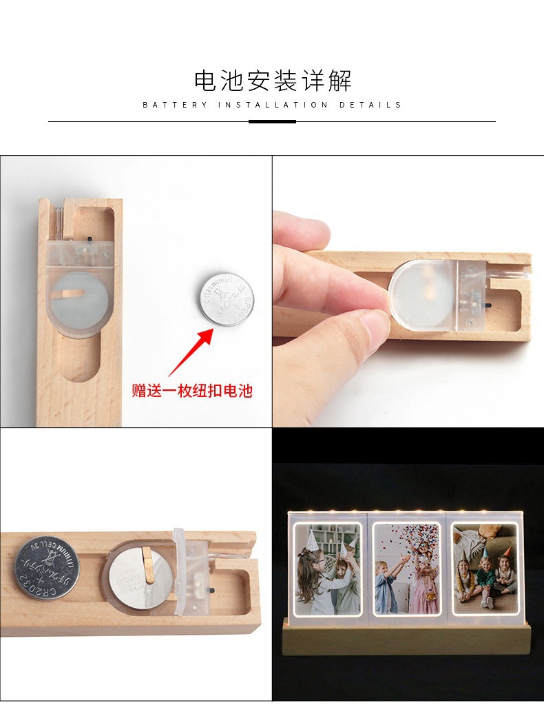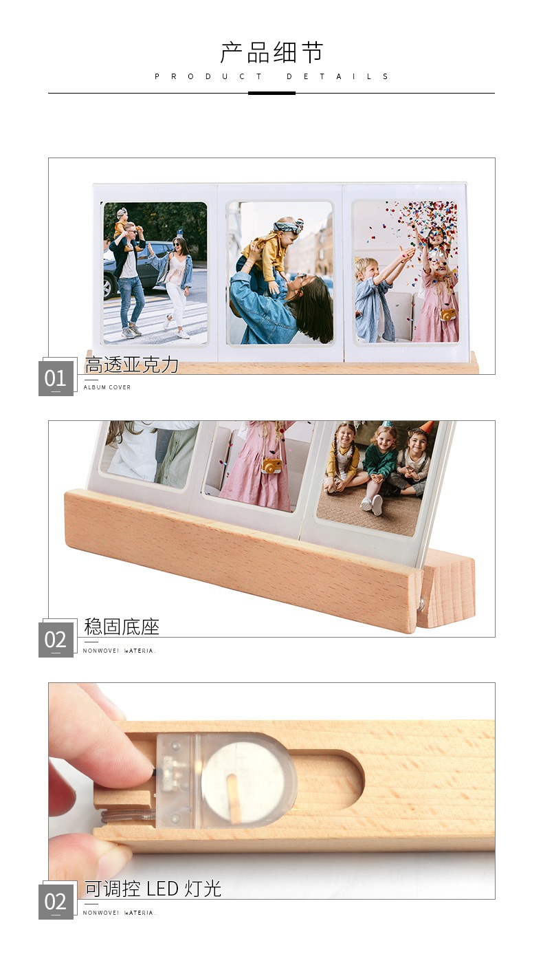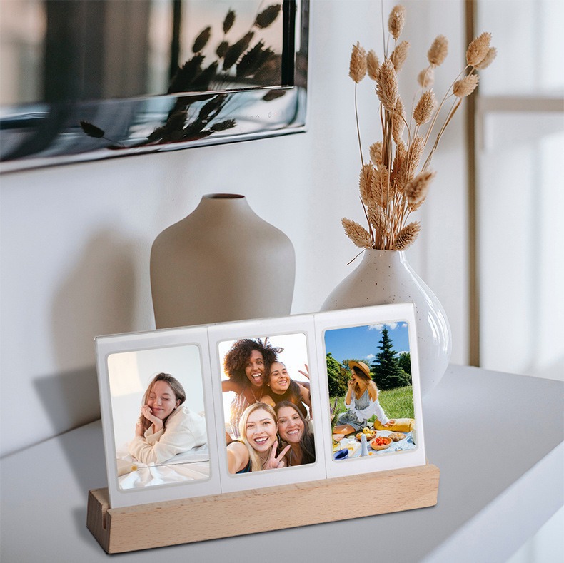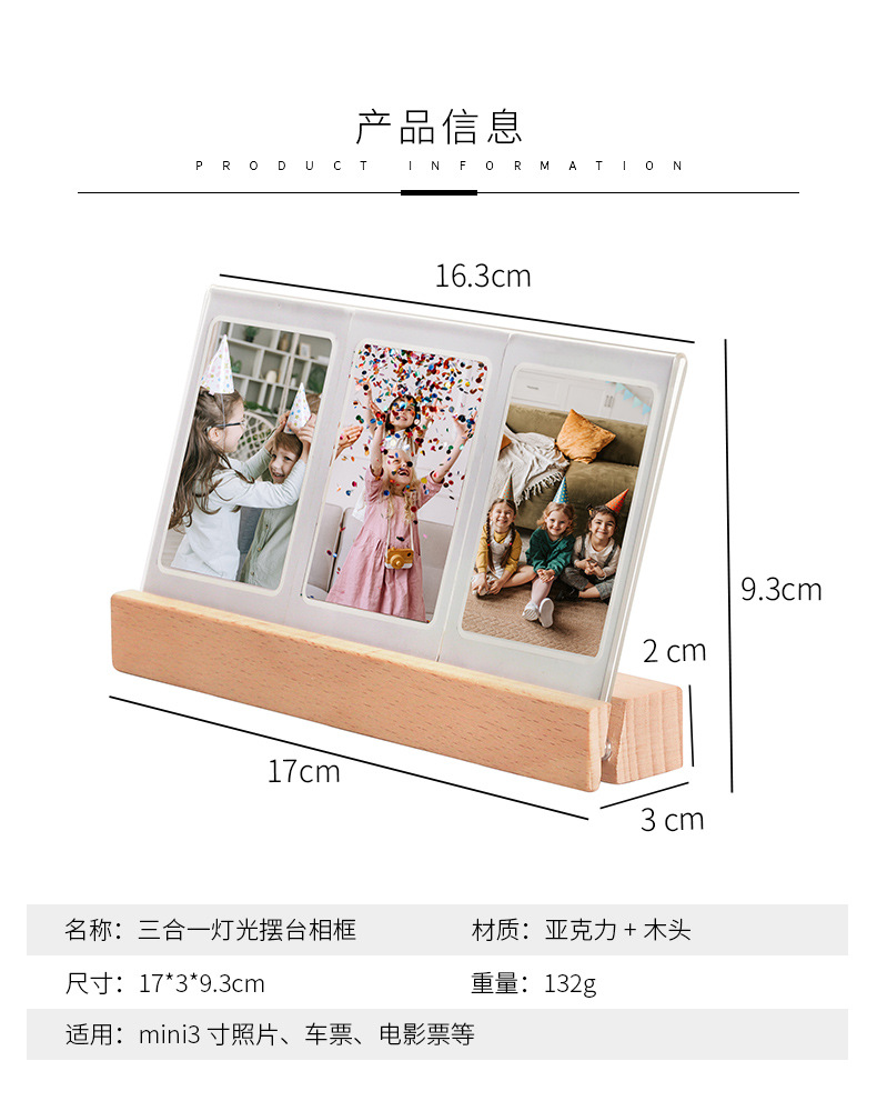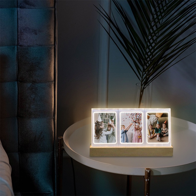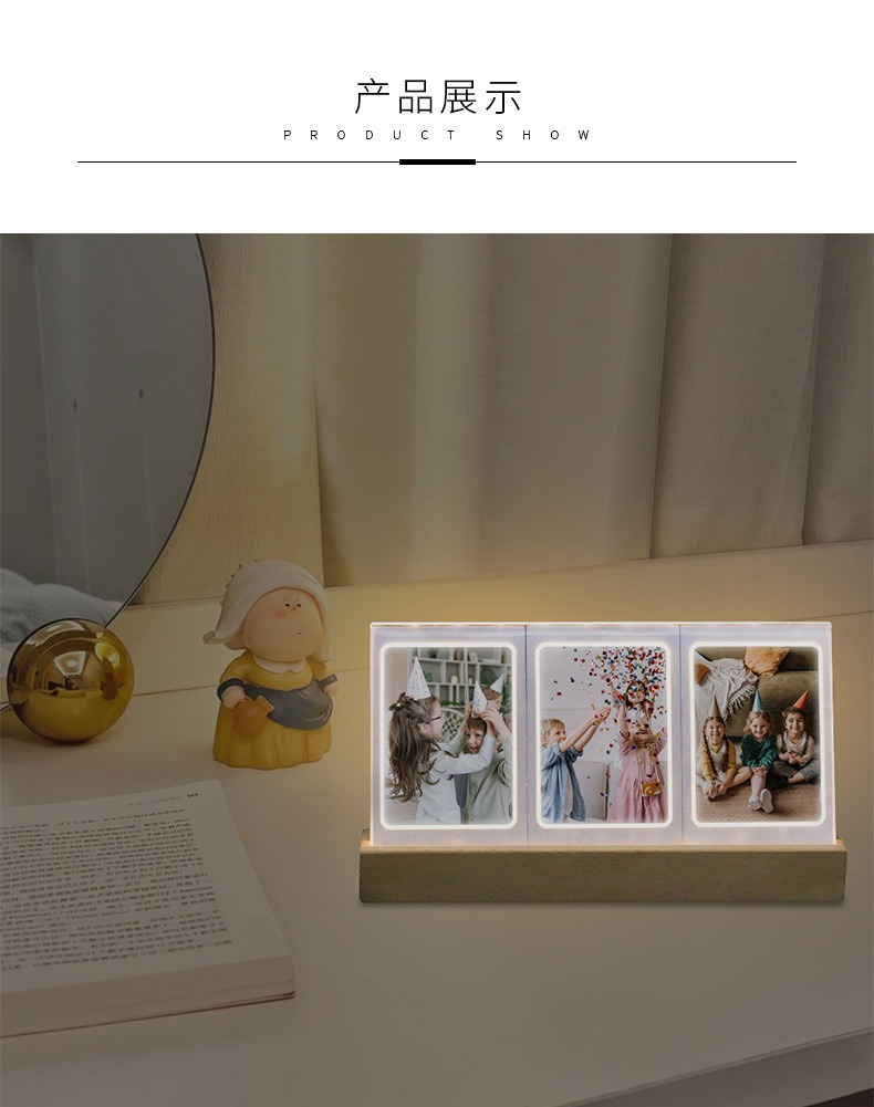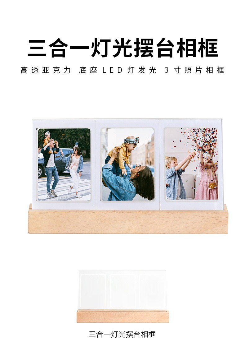 拍立得mini3寸灯光摆台相框 夜晚温馨氛围照片三宫格透明发光相框