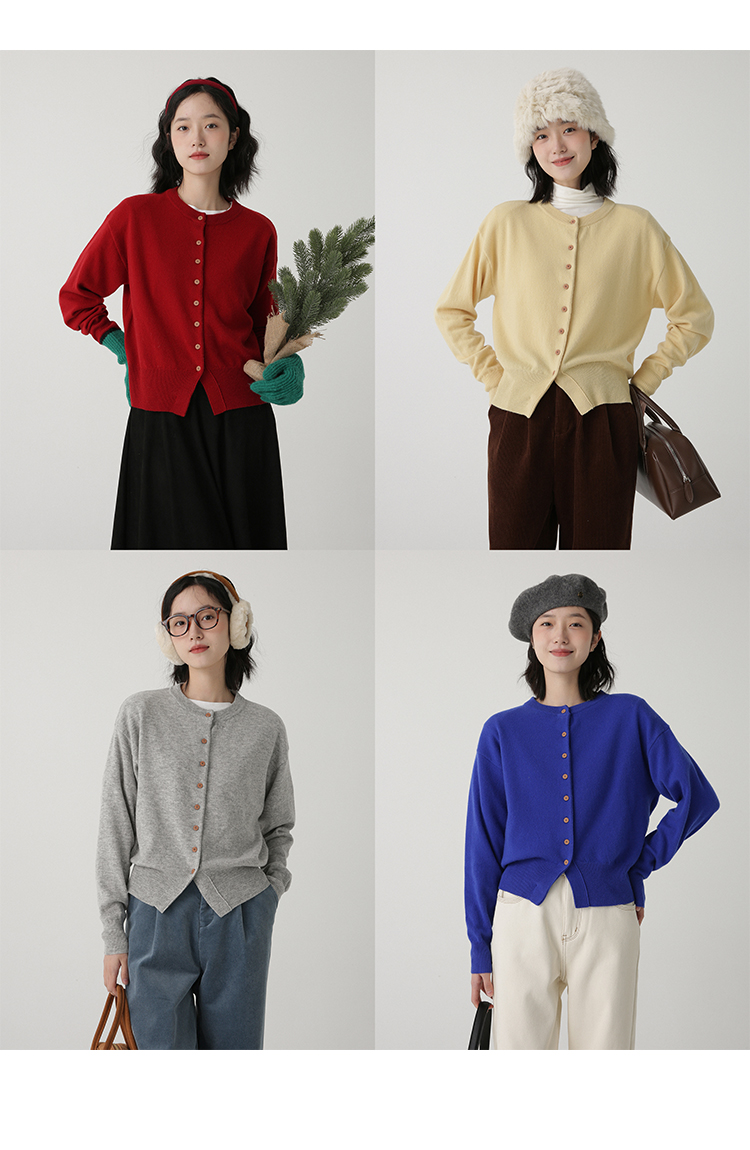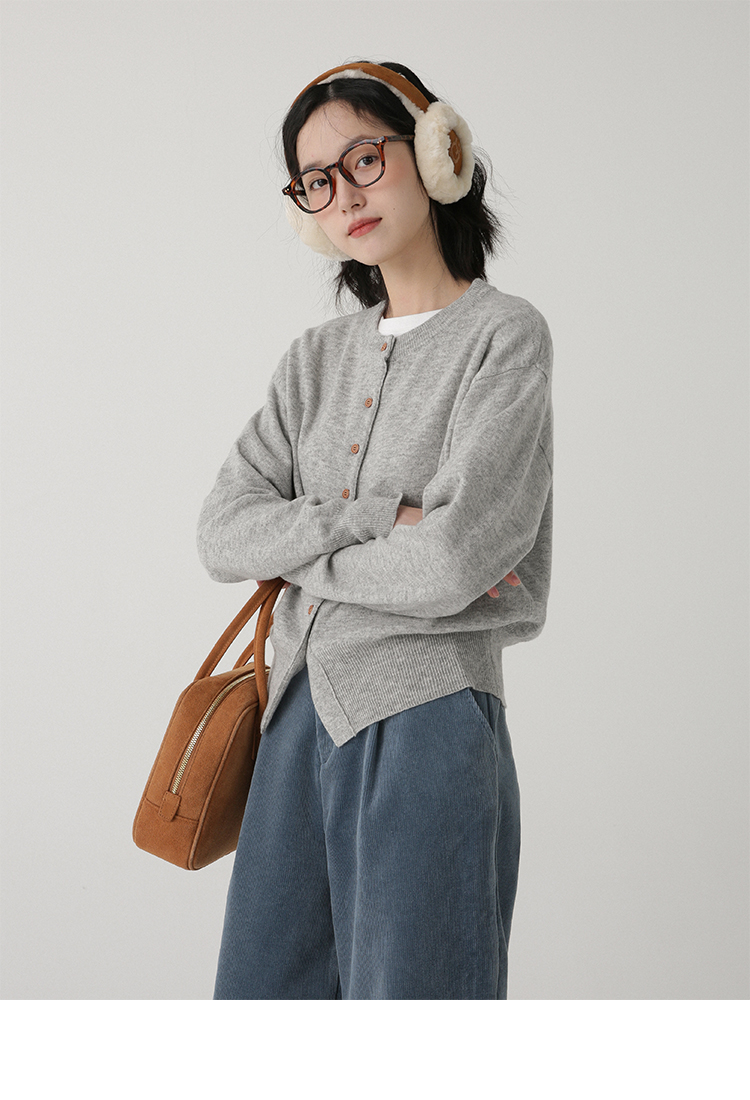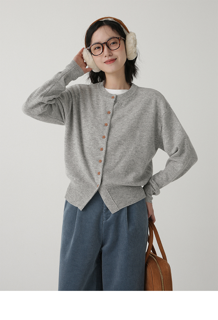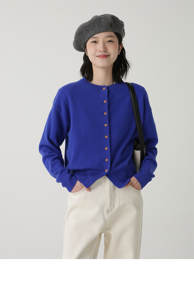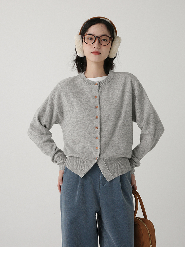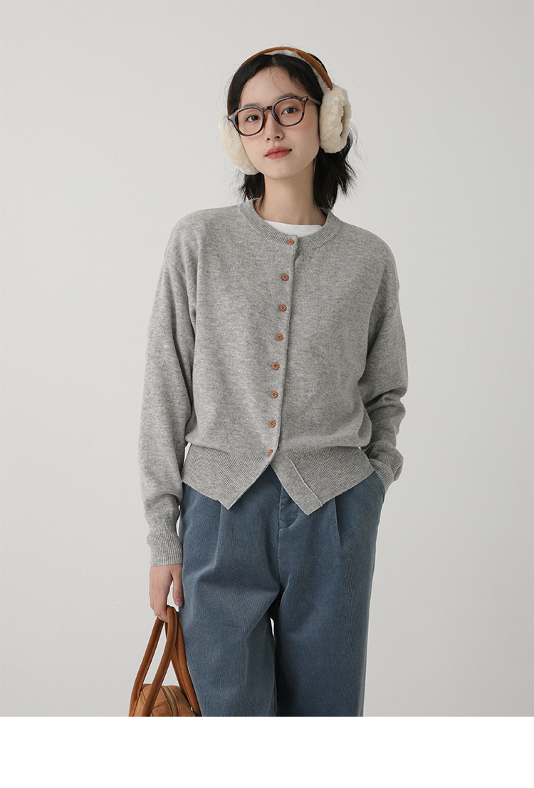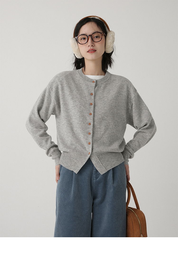 100% 양모 둥근 목 니트 카디건 내베이스 셔츠 느슨한 스웨터 카디건