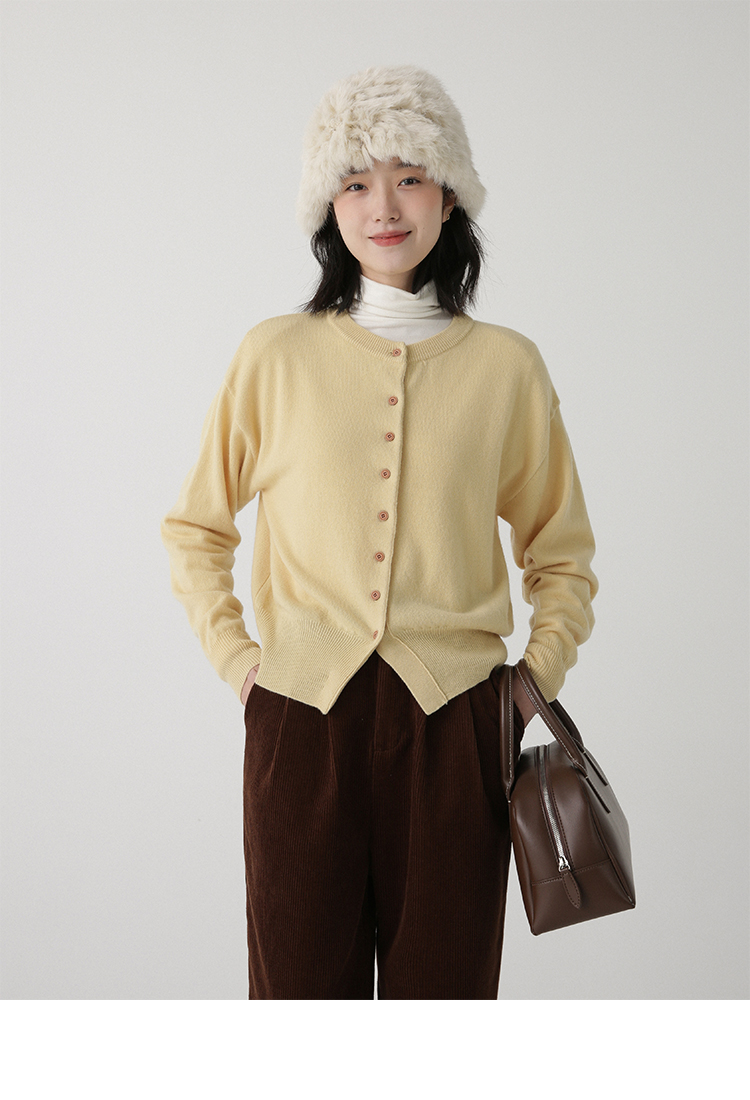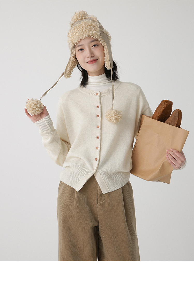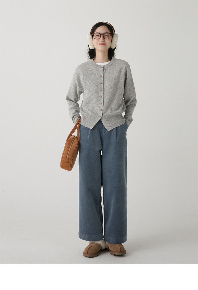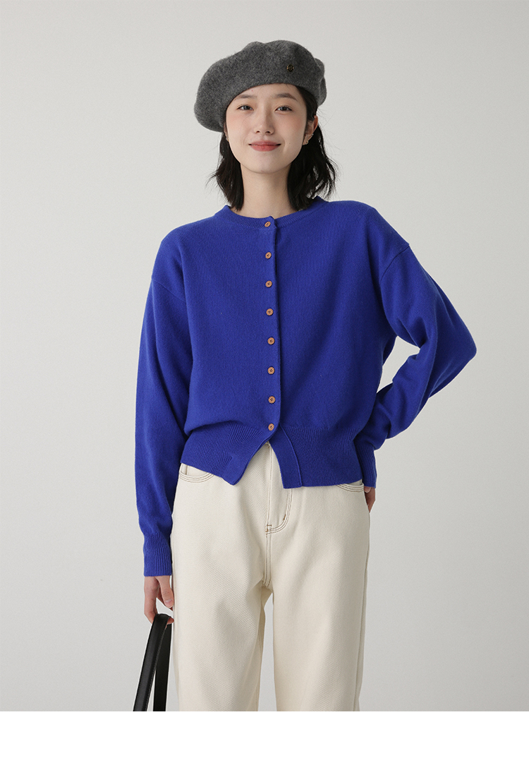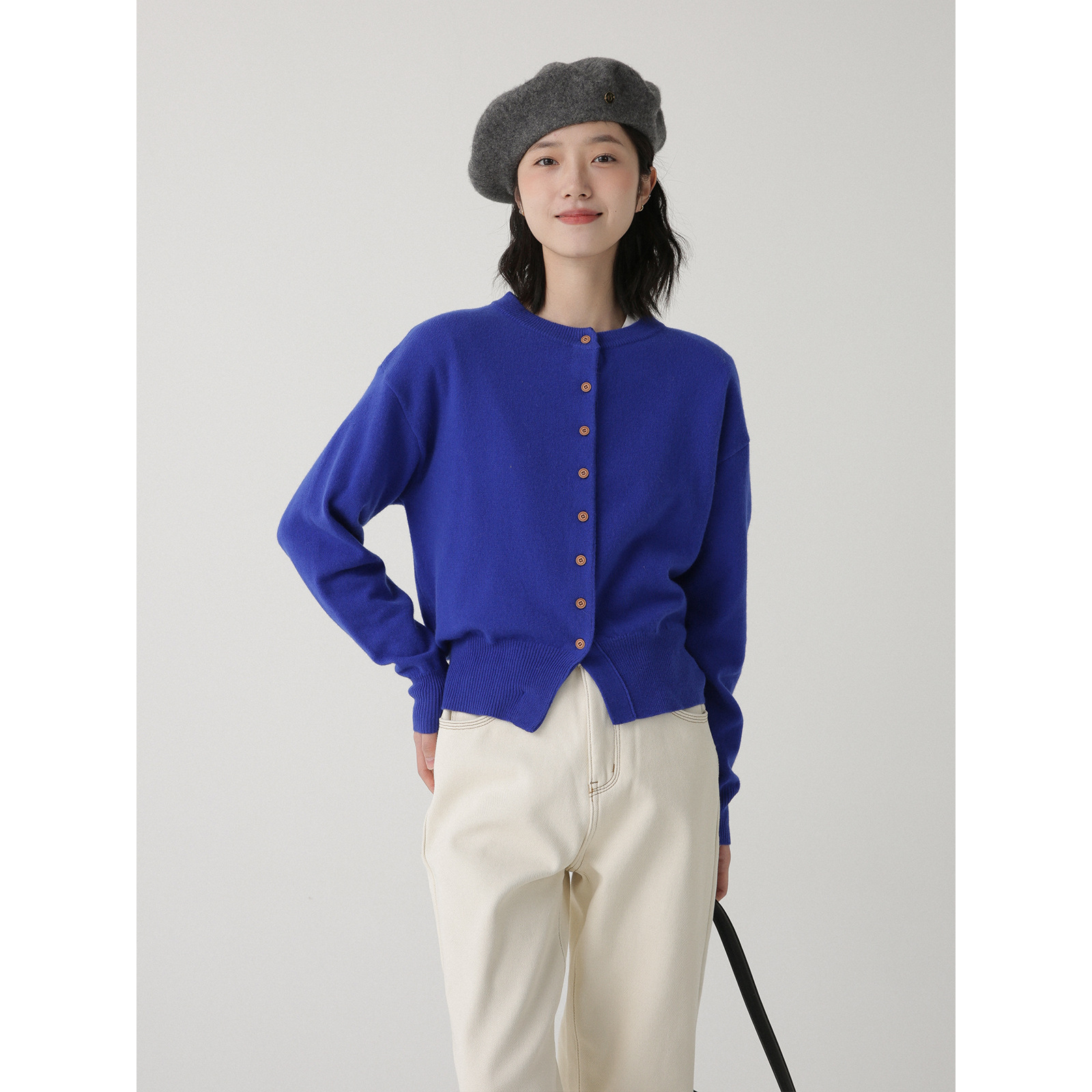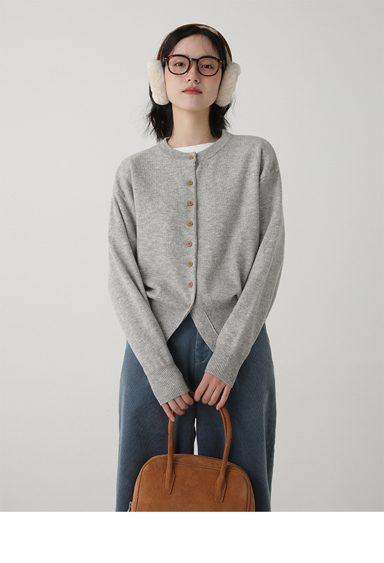 100% 양모 둥근 목 니트 카디건 내베이스 셔츠 느슨한 스웨터 카디건