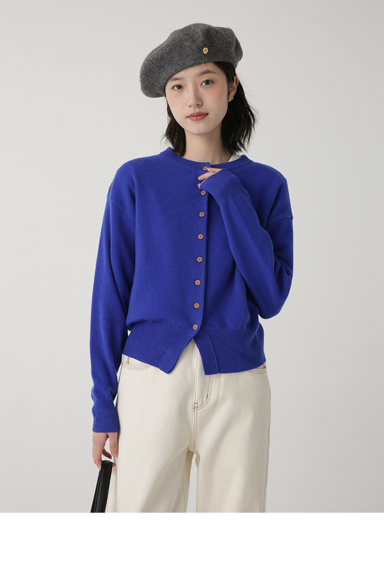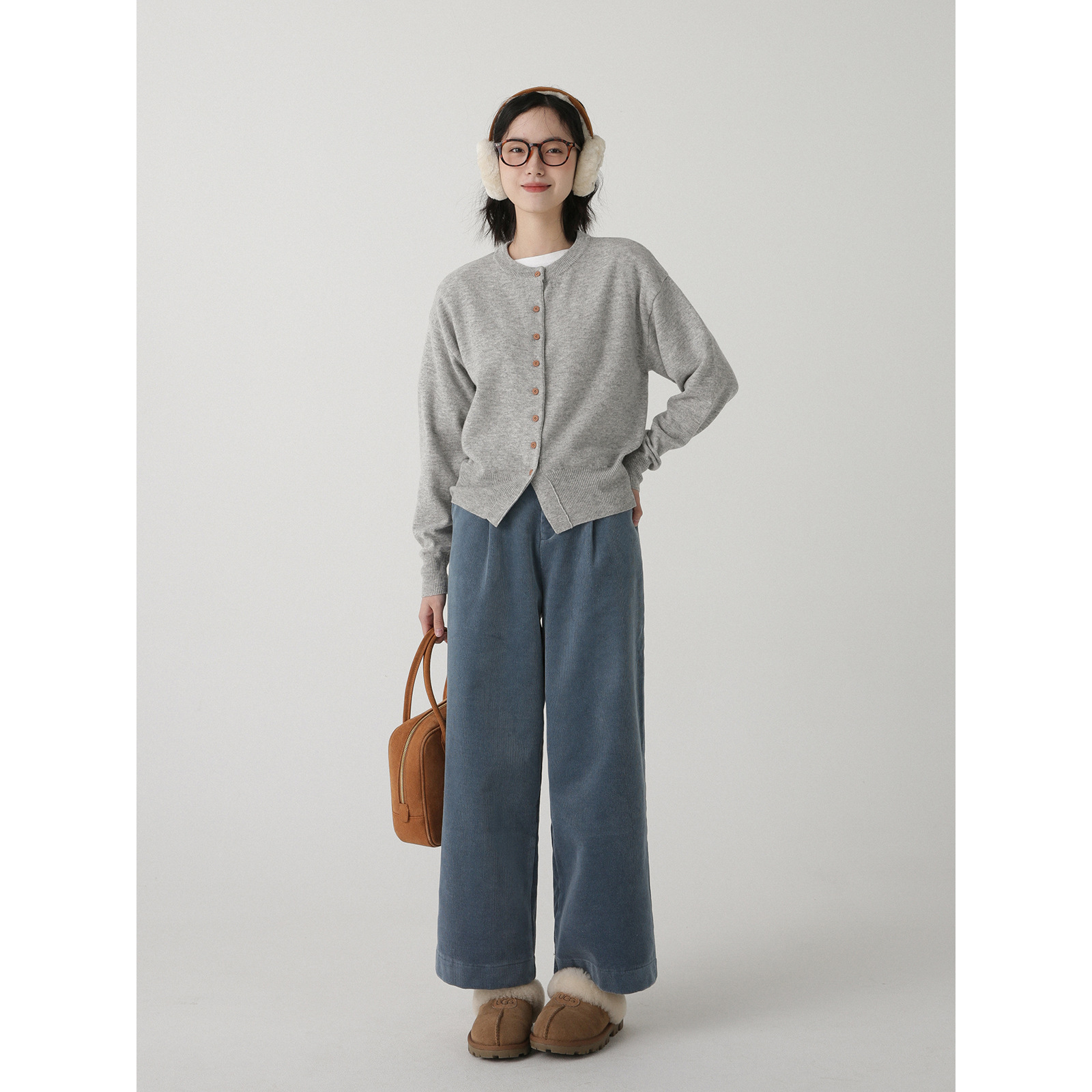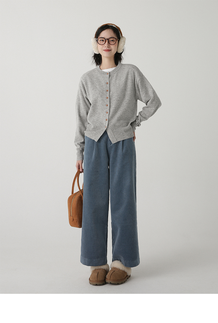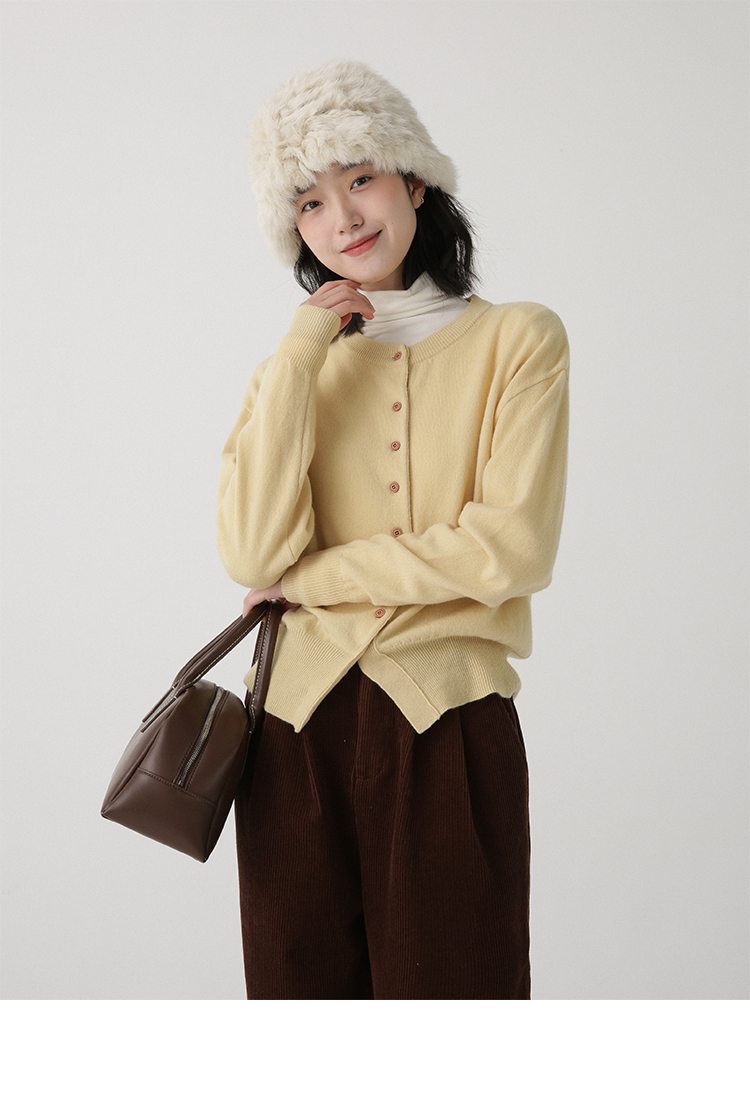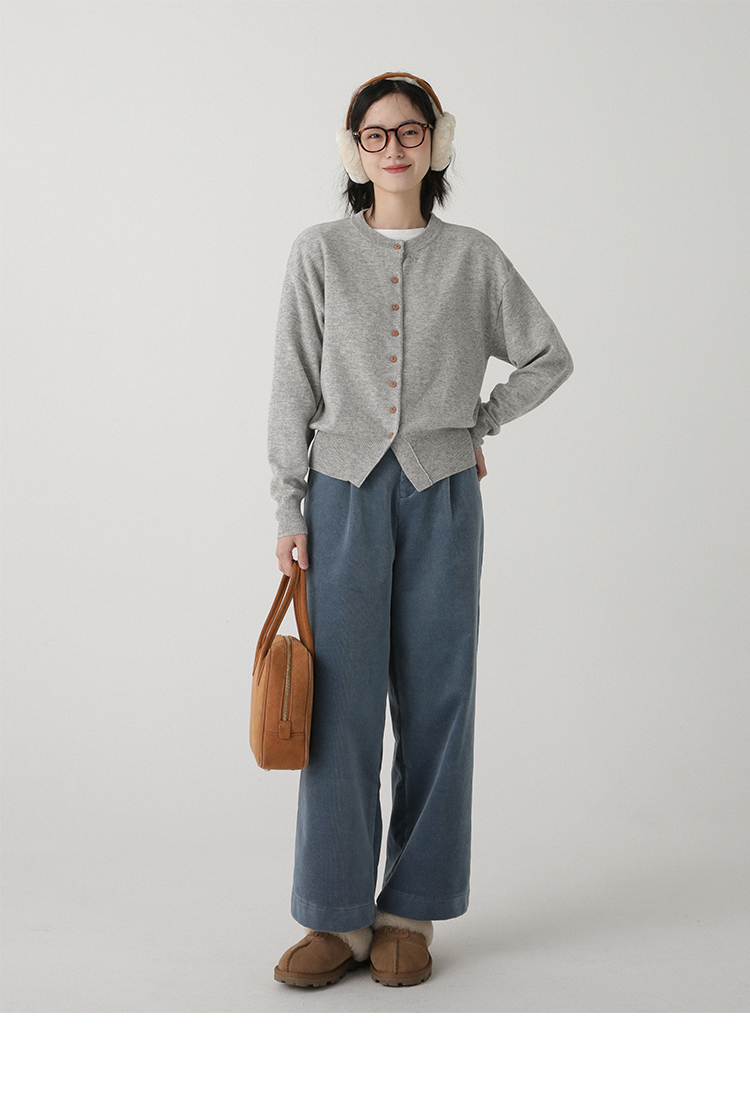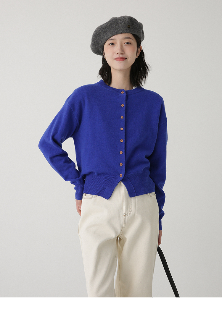 100% 양모 둥근 목 니트 카디건 내베이스 셔츠 느슨한 스웨터 카디건