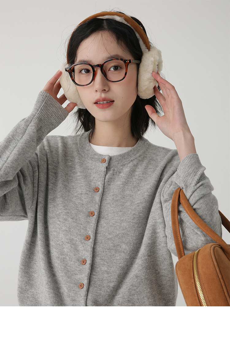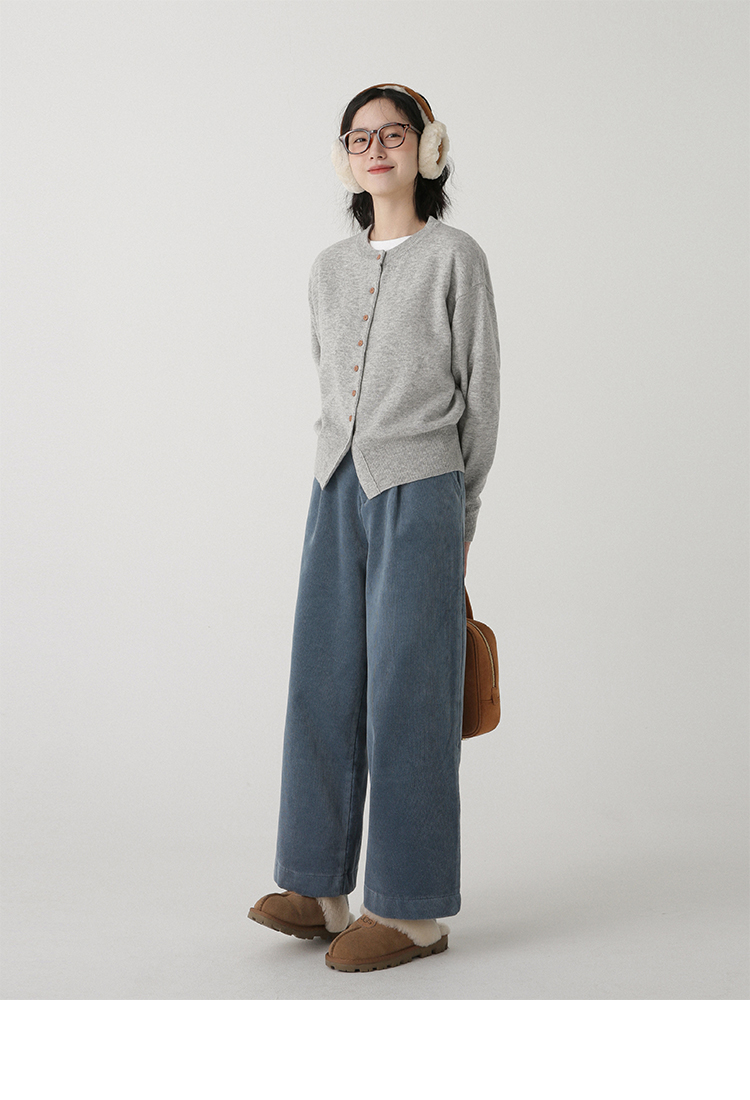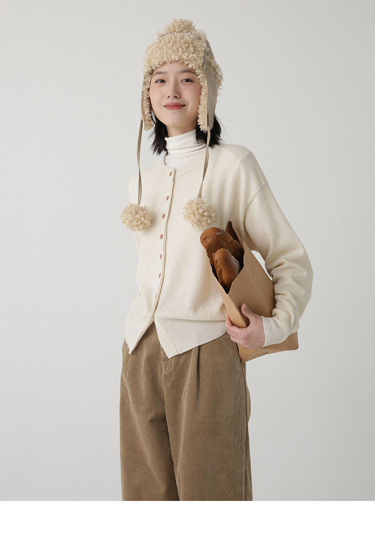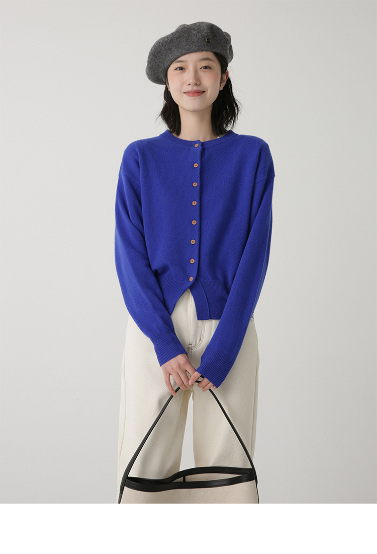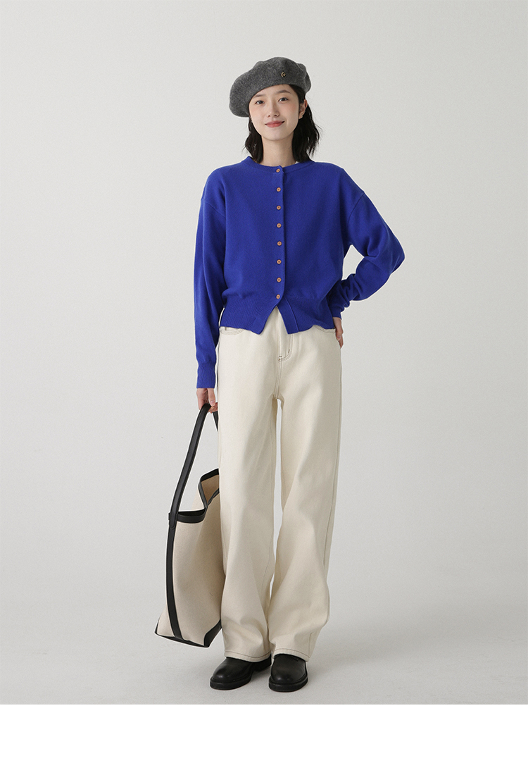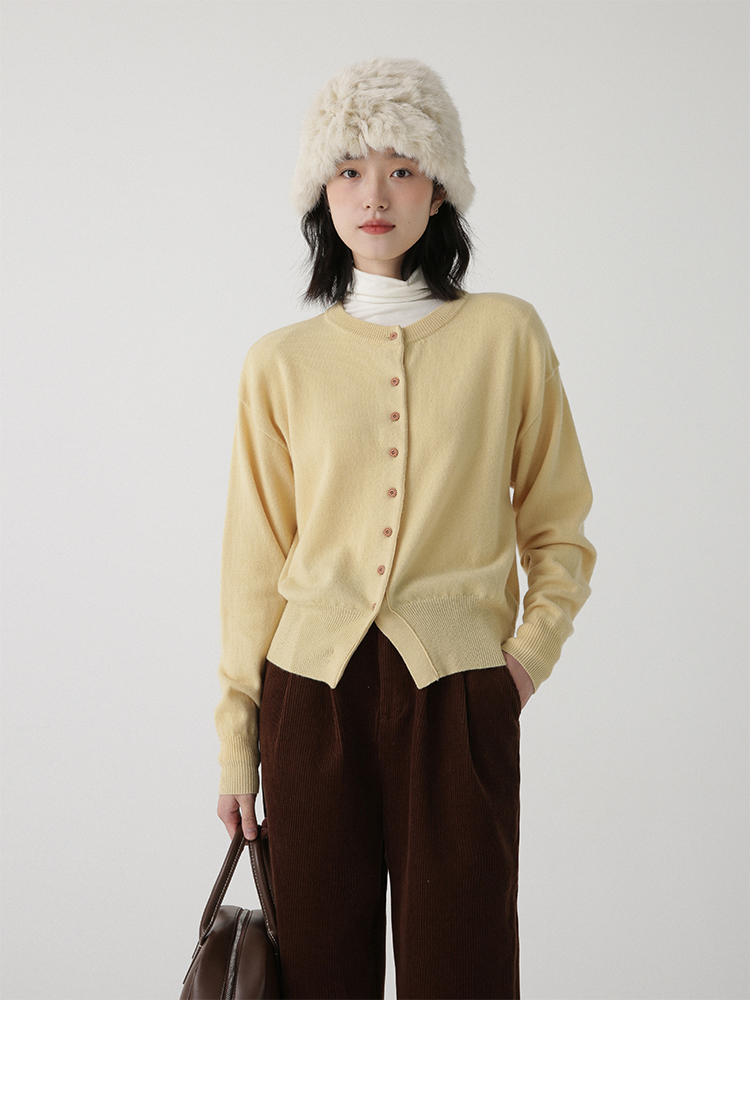 100% 양모 둥근 목 니트 카디건 내베이스 셔츠 느슨한 스웨터 카디건