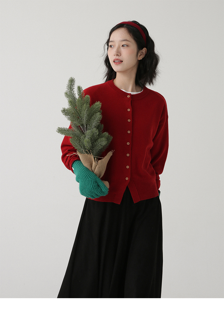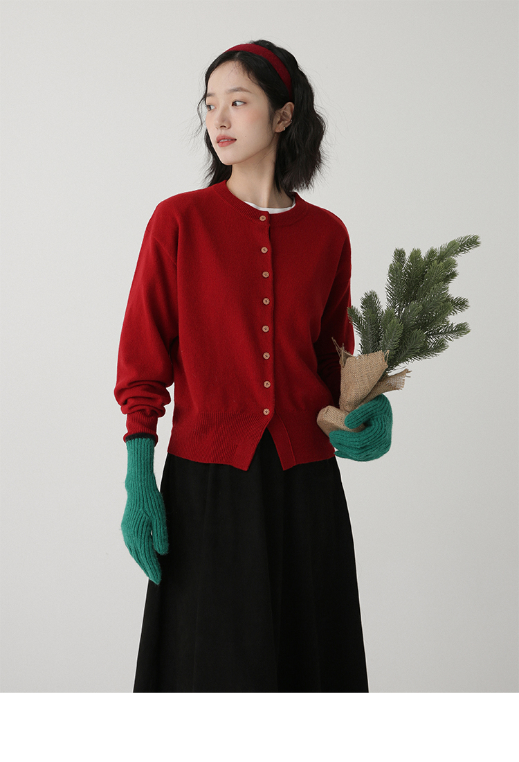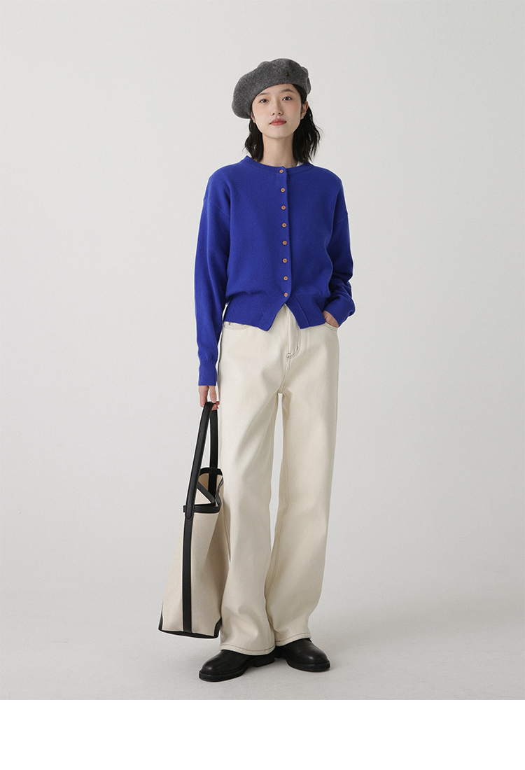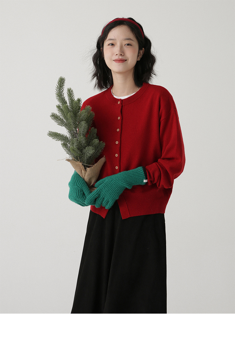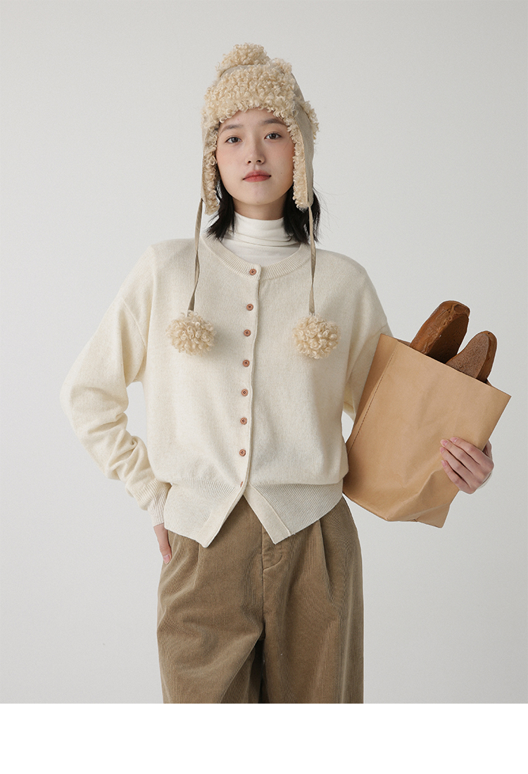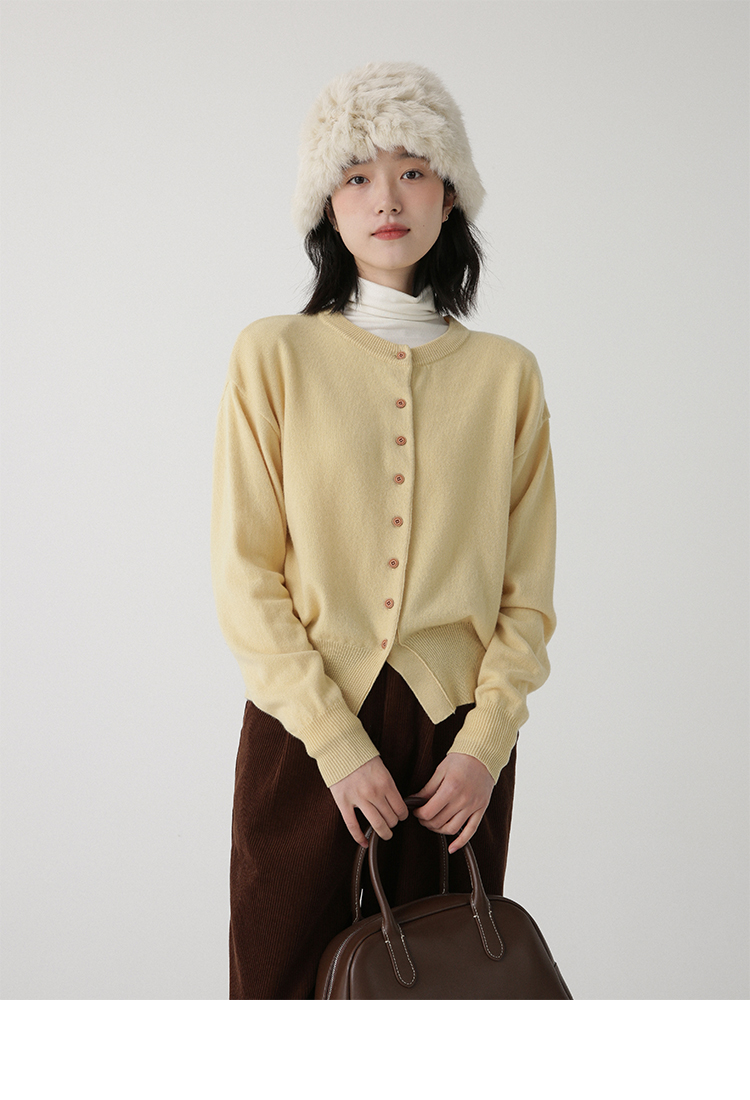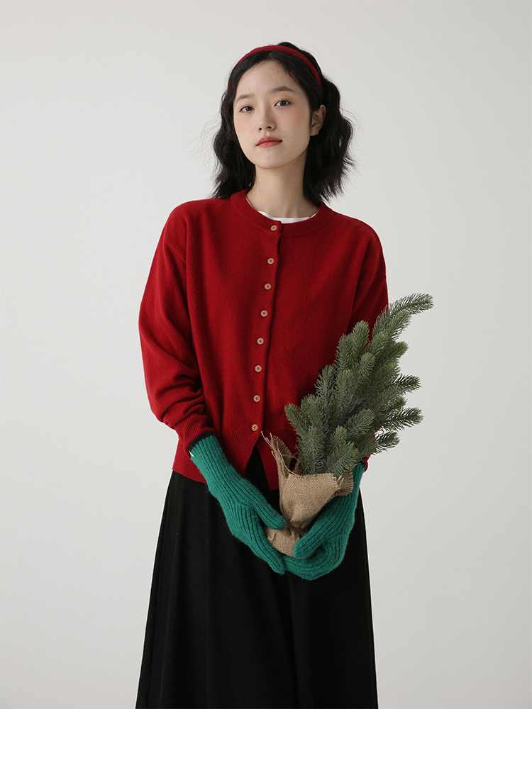 100% 양모 둥근 목 니트 카디건 내베이스 셔츠 느슨한 스웨터 카디건