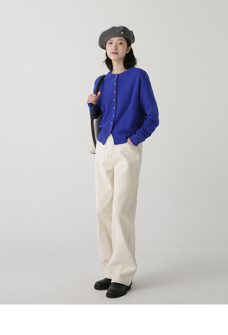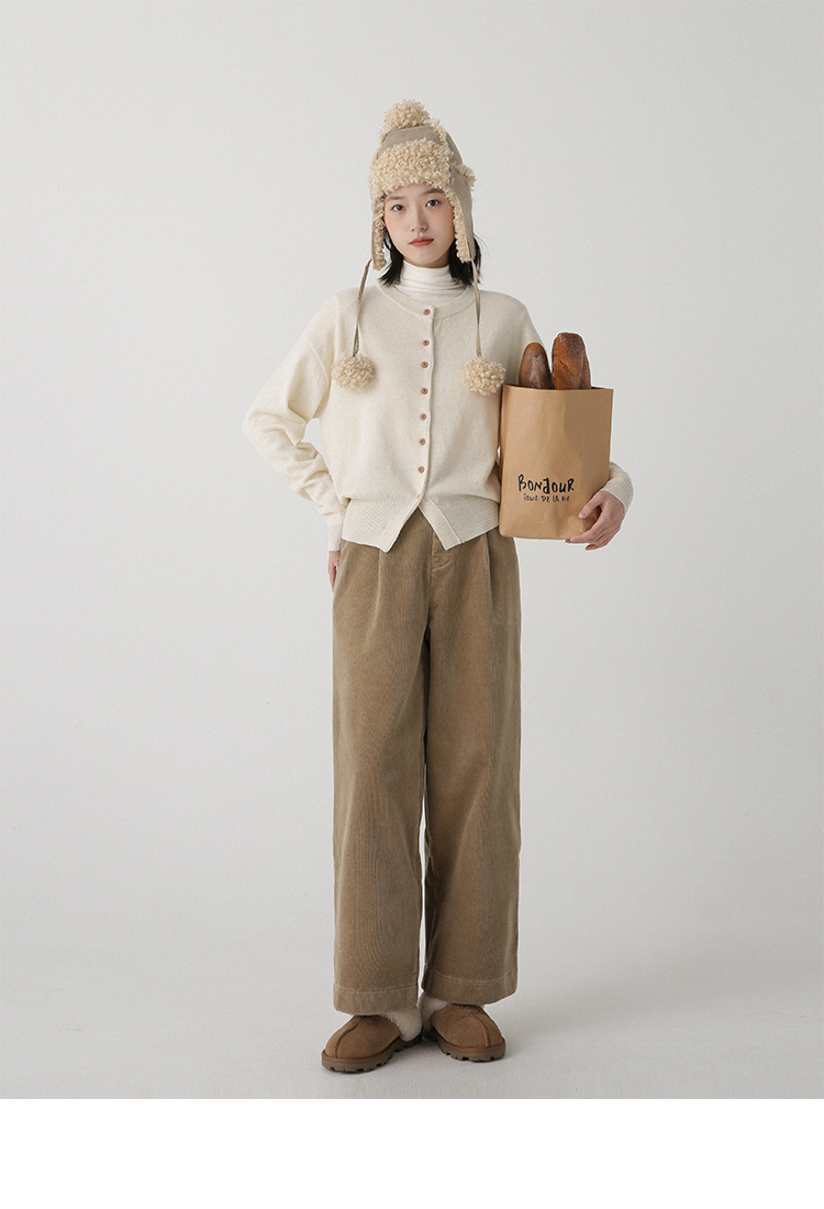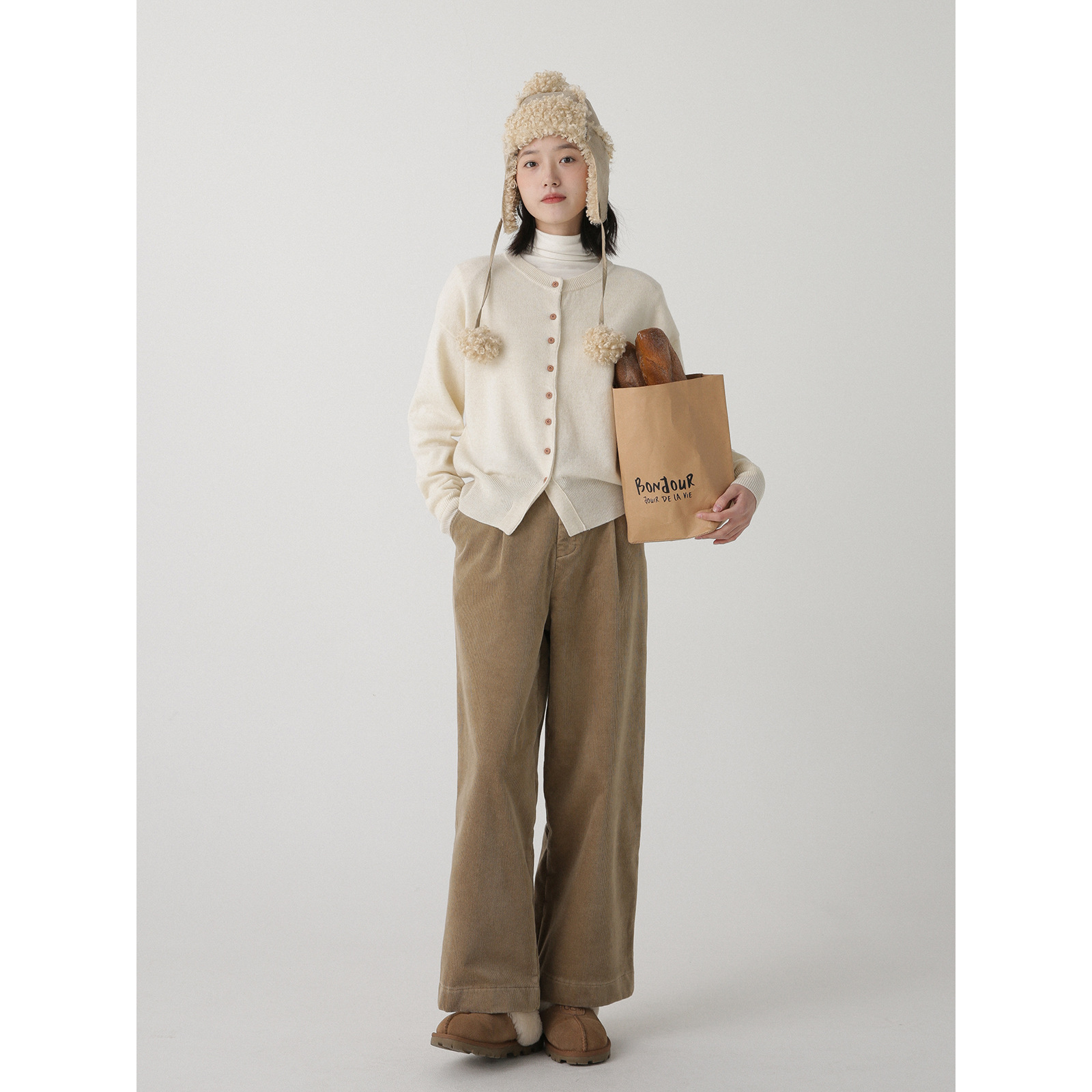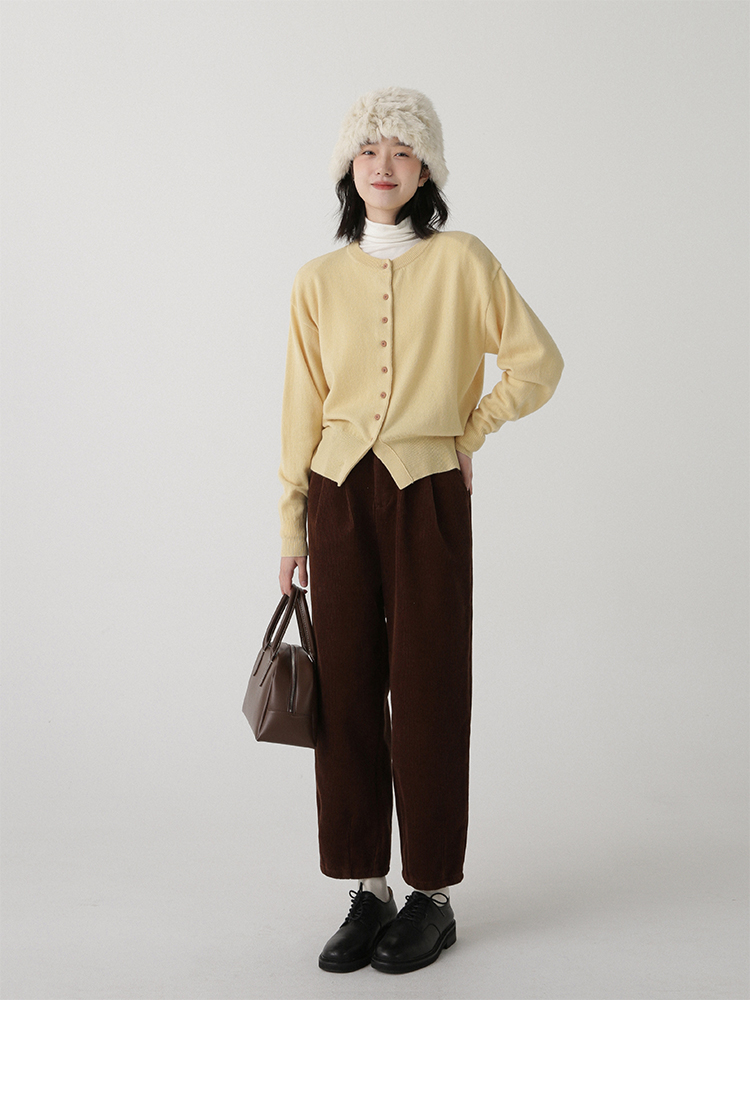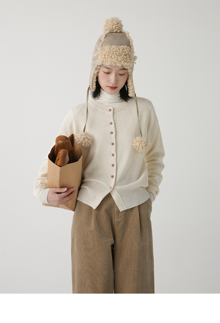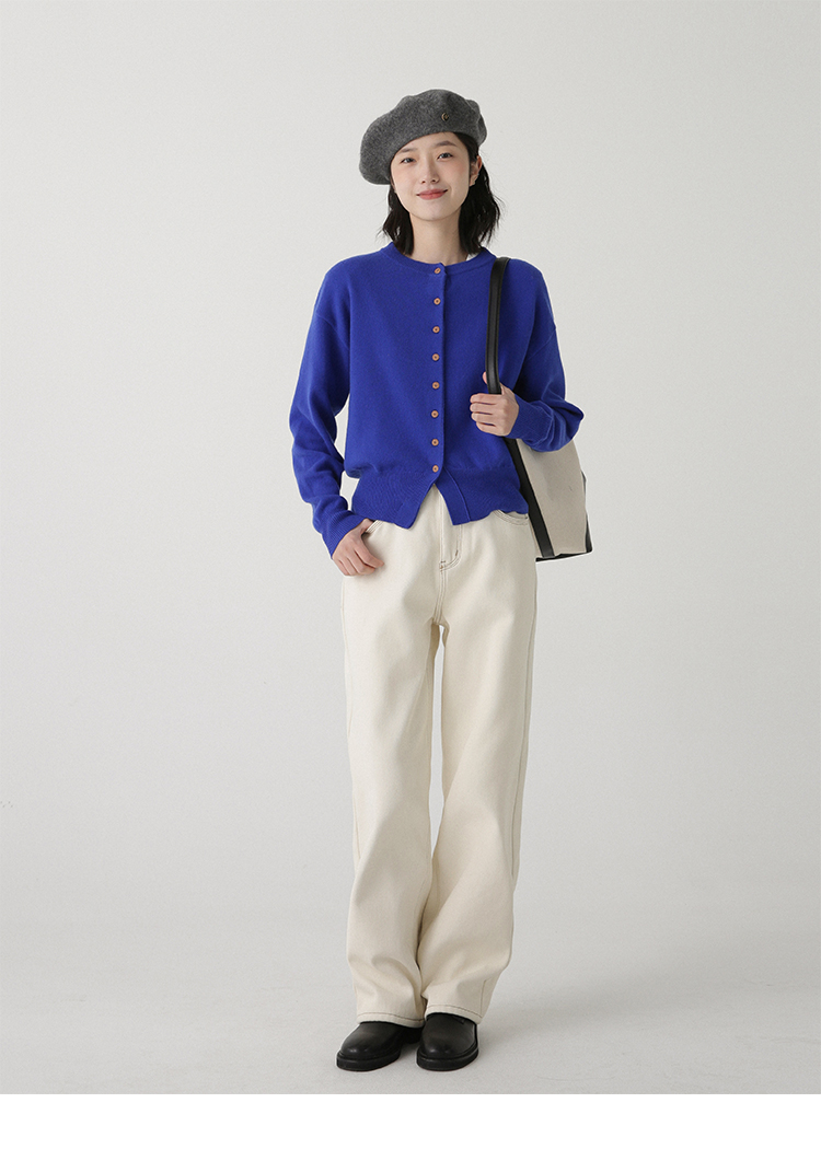 100% 양모 둥근 목 니트 카디건 내베이스 셔츠 느슨한 스웨터 카디건