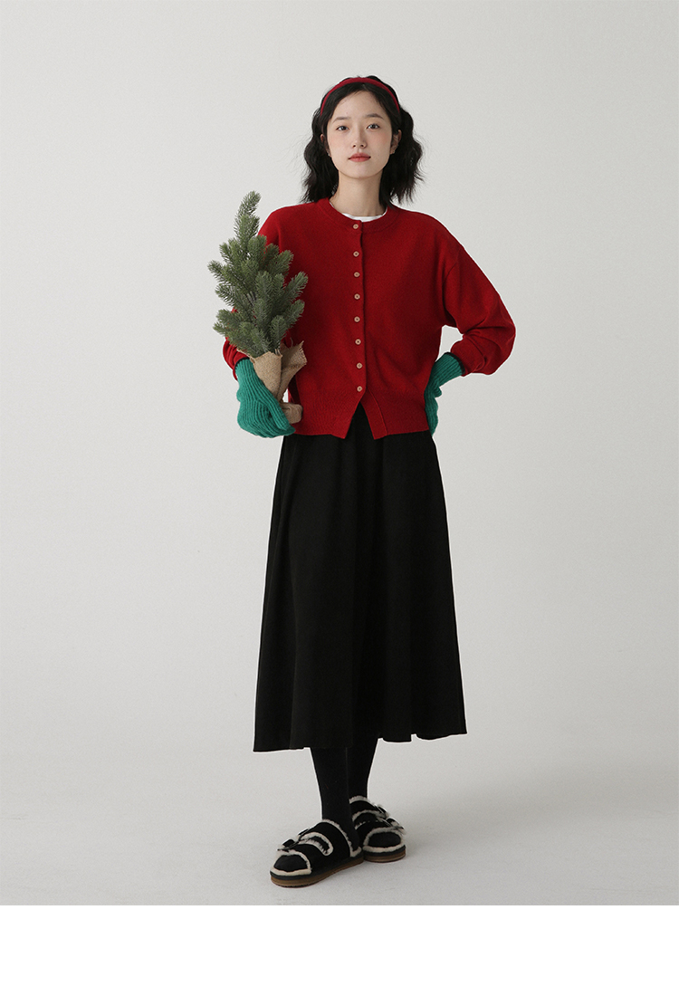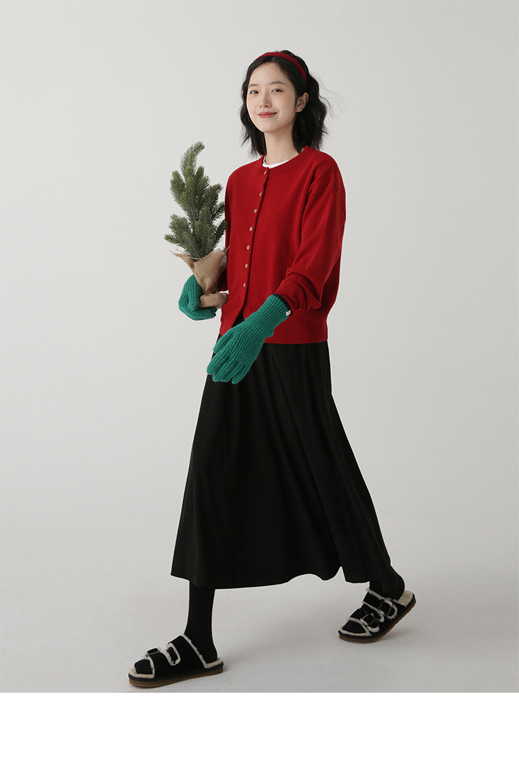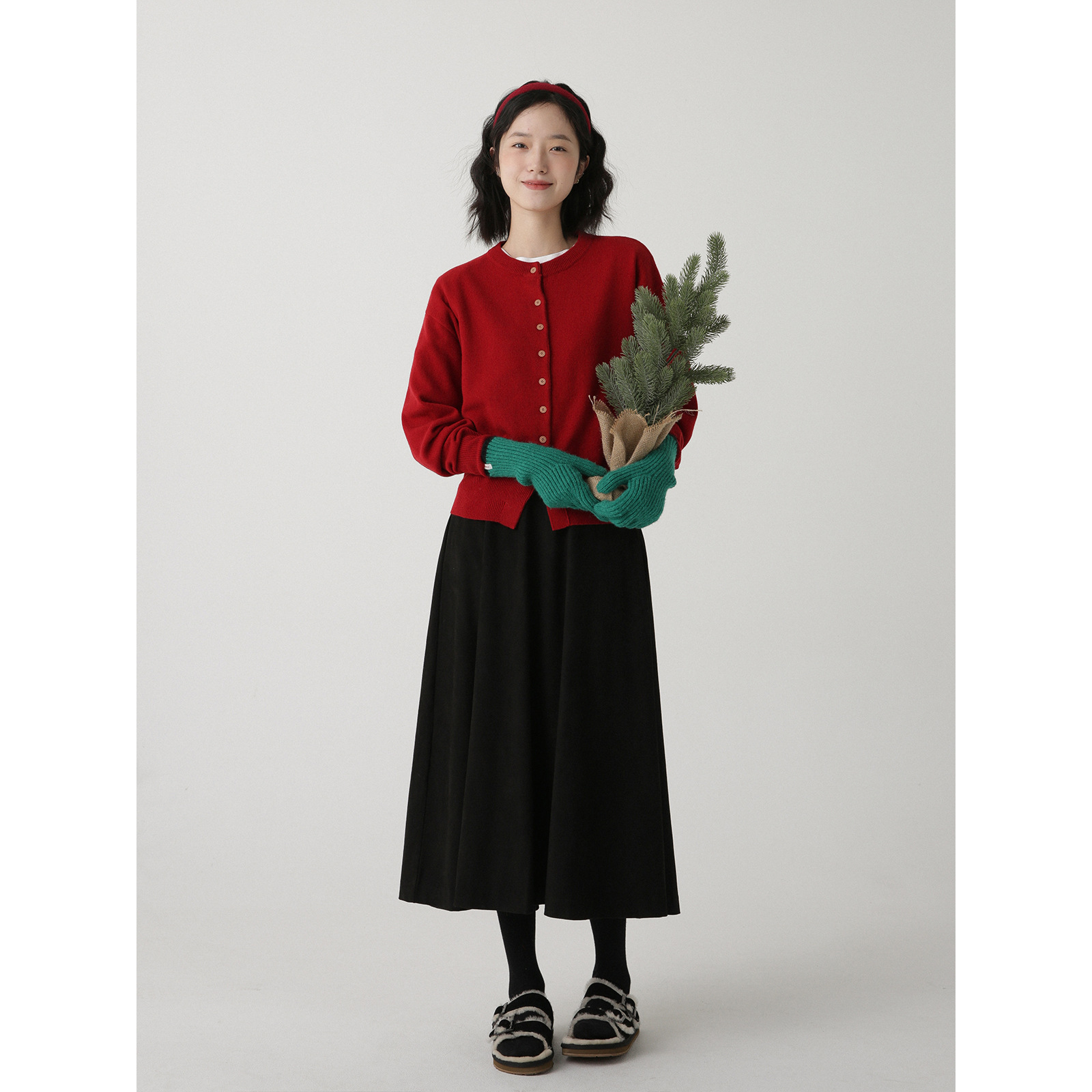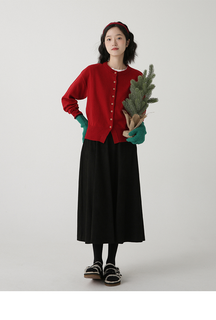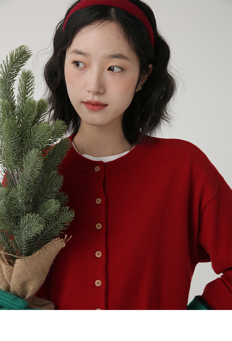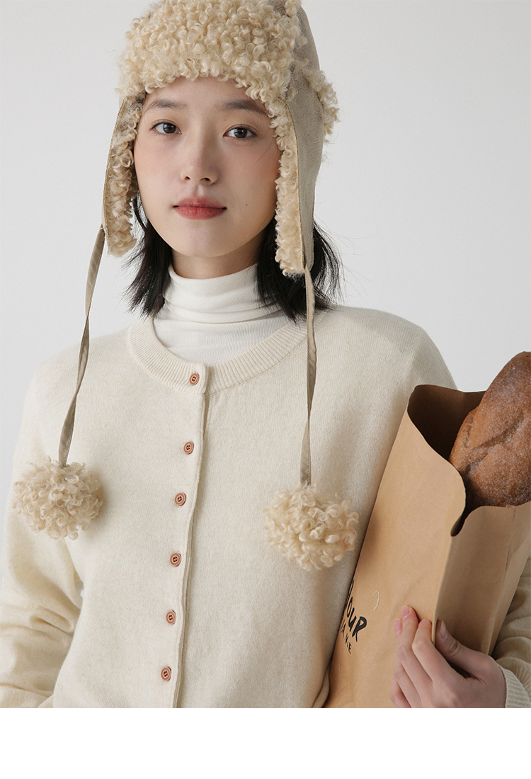 100% 양모 둥근 목 니트 카디건 내베이스 셔츠 느슨한 스웨터 카디건