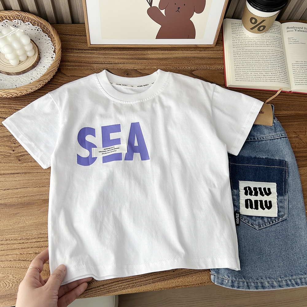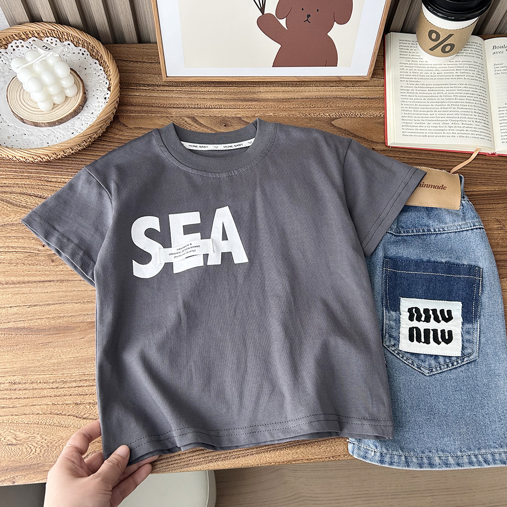 새로운 2024 여름 아동복 소년면 한국 스타일 느슨한 둥근 목 반소매 티셔츠 탑 도매스토어 가기