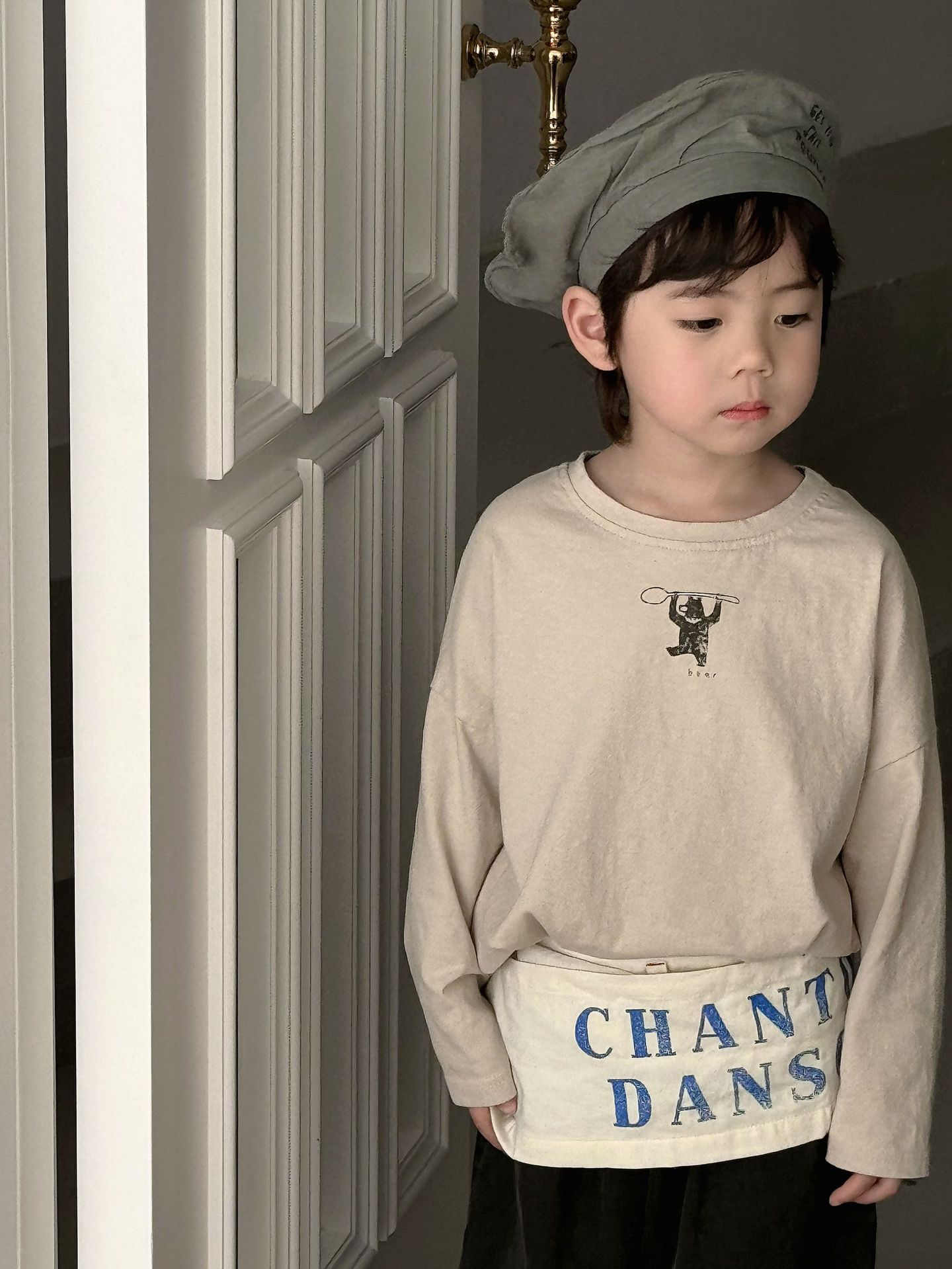 봄 한국식 어린이 만화 티셔츠베이스 셔츠 어린이 캐주얼 루즈 심플 올 매치 긴소매 아우터 탑