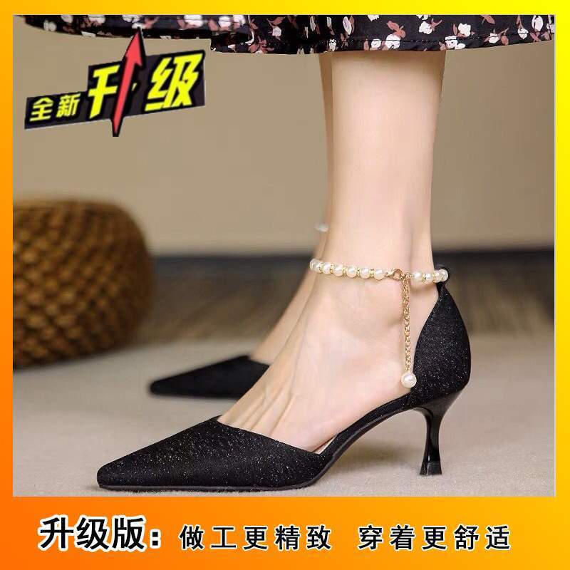 프랑스 스타일 봄과 가을 2023 여성을위한 진주 하이힐 신발 여름 우아한 뾰족한 발가락 버클 스틸레토 힐 신발스토어 가기