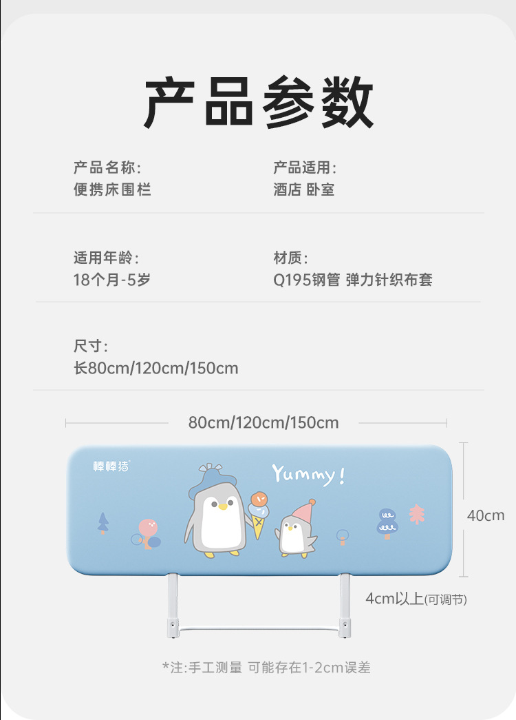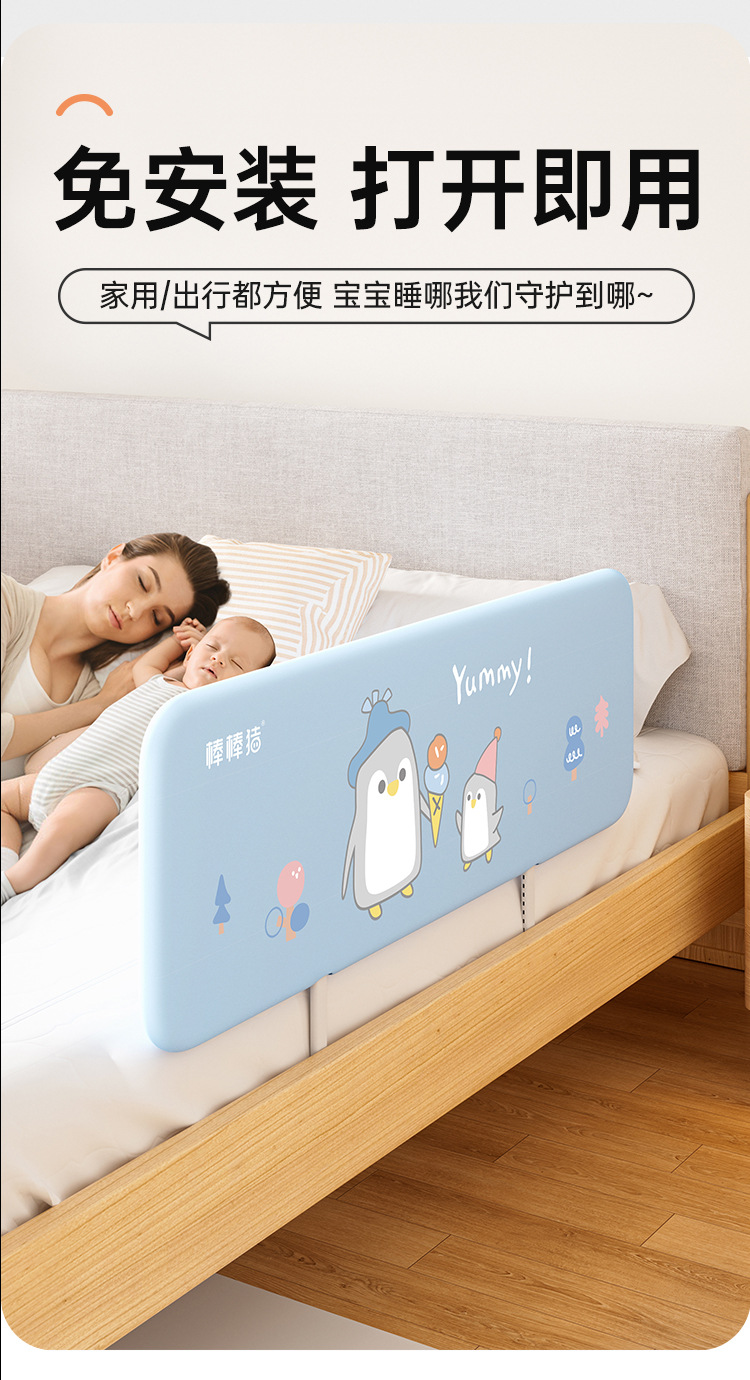 바람막이 돼지 무설치 침대 가드 아기 낙상 방지 침대 안전 가드 못 없이 휴대용 여행용 침대 보호대