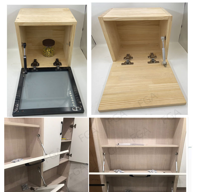 알루미늄 프레임 도어 울트라 짧은 상부 플랩 도어 지원 로드 더 낮은 플랩 도어 유압 로드 상부 플랩 도어 공압 로드 작은 교수형 캐비닛 가스 스트럿
