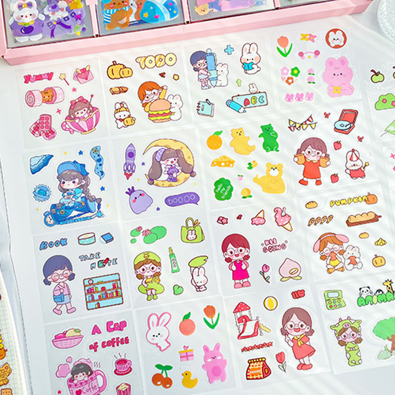 만화 PET 투명 저널 스티커 높은 찾고 귀여운 소녀 심장 저널 물 컵 장식 Goka DIY 작은 스티커스토어 가기