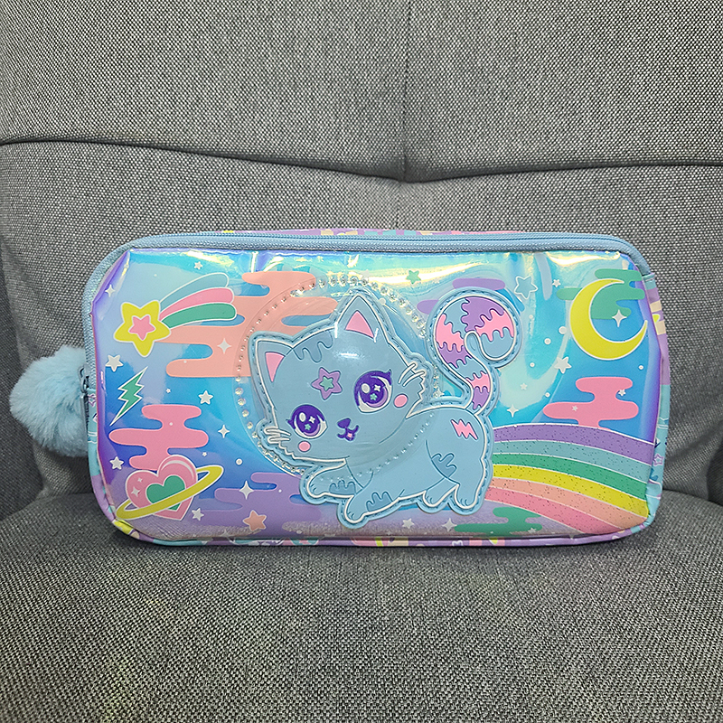• 카드가 포함된 네이비 블루 항공우주 고양이 단일 레이어 필통