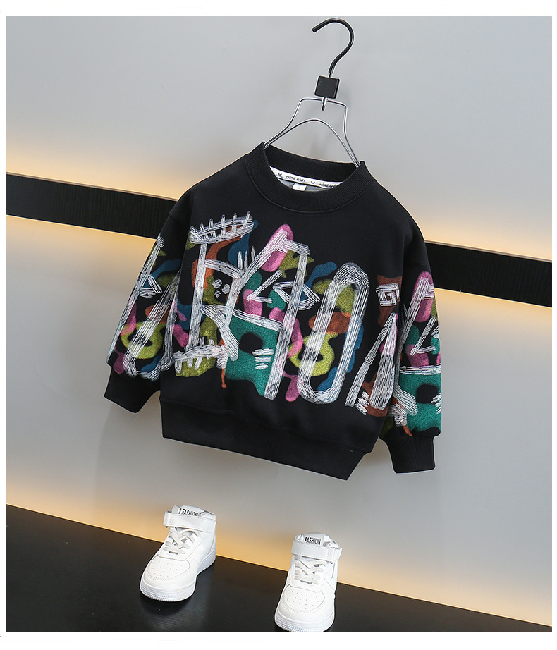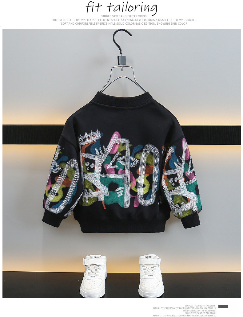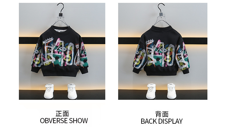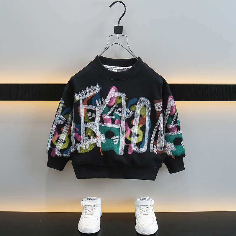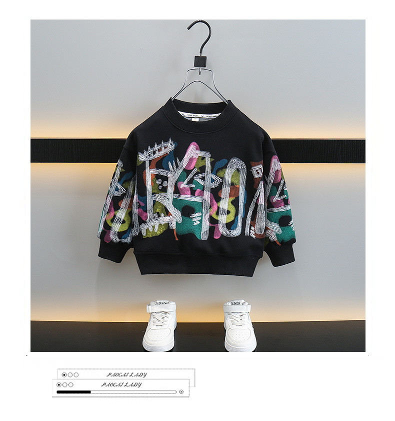 어린이 검은 색 스웨터 2024 새로운 서양식 아기 캐주얼 탑 소년의 봄 둥근 목베이스 셔츠