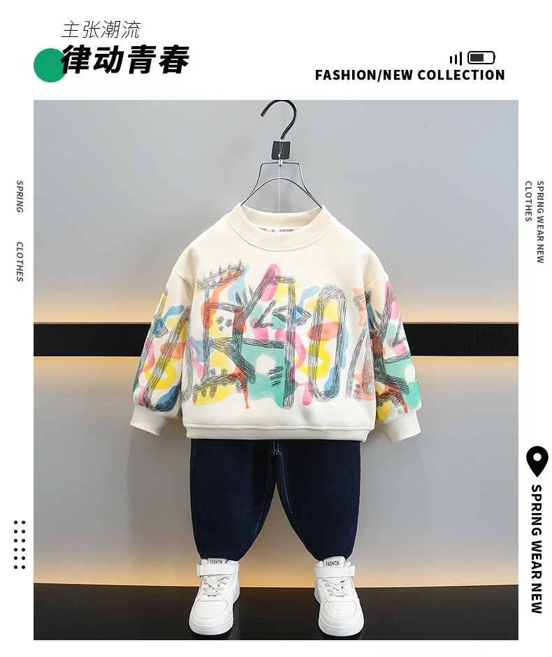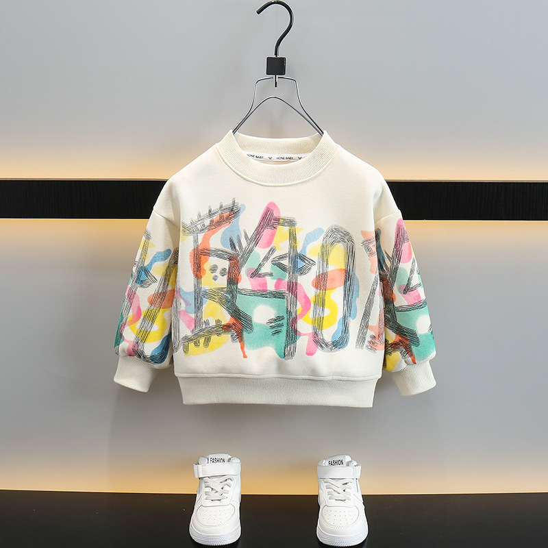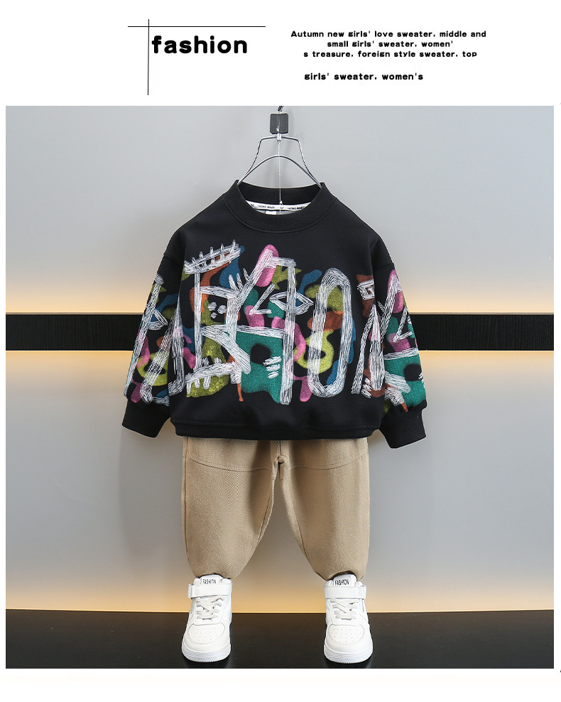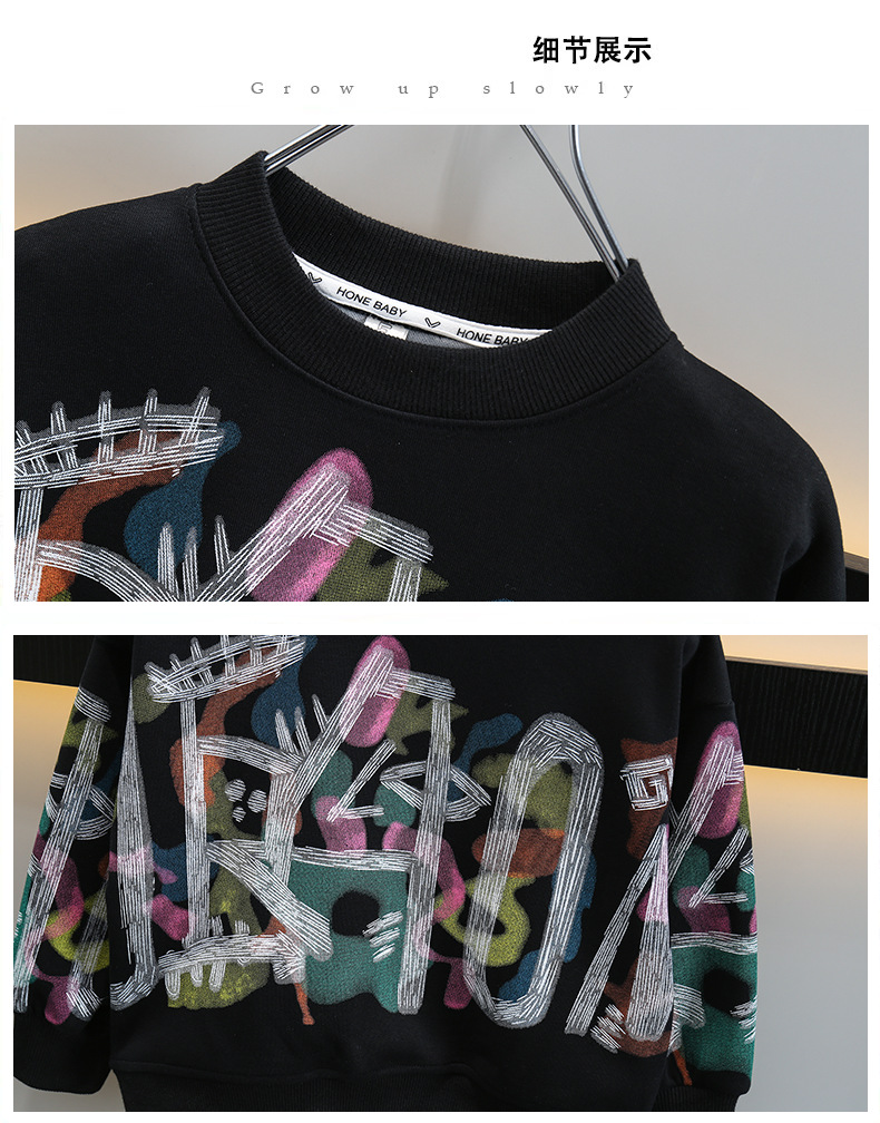 어린이 검은 색 스웨터 2024 새로운 서양식 아기 캐주얼 탑 소년의 봄 둥근 목베이스 셔츠