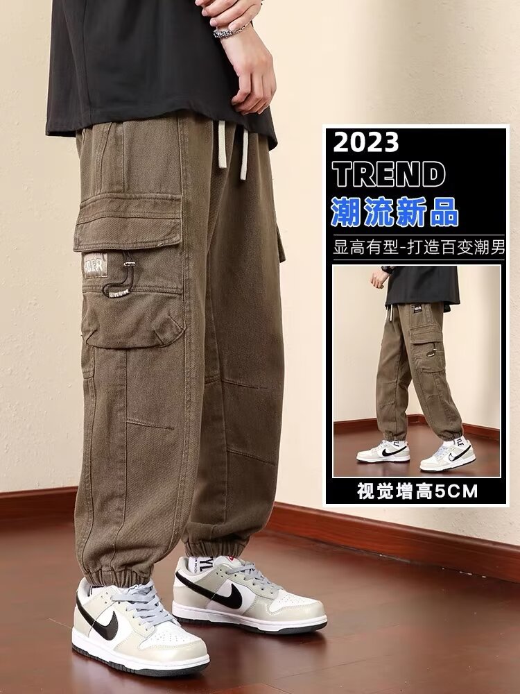 남자 스트레이트 바지 남자 봄과 가을 2023 새로운 느슨한 패션 브랜드 와이드 레그 바지 일본 캐주얼 바지스토어 가기