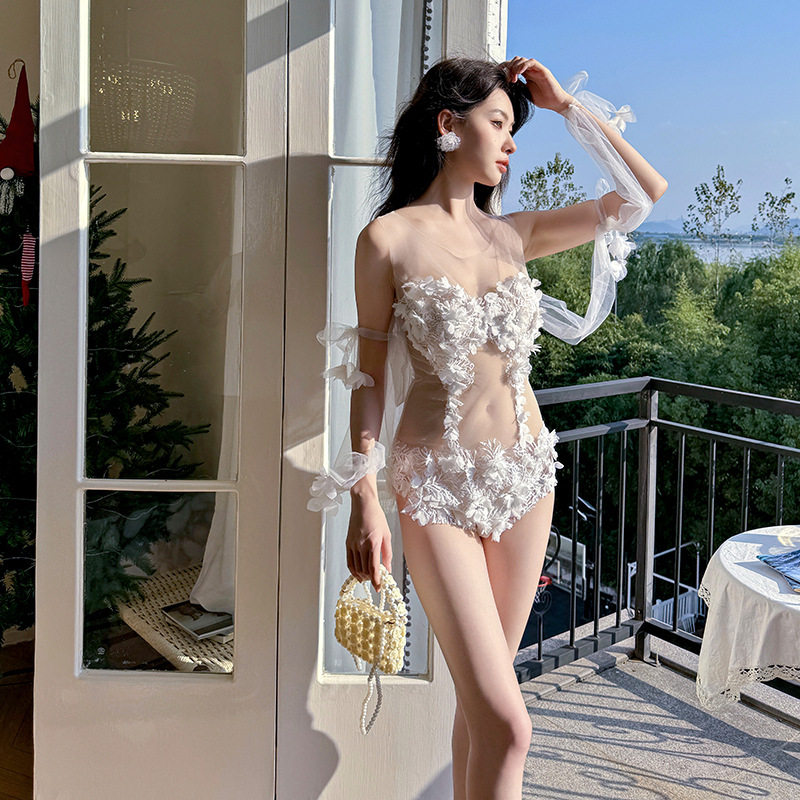 2024 신상 여성 원피스 수영복, 슬림핏, 고급스러운 여신 스타일, 섹시하고 날씬해 보이는 작은 가슴을 위한 레이스 수영복스토어 가기