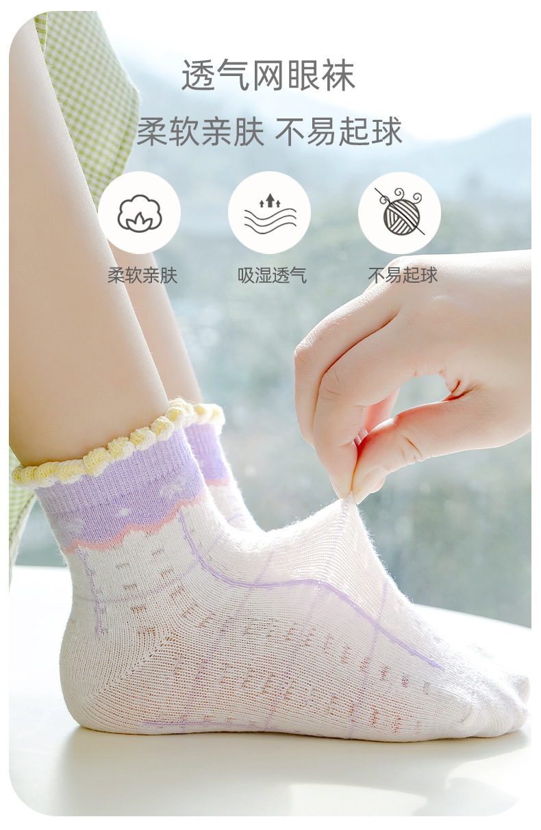 敏榴女童袜子春夏季中大童薄款透气棉袜可爱花边女孩短袜儿童袜子