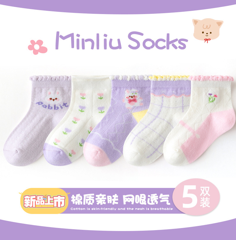 민리우 여아 양말 어린이 면 양말 봄 여름 메쉬 귀여운 토끼 소녀 양말 통기성 짧은 양말 도매