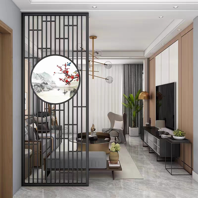 새로운 중국식 철 파티션 스크린 거실 입구 문 그늘진 현관 스테인리스 사무실 식당 장식 가벼운 럭셔리