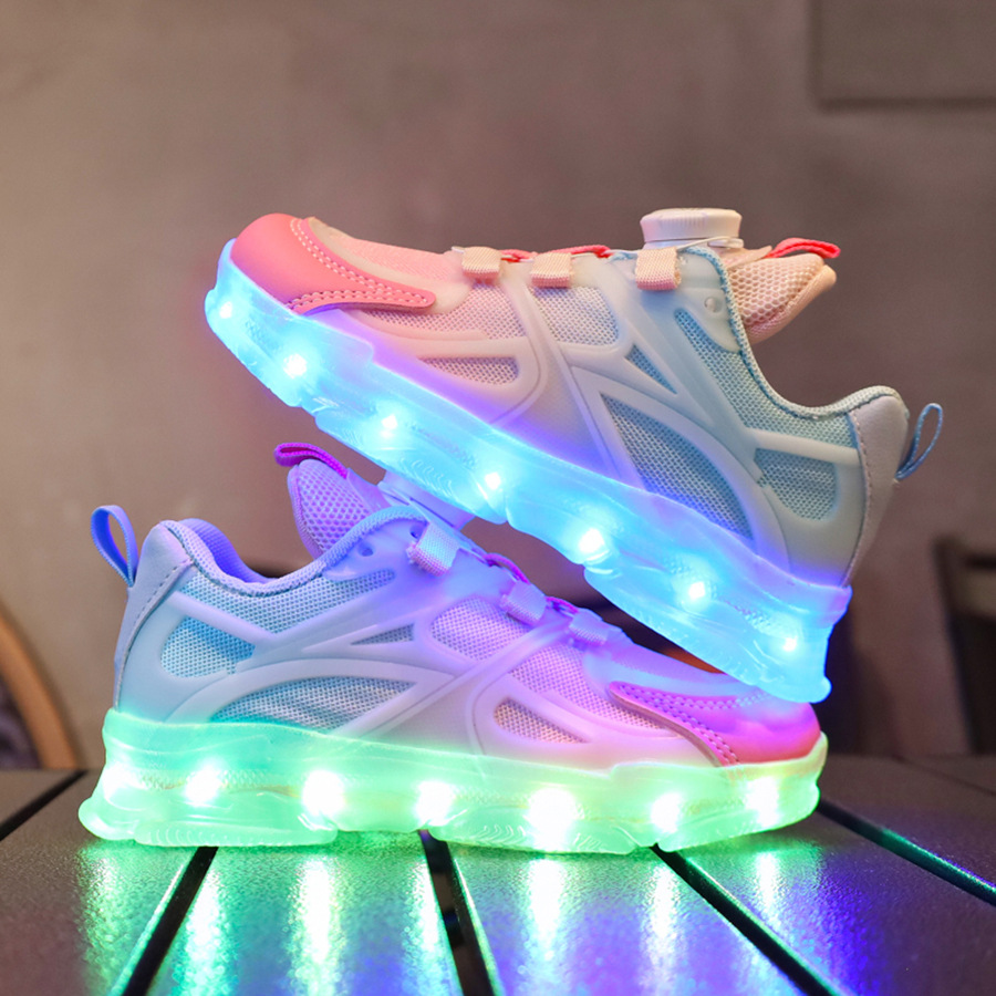 충전식 발광 신발 화려한 어린이 조명 신발 가벼운 신발 소년과 소녀 회전 버튼 깜박이는 빛 운동화스토어 가기