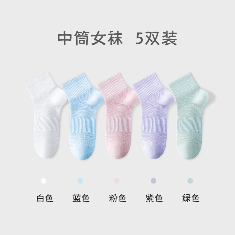 순수한면 양말 여성의 봄과 여름 얇은 메쉬 땀 흡수성 통기성 면 양말 도매 Zhuji 양말 여성의 중간 종아리 길이 양말
