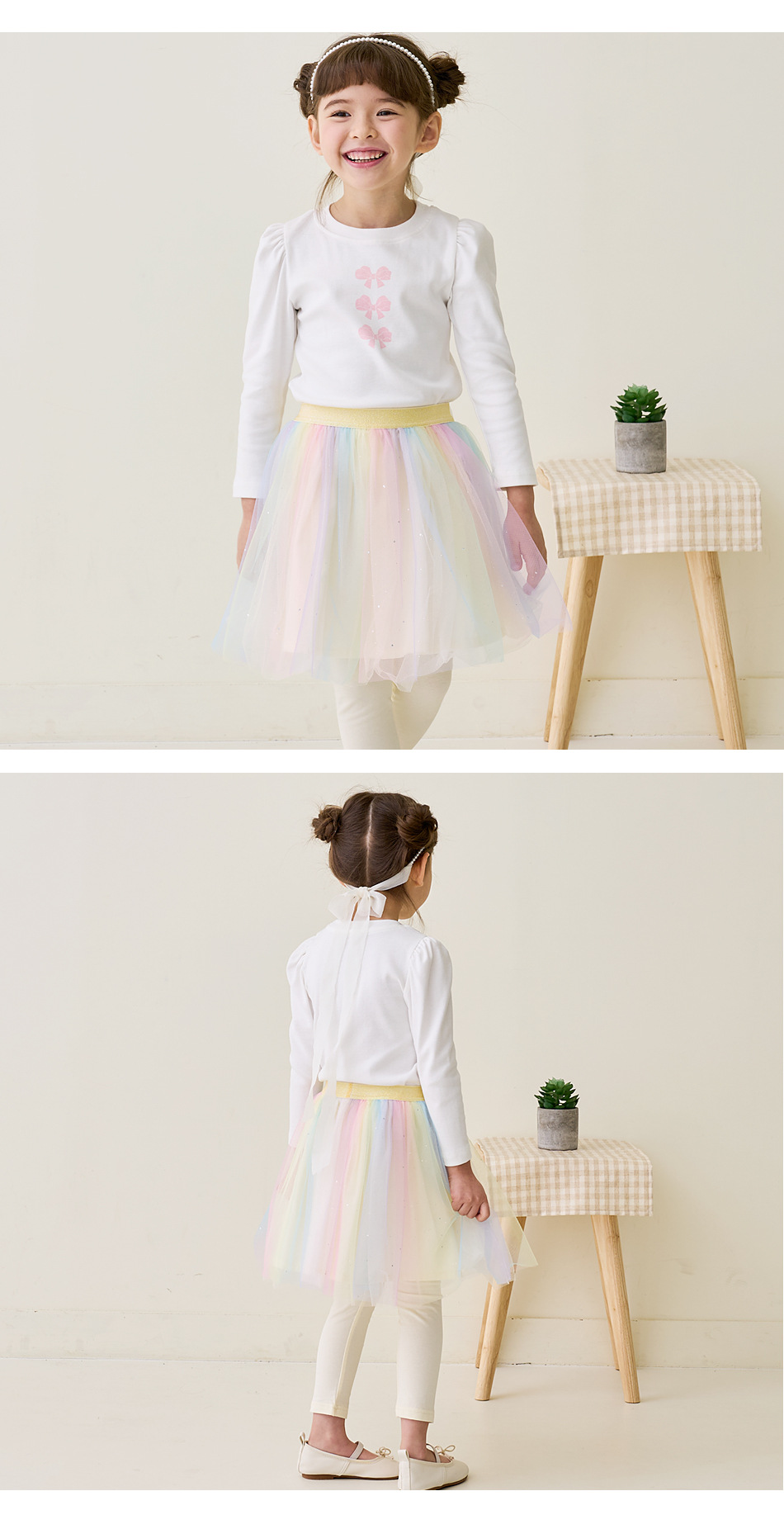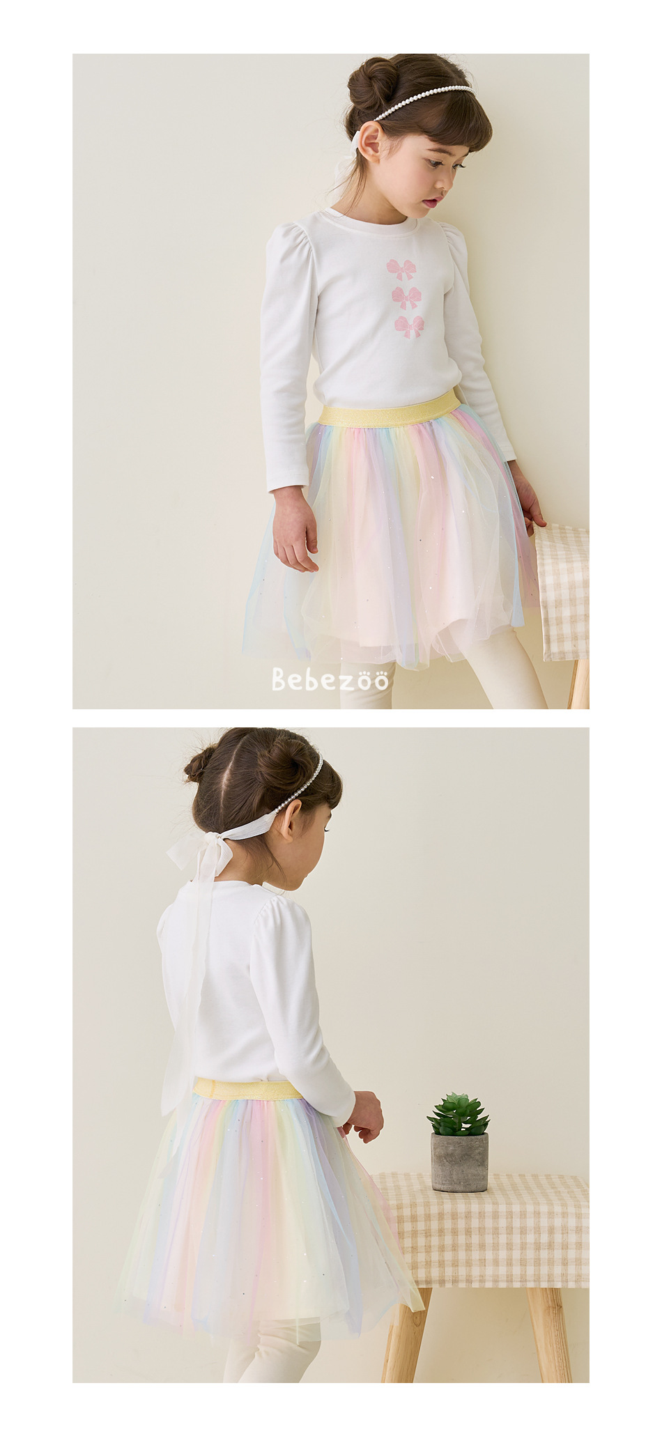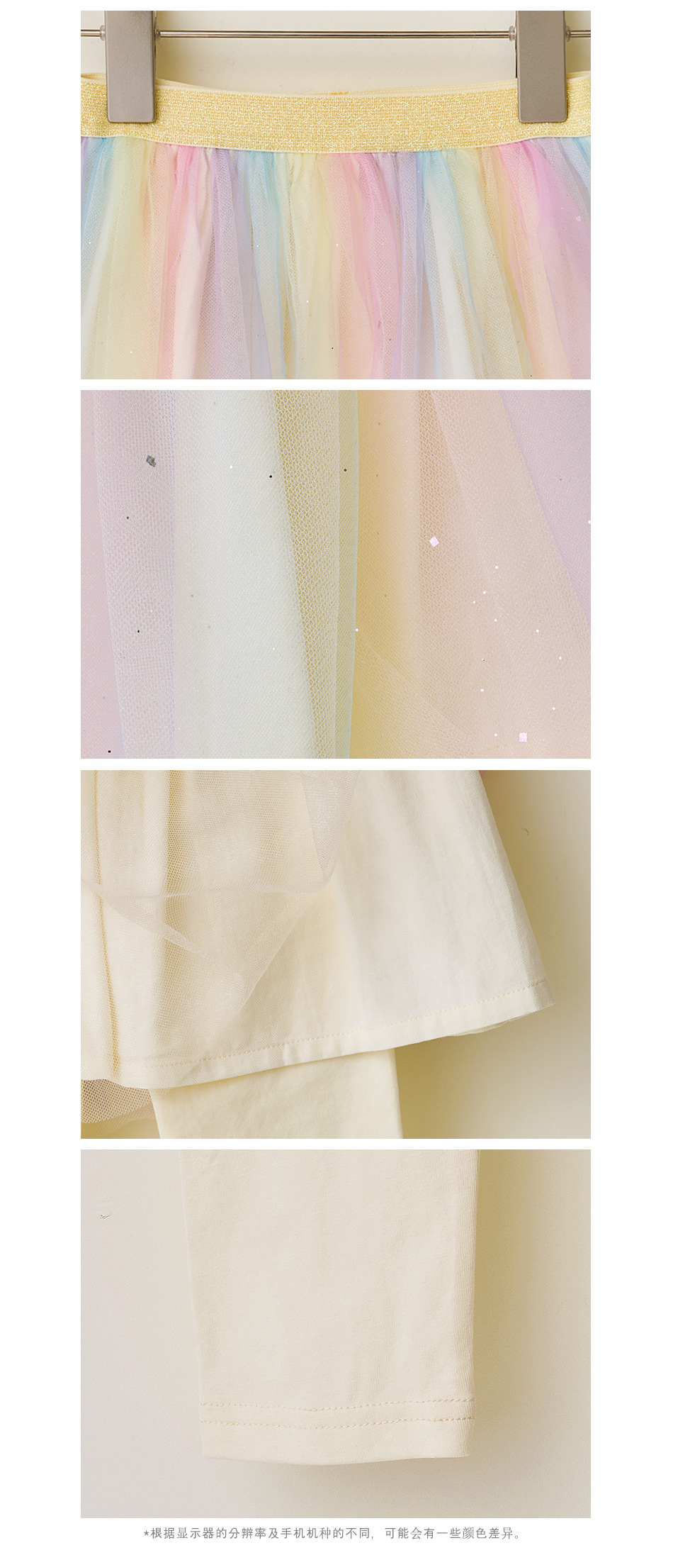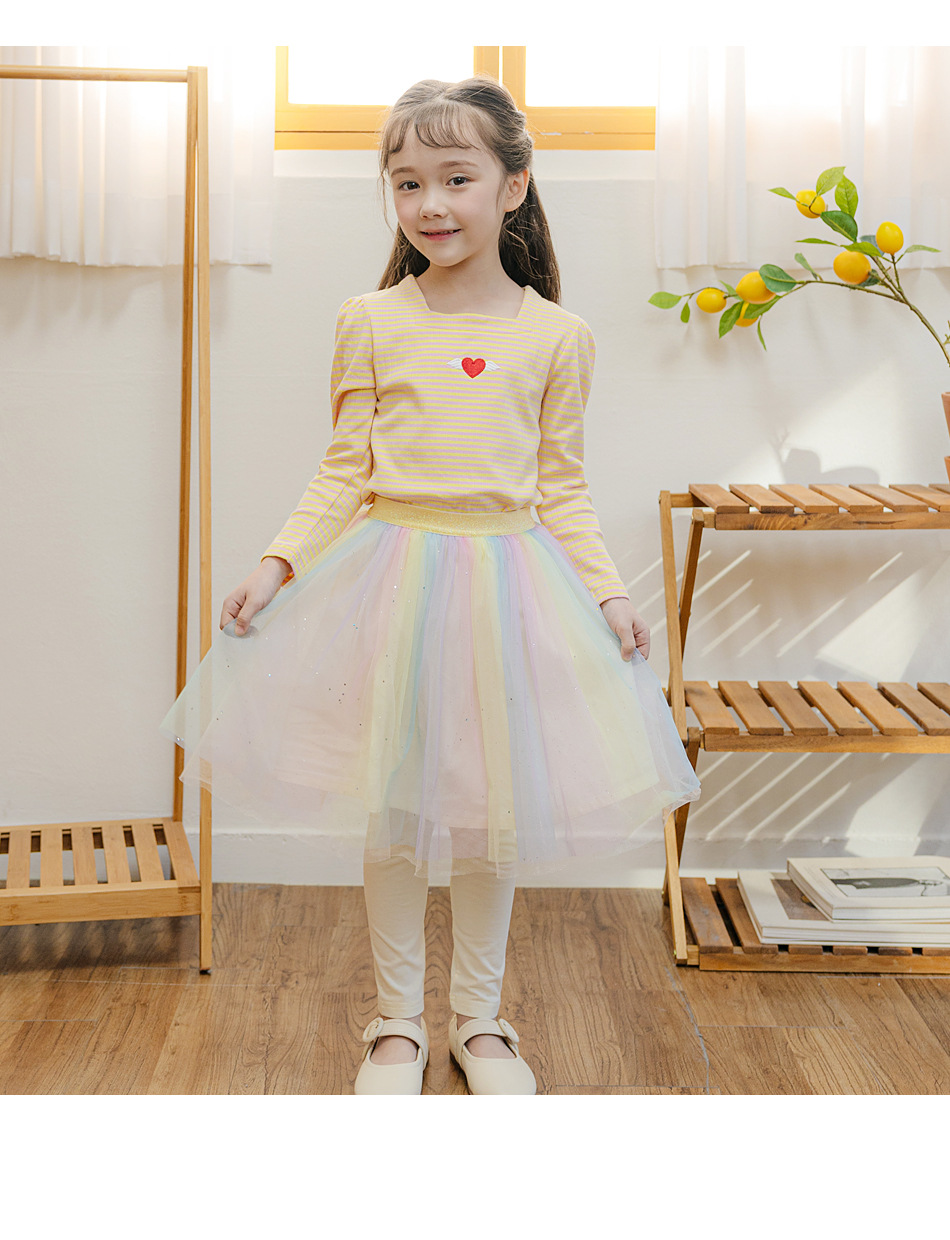 Beibeizu 한국 아동복 2024 봄 소녀 무지개 거즈 스커트 레깅스 귀여운 스커트 슬림 긴 바지스토어 가기